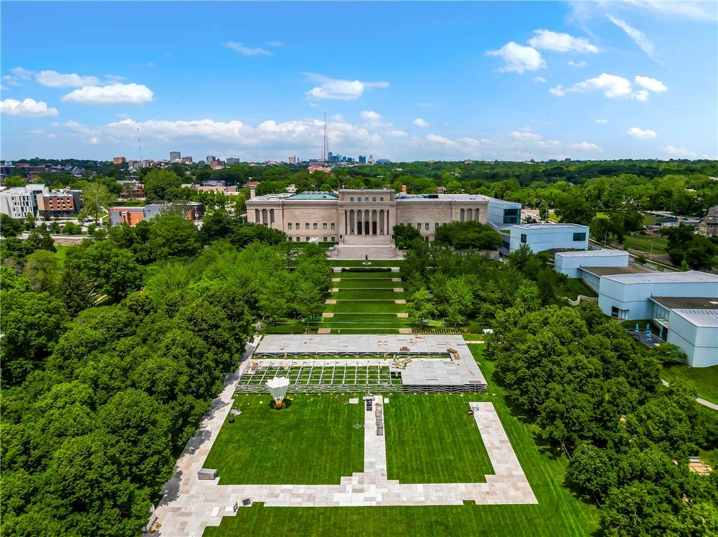 Absolutely stunning South facing unit offers open fl plan with beautiful cherry floors. well-designed open kitchen with quartz countertops, center island and stainless appliances, under cabinet lighting and electric outlets for sleek backsplash, Walk in pantry, cabinet roll outs, soft close drawers, windows & sliding door leads to large treed balcony with Hunter Douglas blinds to allow light and privacy. beautiful built in's living rm, french doors from liv to bedroom/dining room w/enormous wall of closets, walk-in closet in primary bedroom, large walk-in shower in primary bath,. Laundry room, party room and exercise room in common areas. leisurely walk to Plaza, Loose Park, entertainment, restaurants and more. **BEST PRICE PER SQUARE FOOT ON THE PLAZA. HOA TOTAL OF $1928 INCLUDES ALL PROPERTY TAXES, WATER, HEAT AND A/C!!! AS WELL AS THE IN DOOR HEATED $100 PARKING FEE **
