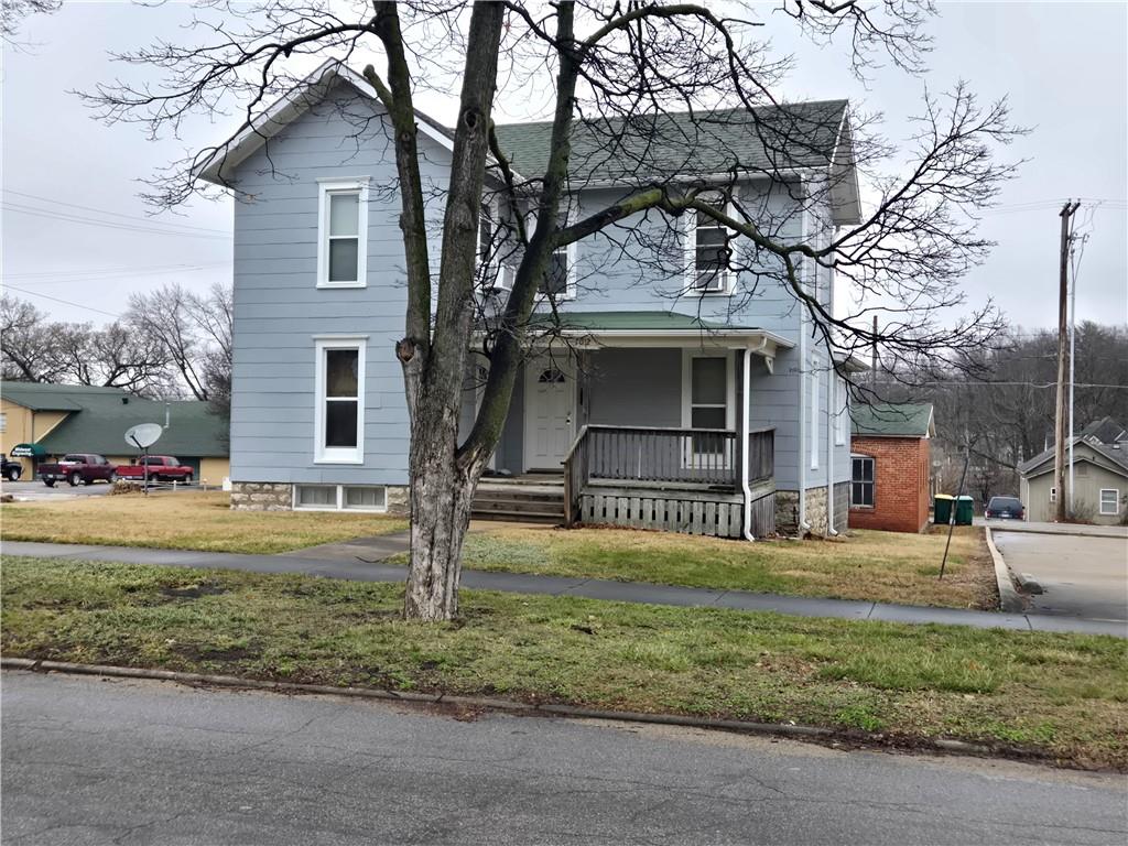 This is the ultimate find - a three bedroom, two full bathroom two story home within walking distance to the Paola Square. This house is currently being used as a duplex, with the removal of two door openings and reinstalling the door, this house can go back to a single family home or keep it like it is as an investment income duplex. Two bedrooms on the main floor and one bedroom upstairs, there is also one bathroom on each level. This house comes with kitchen appliances and also a washer and dryer located in the basement. With this house being on the annual Paola parade route, you can just pull up your lawn chair in the front yard and enjoy the festivities or sit on your covered front porch. Come take a look at this house, it's priced to sell!