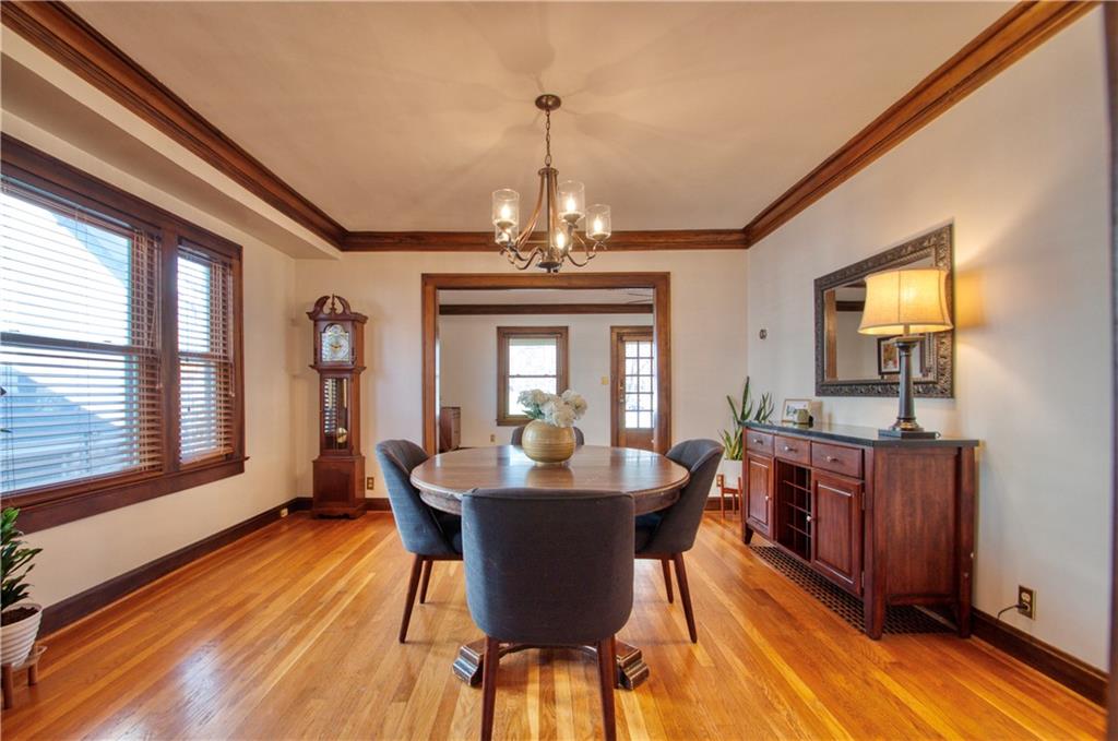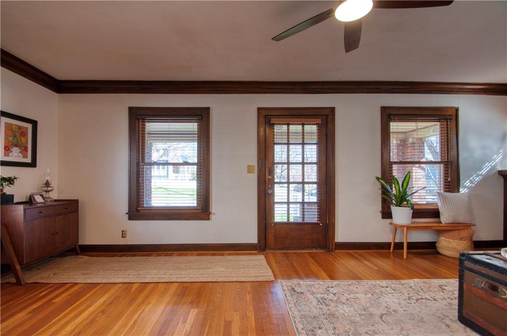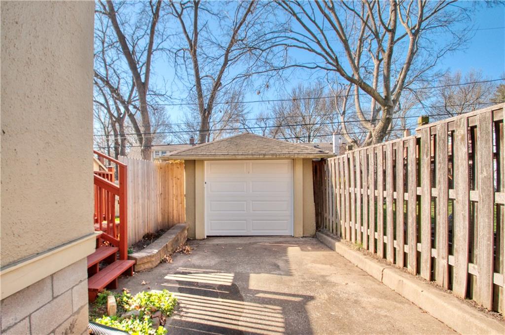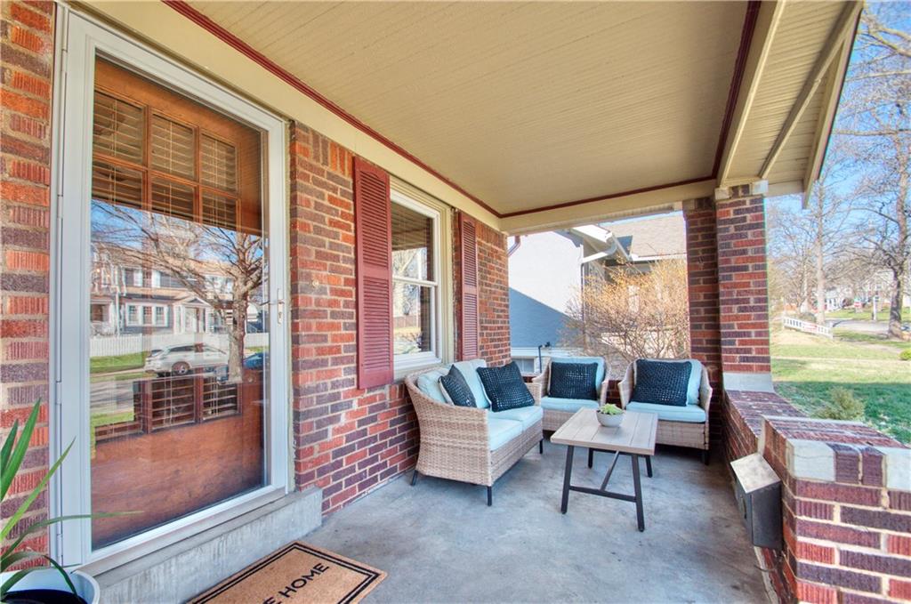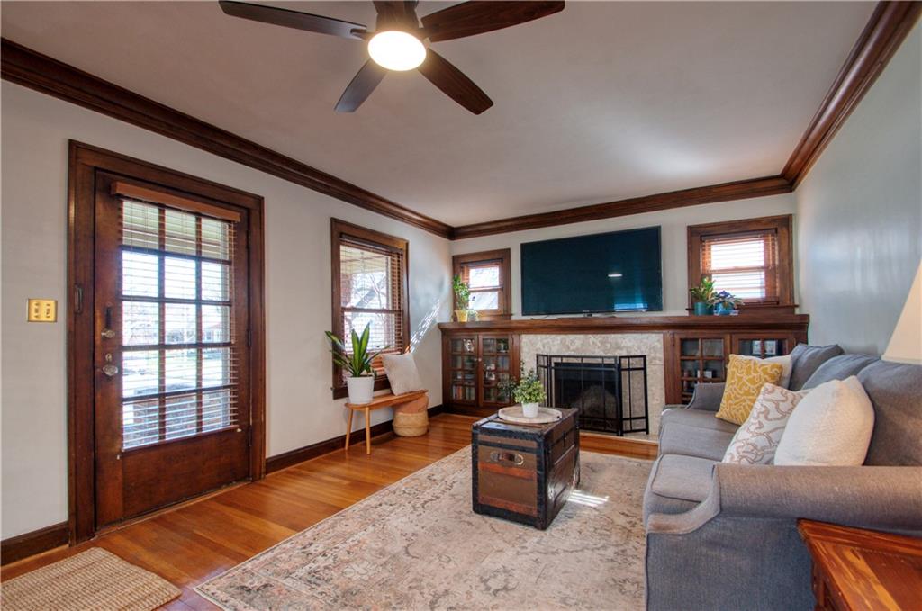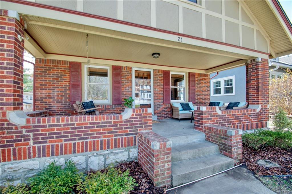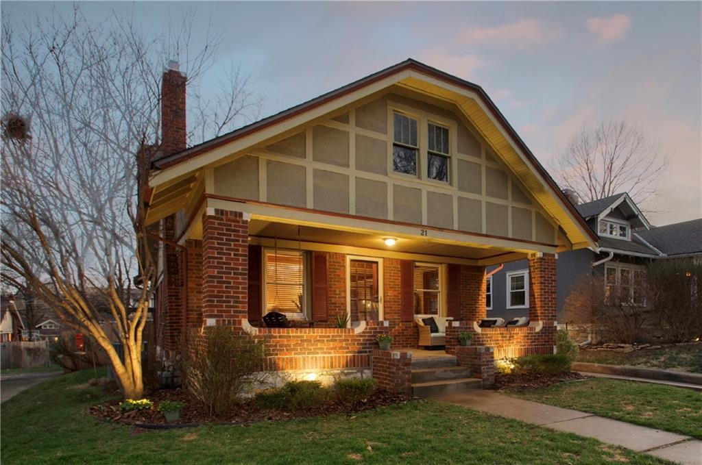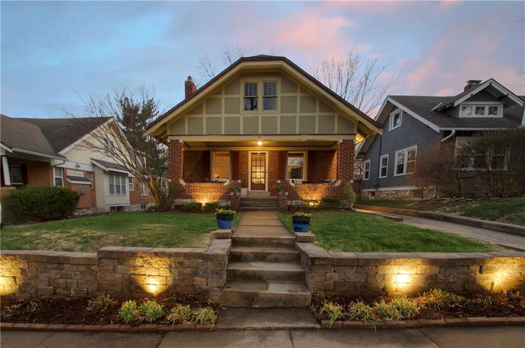 Adorable bungalow with charming front porch and an impressive list of updates! Features include hardwood flooring, rich natural woodwork, and a highly desirable private drive! Major updates: HVAC & WH - 2.5 yrs, Simonton windows, new garage door with smart myQ video keypad, new sewer line 2022, chimney lined, full bath with new subway tile. New front retaining wall (2009), landscape lighting and new fence (2025), deck renovation (2026) Newly planted Tulip and Sugar Maple trees in front yard. Washer/Dryer (2020) & kitchen fridge stay! Expanded attic with primary and half bath.(could easily convert to full bath. See architect plans in house for remodel. SF sketch in supplements. Seriously, that is a lot of NEW stuff! Prime location to all things Brookside, walk the Trolley Trail to hop on the street car!