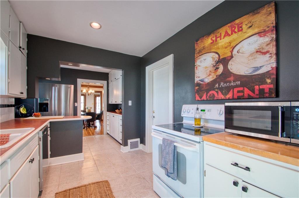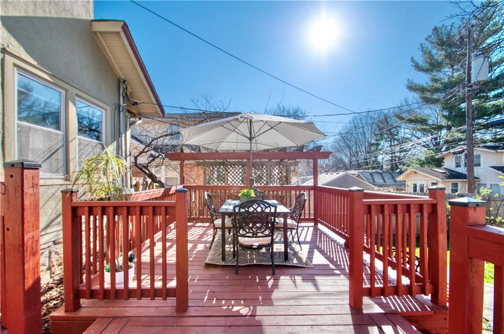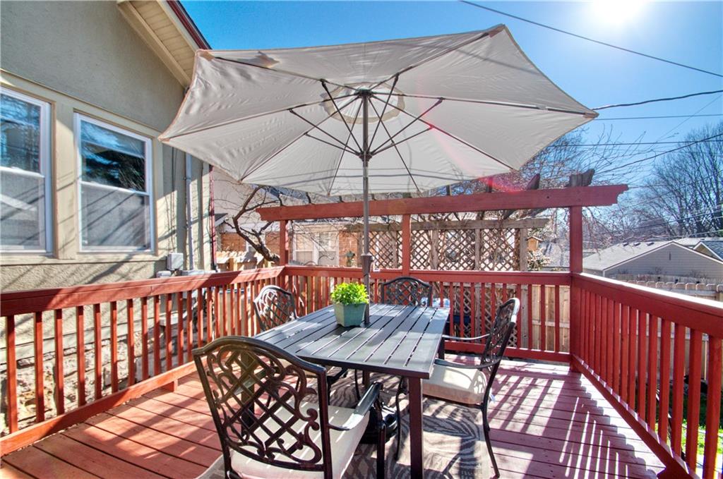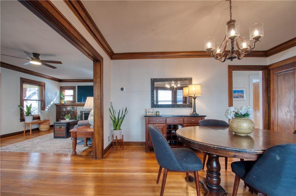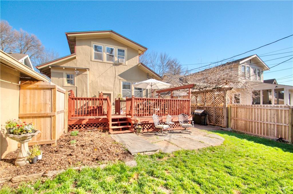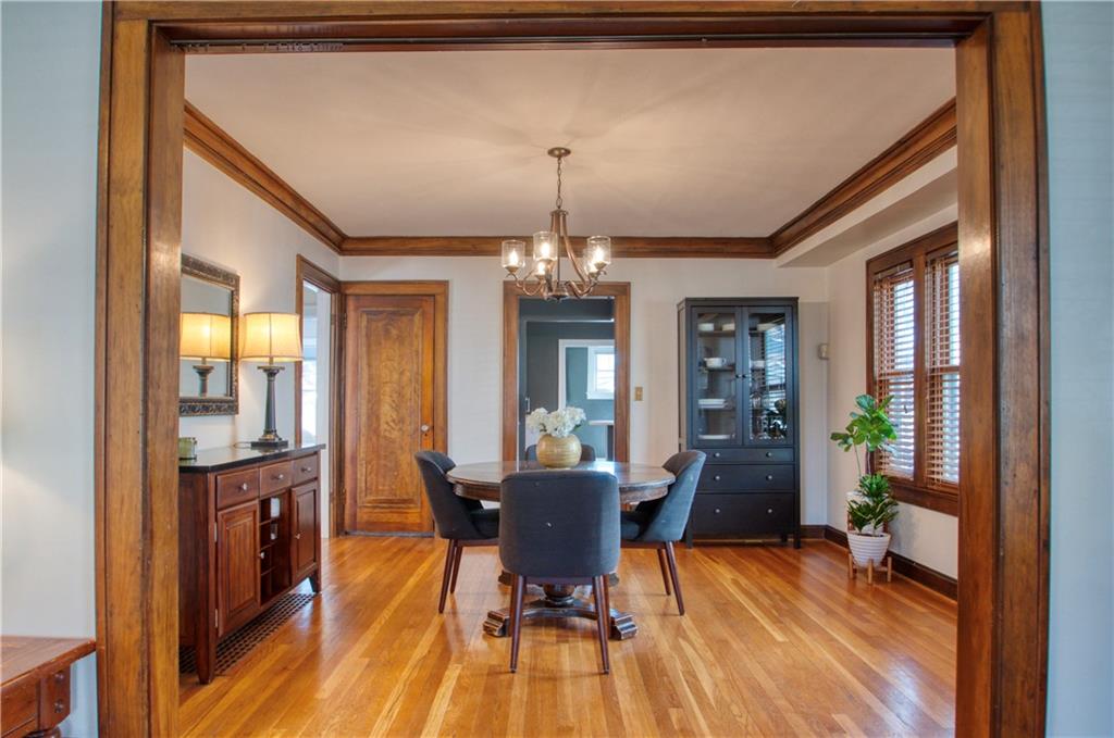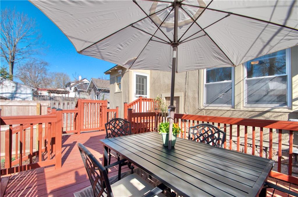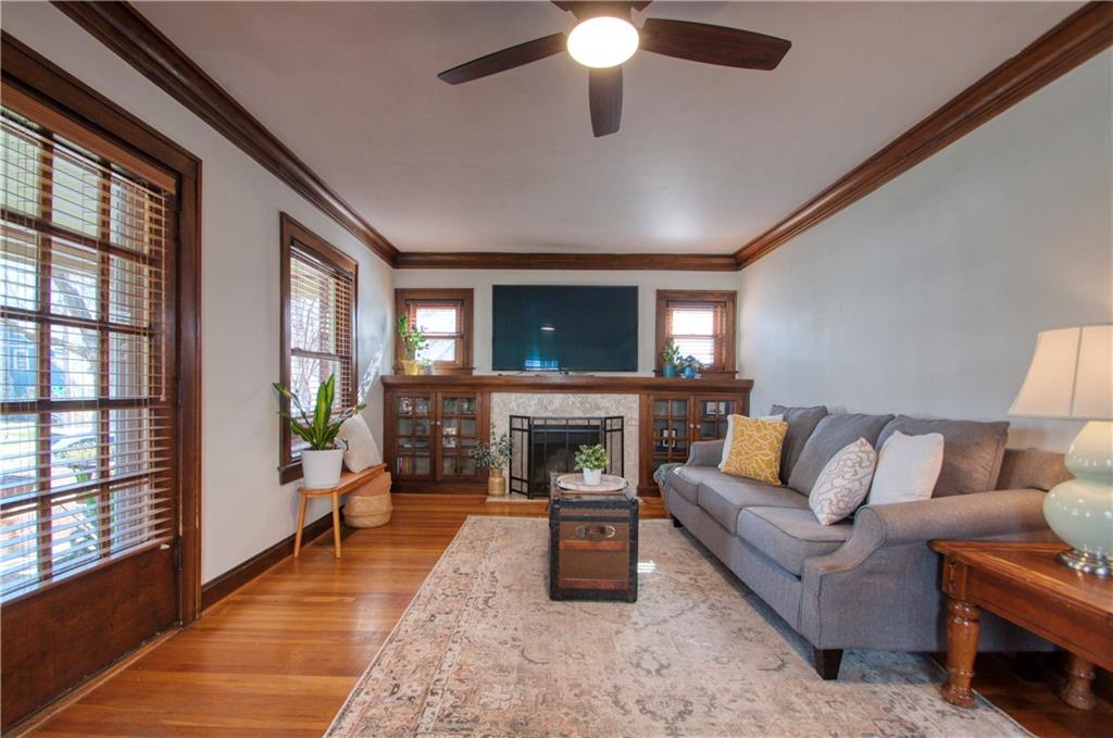 Adorable bungalow with charming front porch and an impressive list of updates! Features include hardwood flooring, rich natural woodwork, and a highly desirable private drive! Major updates: HVAC & WH - 2.5 yrs, Simonton windows, new garage door with smart myQ video keypad, new sewer line 2022, chimney lined, full bath with new subway tile. New front retaining wall (2009), landscape lighting and new fence (2025), deck renovation (2026) Newly planted Tulip and Sugar Maple trees in front yard. Washer/Dryer (2020) & kitchen fridge stay! Expanded attic with primary and half bath.(could easily convert to full bath. See architect plans in house for remodel. SF sketch in supplements. Seriously, that is a lot of NEW stuff! Prime location to all things Brookside, walk the Trolley Trail to hop on the street car!