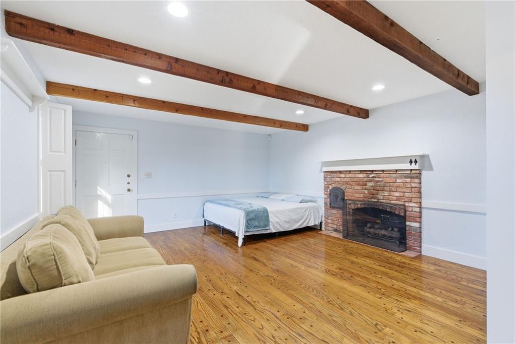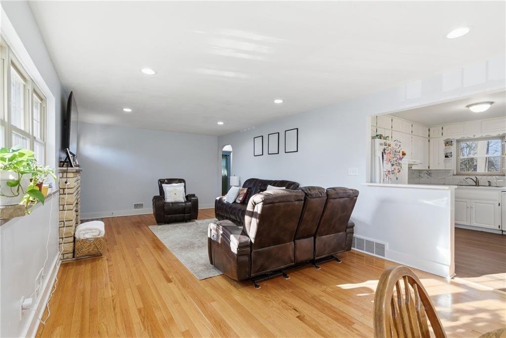 Beautifully updated stone ranch on nearly half an acre with mature trees and exceptional privacy. Features include two remodeled bathrooms, an updated kitchen with new marble countertops and lighting, refinished wood floors, new textured ceilings, and an enclosed master bedroom. Three working fireplaces, cedar closets, and a partially finished basement add charm and extra living space. Five-year- roof, and gutter guards and Three-years old HVAC and water heather. Covered brick porch overlooks the landscaped yard. Well-maintained one-owner home with a high-ceiling 2-car garage. Move-in ready in a great location near highways and schools.