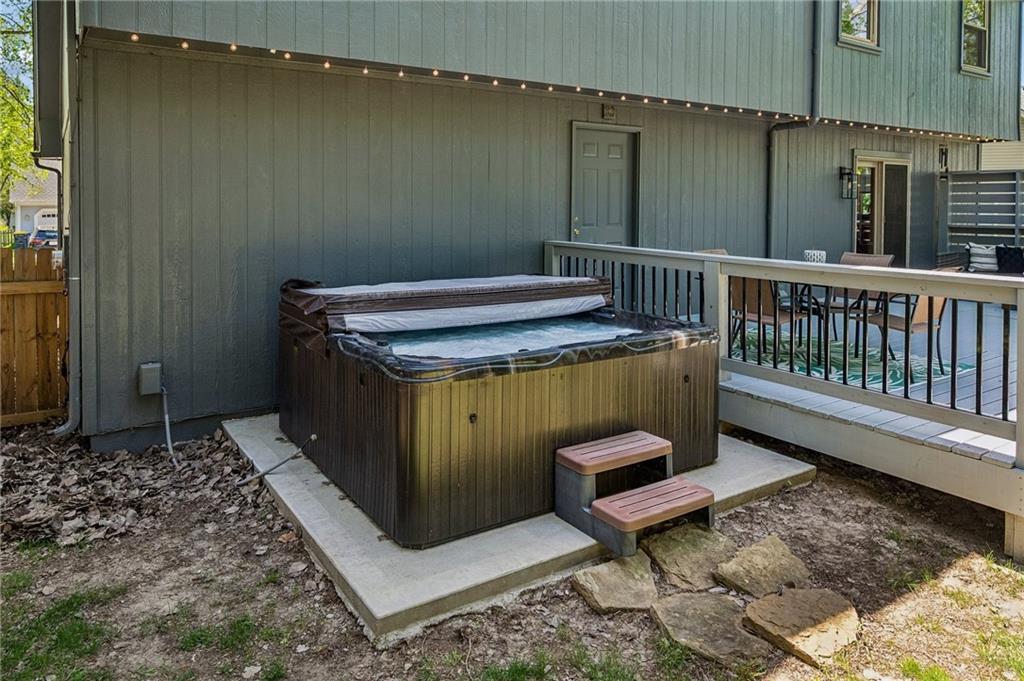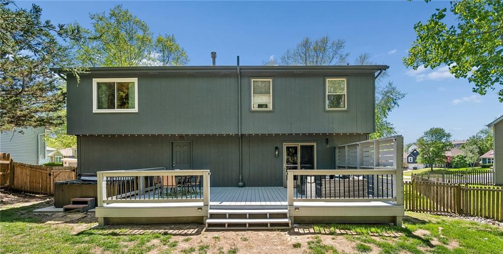 OFFER DEADLINE of SATURDAY, 4/25 AT 8PM. The most charming curb appeal and meticulously maintained 3-bedroom home with 2 full and 2 half baths in the highly coveted Park Hill School District! The light-filled living room offers skylights and a cozy fireplace. Eat-in kitchen features beautiful wood floors, dedicated pantry space, and direct access to backyard. The large deck overlooks fenced backyard with expanded area for seating, dining & entertaining plus your own hot tub that stays! Privacy screen and ambient lighting line the back perimeter to create a warm, cozy atmosphere. Retreat to the primary suite which features cove ceiling and a private ensuite bath w/double vanity and walk-in closet. Two additional bedrooms and full bath on second floor. The finished lower level provides flexibility with a comfortable family room and a non-conforming 4th bedroom or office nook along with additional half bath. Generous unfinished space is perfect for storage. Permanent Govee Lighting on exterior front of home with endless options to celebrate every holiday! Water purifier/softner, Samsung "family hub" wifi kitchen fridge manage your family's calendars, stream music, display artwork also stays! Enjoy everything this home has to offer...A fabulous property in prime location!