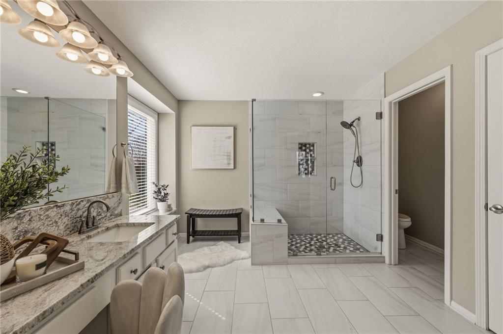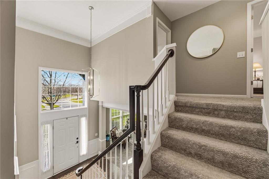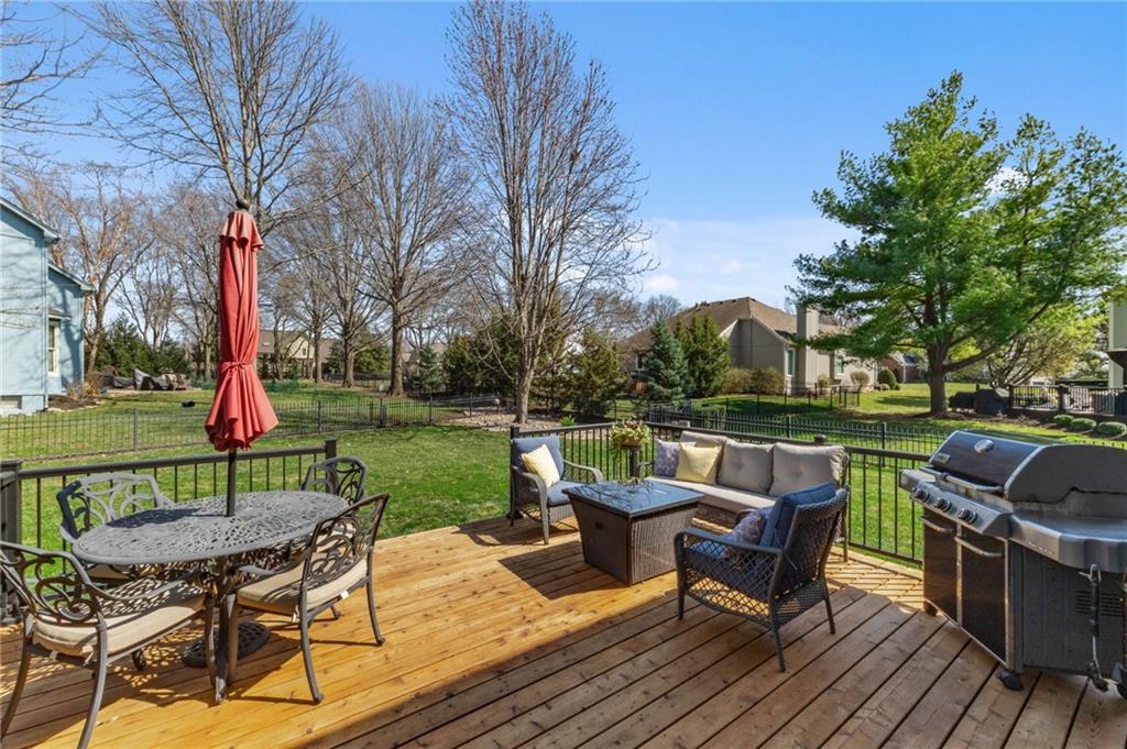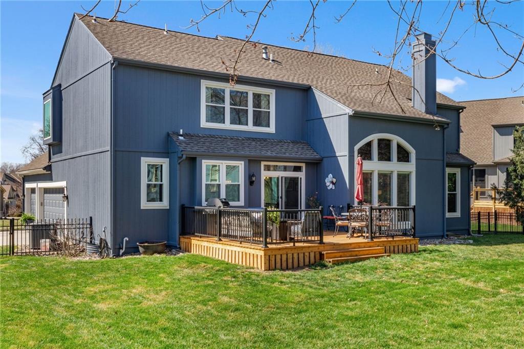 Welcome to this spacious and well-maintained home in the beautiful Steeplechase neighborhood in Leawood! A soaring vaulted entry welcomes you inside and opens to an impressive vaulted family room filled with natural light, creating a warm and inviting space for both everyday living and entertaining. The bright kitchen features refinished hardwood floors, a center island with breakfast bar, updated kitchen countertops, and a convenient built-in desk area. The main level also offers a private den/study along with formal living and dining rooms, providing flexible space for gatherings, entertaining, or working from home. Thoughtful updates throughout the home create a fresh, move-in ready feel, including newer carpet, beautifully refinished hardwood floors, and an updated primary bathroom. Interior paint has been refreshed and all bathrooms feature new toilets, along with the addition of a water softener for everyday comfort and convenience. Additional improvements include a new sump pump with battery backup for peace of mind and a brand-new deck—perfect for relaxing or hosting friends and family. Fresh exterior paint further enhances the home’s curb appeal. With generous living space, meaningful updates, and a fantastic location, this lovingly maintained home offers exceptional value and is ready for its next owners.