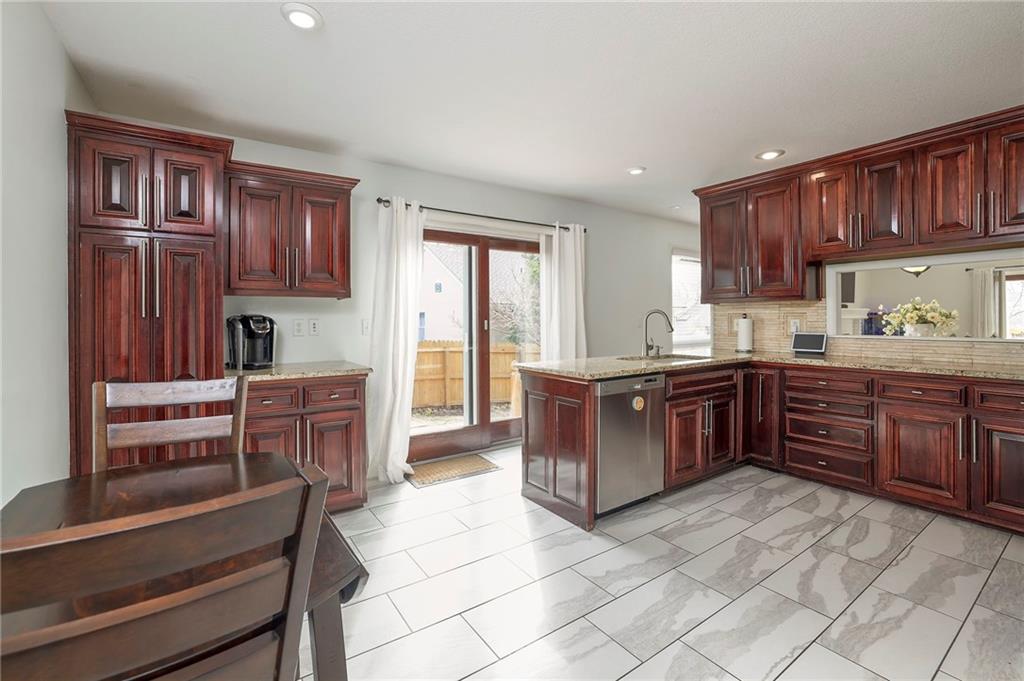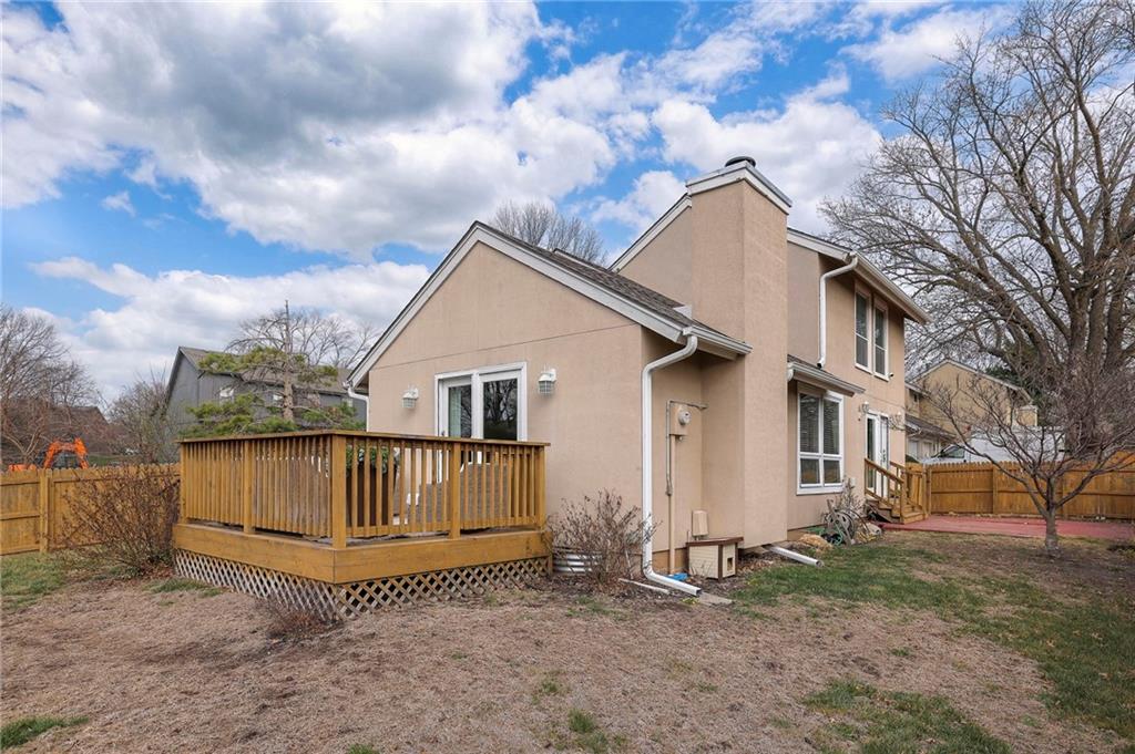 Very attractive and under $400k in OP! Free standing maintenance provided villa home with fenced yard! *Sparkling Kitchen w/granite, stainless steel appliances and lots of cabinet space.* Beautiful Living Room w/vaulted ceiling and working fireplace open to Dining Room space. **Gleaming hardwood floors thru-out most of main floor**. Three outdoor living spaces! *New HVAC, new WIFI thermostat, newer roof, newer driveway and new sliding Anderson screen doors*. Expansive clean basement ready for use or finish, complete with brand new electrical wiring. Main floor primary suite w/deck access. Amazing Overland Park location close to shopping, restaurants, schools, and I435!