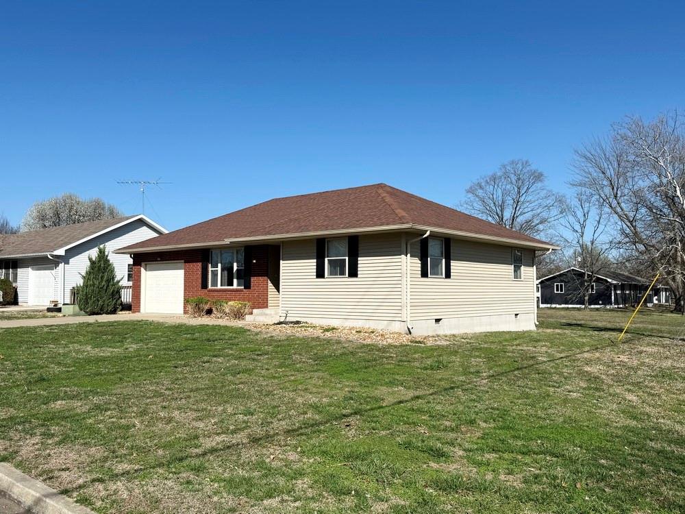 Perfect locations do exist! Check out this low maintenance property nestled into a cul-de-sac on the south side of El Dorado Springs. This 2 bed, 1 ¾ bath home is ready for its new owner. The home features 1,116 square feet, built in 1995, in a super-efficient floor plan design. The kitchen-dining-living room space is open and roomy. The kitchen has been updated with painted cabinets and stainless steel, Samsung appliances including the refrigerator, oven/range, dishwasher, and microwave. The entire home has vinyl or LVP flooring, so any clean-up is easy and quick. The bedrooms and bathrooms have ADA compliant doors and give plenty of space for maneuverability. The two bedrooms sit at the end of the hallway, and the master bedroom has its own private bathroom including a walk-in shower unit. A utility room/mudroom sits just off the kitchen and gives access to the single-car garage or the back patio area with a comfortable back yard. Locations like this are difficult to find, so act quickly on this fantastic property!