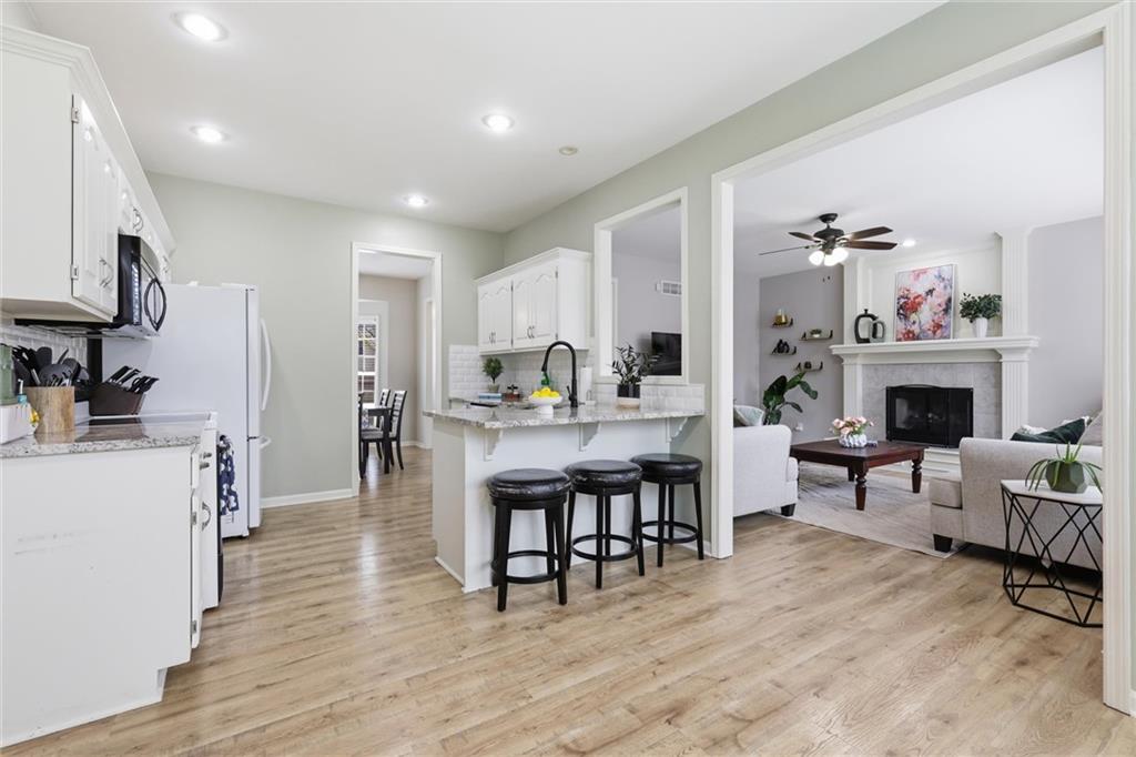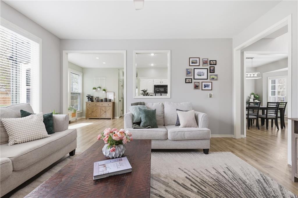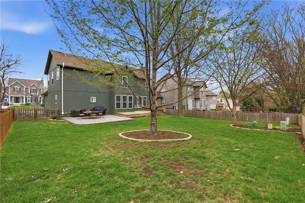This stunning two-story home in sought-after Parkhill Manor sits on a quiet cul-de-sac off Heritage Trail on a street lined with mature trees. Inside, soaring ceilings and a welcoming entry lead into a beautiful dining room, while the bright, open kitchen offers granite countertops, a breakfast bar, and seamless flow into the family room for easy everyday living. The main level features luxury vinyl plank flooring throughout for a warm feel. The spacious primary suite features a versatile flex room with sliding doors, perfect for a home office, sitting area, or private space. The finished basement adds even more living space with a great recreation room for movie nights or watching the game. Outside, the fenced backyard offers plenty of room to play, along with both a deck and large patio for relaxing or hosting a gathering. This home feeds into Arbor Creek Elementary and award winning Olathe Schools. Located within short distance to the neighborhood pool, Black Bob Park and the local farmers market, and just minutes from shopping, groceries, and dining, this home is one you won’t want to miss.