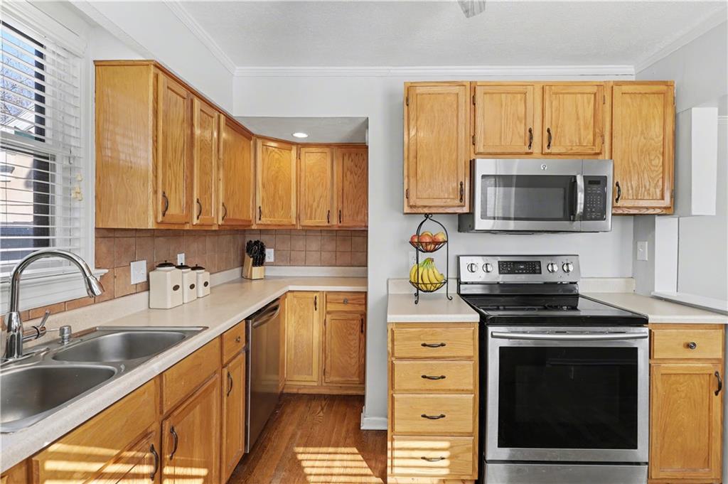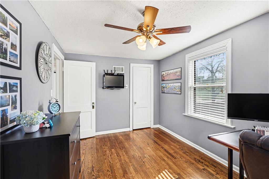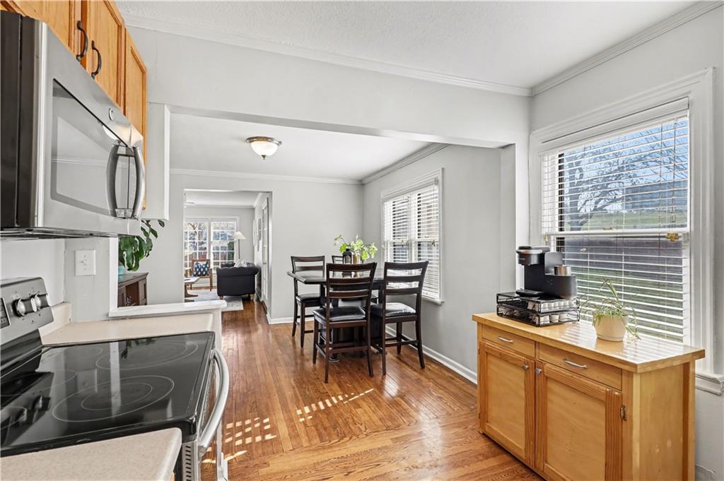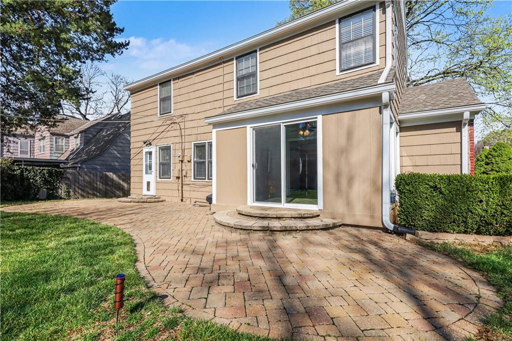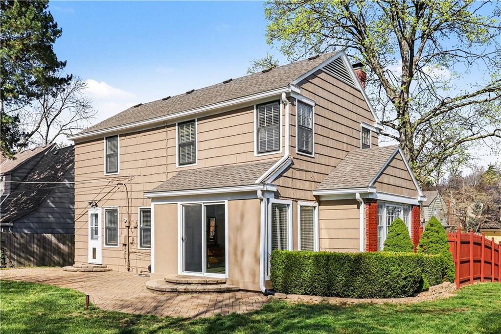 Absolutely adorable two-story in the highly sought-after Armour Hills neighborhood—complete with the rare bonus of a two-car attached garage. Set on a spacious lot with a fully fenced backyard, this home perfectly blends charm, comfort, and functionality. The main level welcomes you with a warm and inviting living room featuring a cozy wood-burning fireplace, flowing seamlessly into a bright sunroom—ideal for relaxing or entertaining year-round. Natural light pours through every space, highlighting the beautiful hardwood floors throughout. The dining area and spacious kitchen offer excellent cabinet space, stainless steel appliances, and easy access to the backyard patio and deck, creating effortless indoor-outdoor living. Upstairs, you’ll find a true primary suite with two closets, along with two additional bedrooms and a full bath—perfect for family, guests, or a home office setup. The basement includes a clean laundry area and plenty of unfinished storage space, offering room to grow. Lovingly maintained and move-in ready, this home is located just minutes from Brookside, parks, Rockhurst University, shopping, dining, and more—delivering the perfect mix of character, convenience, and neighborhood charm.