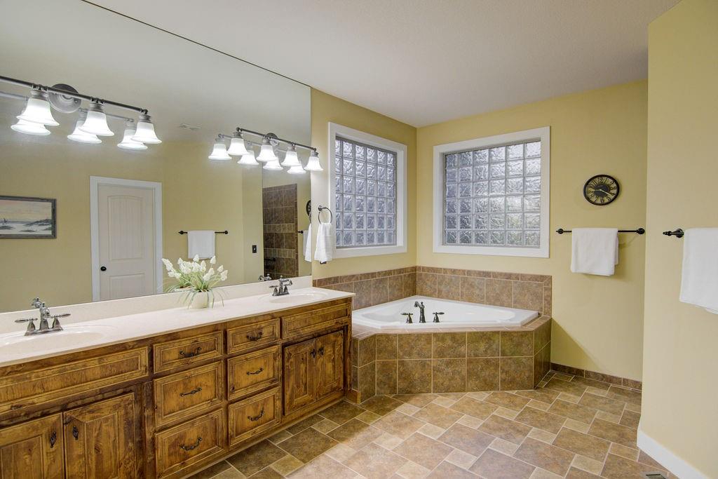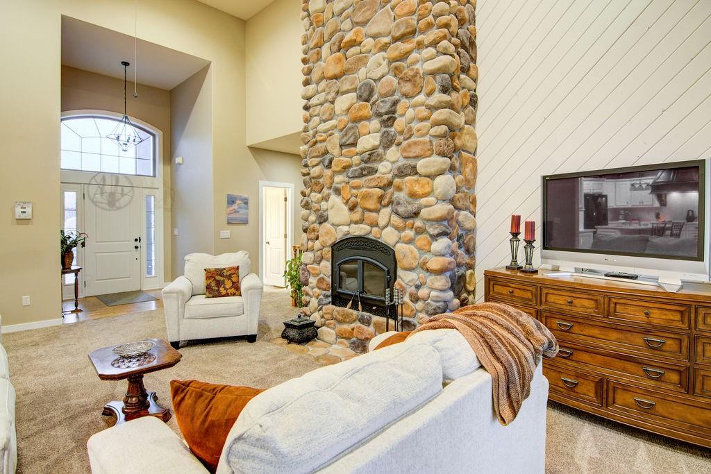 Beautifully updated 3-bedroom zero entry (no steps) ranch with main level office on a private, treed cul-de-sac lot. Over 3300 square feet on the main level alone with perfectly updated entertainer's kitchen, brand new quartz counters, vented hood, updated fixtures, and modern backsplash! Work out or relax in the private rec room with 16x10 INDOOR RESISTANCE POOL. Change speeds for harder/easier workouts, turn the resistance off to soak and play with the kids/grandkids, or turn the temperature up and jets on for a nice hot tub effect! Enjoy your morning coffee in the fully enclosed (all season) sunroom off the kitchen, or step outdoors to your deck that overlooks a parklike yard. Finished lower level with third bedroom, full bath, and TONS of storage space or room to expand, including a stub for additional bath and windows for additional bedrooms! Walk-out basement with screened in patio and hot tub. Brand new roof AND newer HVAC! So much space to relax or entertain! Home is wheelchair accessible with extra wide hallways. Hardwoods underneath all carpet areas on main level. Unique front/side entry garage with TONS of driveway for easy maneuvering! Whole home generator (not for rec room) and security system that stays with home! Close to highways, shopping, and restaurants!