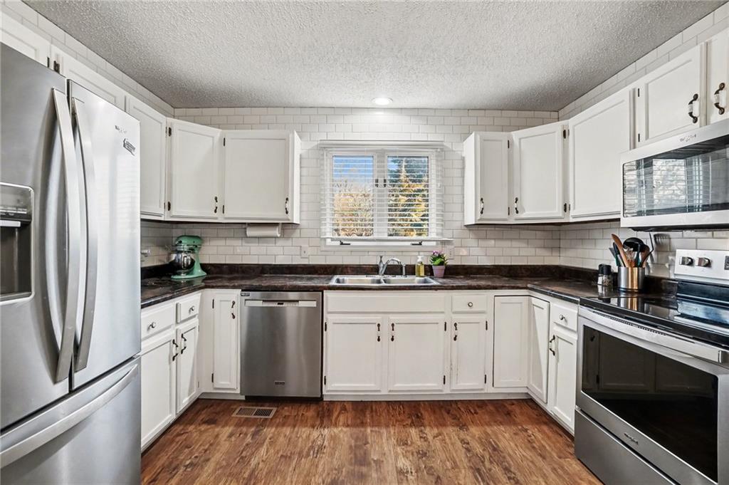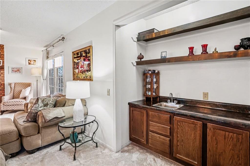 Cul-de-sac ranch • 0.43-acre lot • Main-level living with full basement - Savannah School District. Brick ranch-style home on a 0.43-acre lot at the end of a cul-de-sac in Savannah School District, offering true main-level living. The main floor includes three large bedrooms, and the primary en suite bathroom has a new walk-in shower. Entertaining is a dream in the open-concept layout connecting the renovated kitchen, dining area, and living room. The vaulted-ceiling living room, with a wood-burning fireplace, is surrounded by large windows and two French doors bringing natural light into the main living spaces. Recent updates include new carpet, fresh interior paint, a renovated kitchen, and new primary bedroom shower The lower level features a conforming fourth bedroom with a walkout door, a full bathroom complete with a jacuzzi tub, and a spacious family room for hours of fun. Approximately 800 square feet of unfinished basement space provides room for storage or future finishing. The home includes a two-car attached garage and a patio located just outside the main living area to enjoy a cup of coffee or viewing nature. The property backs to green space and natural surroundings while offering convenient access to Highway 71 and nearby shopping and services.