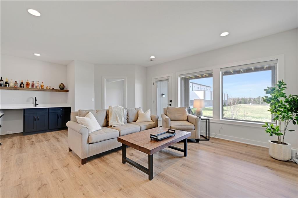 Perfect location, nearly brand new home, finishing touches already done for you! This reverse 1.5 story villa, located in Crestwood Village - a maintenance provided community - features an open concept floor plan. This stunning home has tons of natural light coming through the walls of windows in the great room with fireplace. Warm, wide-plank hardwood floors throughout the great room, dining area, kitchen and mud room. Enjoy cooking in the gorgeous kitchen featuring a center island, custom cabinets, quartz countertops and stainless appliances. You will FALL IN LOVE with the huge, L-shaped, walk-in pantry (including a counter top to host a coffee bar/air fryer) and so much accessible kitchen storage. The private owner's suite includes an ensuite with double vanities, quartz countertops, spacious walk in shower, and a gigantic walk in closet featuring 3-tier/off season storage. Second bedroom/study on the first floor with walk in closet conveniently located adjacent to a full bath. Take the stunning, U-shaped staircase down to the finished, walkout basement, LVP floor with wet bar where you can entertain and enjoy watching the game. Two more bedrooms and full bath are perfect for guests! Abundant storage in the unfinished area of the basement. Nice finishing touch - painted floors in the unfinished storage area. Sellers have installed high-end window treatments that will remain with the home, along with fridge, washer and dryer. Come by to see this beautiful community in a fabulous location. Close to shopping, restaurants, grocery stores, entertainment, medical facilities and walking trail. Enjoy maintenance provided living for $267/month - included is lawn maintenance, snow removal, exterior paint and more! Vibrant community. Cascading views. Exceptional, well-manicured landscaping. Fences allowed at Crestwood Village!
