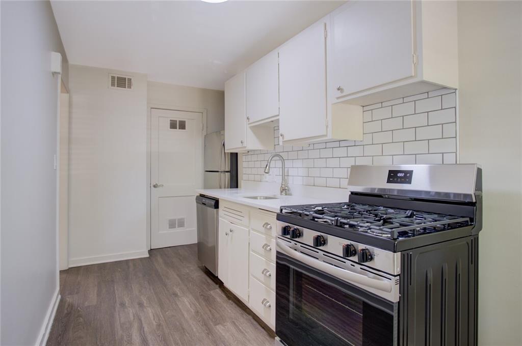 One bedroom condo in the West Plaza neighborhood! This super cute condo has hardwood floors, granite counters, and stainless appliances, including gas range. Cozy balcony with nearby trees for added privacy. Bathroom has LVP flooring and shower/tub combo. Washer and dryer included. Bedroom fits a king size bed. One assigned parking space included in the lot behind the building. Easy access from the parking to the condo without taking any stairs. LOW HOAs include the parking, water, and trash. Building is wired for Google Fiber. There's also an outdoor community patio. Don't miss this West Plaza gem! Enjoy the ability to walk to the plaza with shops and restaurants at your fingertips. HOA does allow rentals with a minimum lease of 30 days. Investors Alert: will sell as a package with other available condos, contact listing agent for details