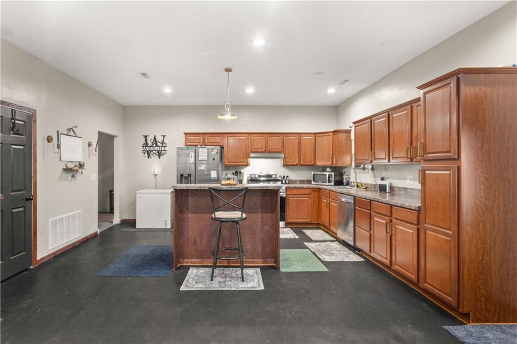 Charming 1,440 sq ft ranch-style home sitting on 1.5 acres in the quiet small town of Green Ridge, MO! This unique 1-bedroom, 2-bath home features an open-concept layout with durable concrete floors, giving it a clean, modern feel and low-maintenance living. The spacious interior offers plenty of flexibility, with great potential to add additional bedrooms or living spaces to suit your needs. Outside, you’ll find a large carport and two outbuildings—perfect for storage, hobbies, or workshop space. The partially fenced acreage provides room for pets, gardening, or simply enjoying the peaceful country setting. Located just minutes from the Katy Trail, this property is ideal for outdoor enthusiasts. Conveniently situated about 25 minutes from Whiteman AFB and 25 minutes from Sedalia, it offers the perfect balance of small-town living with easy access to nearby amenities. If you’re looking for space, versatility, and room to grow, this property is full of opportunity!