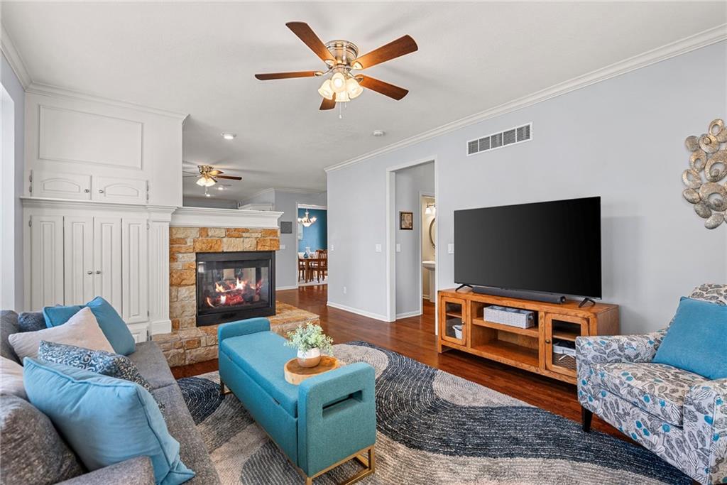 This beautiful 4-bedroom, 4.1-bath home features a spacious and functional layout designed for comfortable living and entertaining. The main level welcomes you with hardwood floors and a large living room with fireplace and built-ins, creating a warm and inviting space to gather. The kitchen offers ample cabinet space and easy access to a formal dining room or home office, giving you flexibility to fit your needs. Upstairs, you’ll find four generously sized bedrooms, including a spacious primary suite with a large sitting area, creating a perfect retreat at the end of the day. The finished basement provides additional living space, ideal for a second family room, recreation area, or home theater setup. Step outside to enjoy the composite deck overlooking peaceful green space, offering added privacy. The Wilderness subdivision is known for its scenic walking trails, Wilderness Lake, and community amenities. Ideally located near all three levels of Blue Valley Schools, Highway 69, and the rapidly growing BluHawk Shopping Center, this home offers both convenience and an exceptional neighborhood lifestyle.