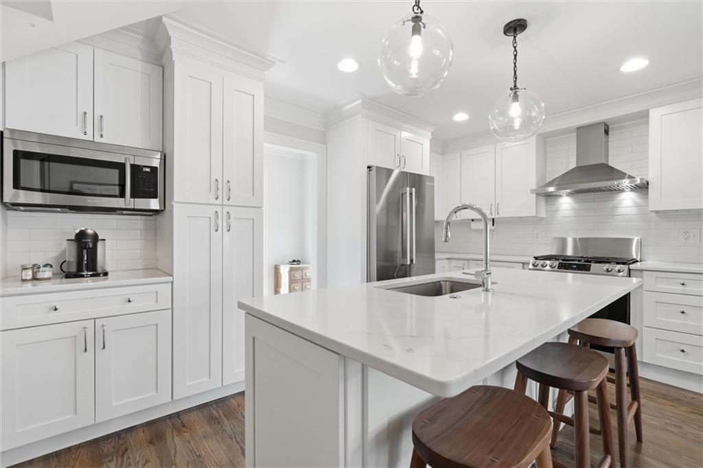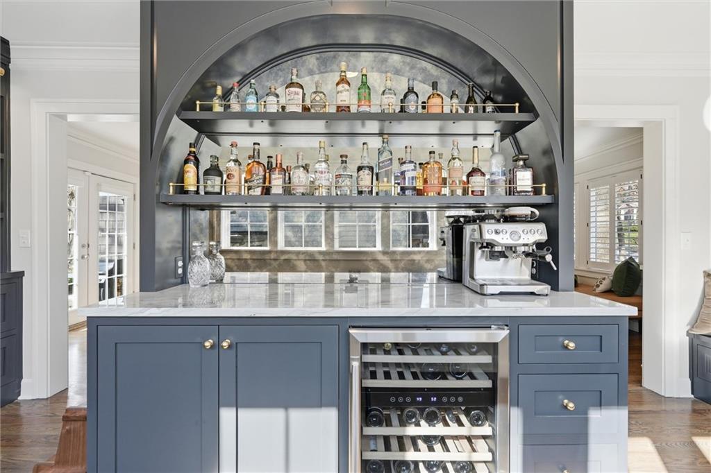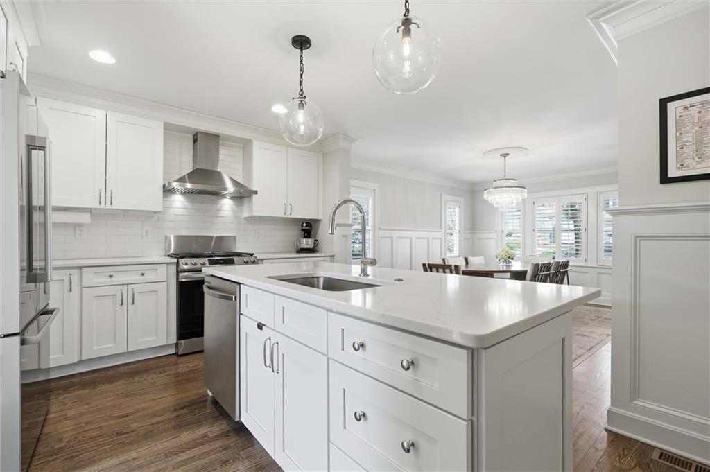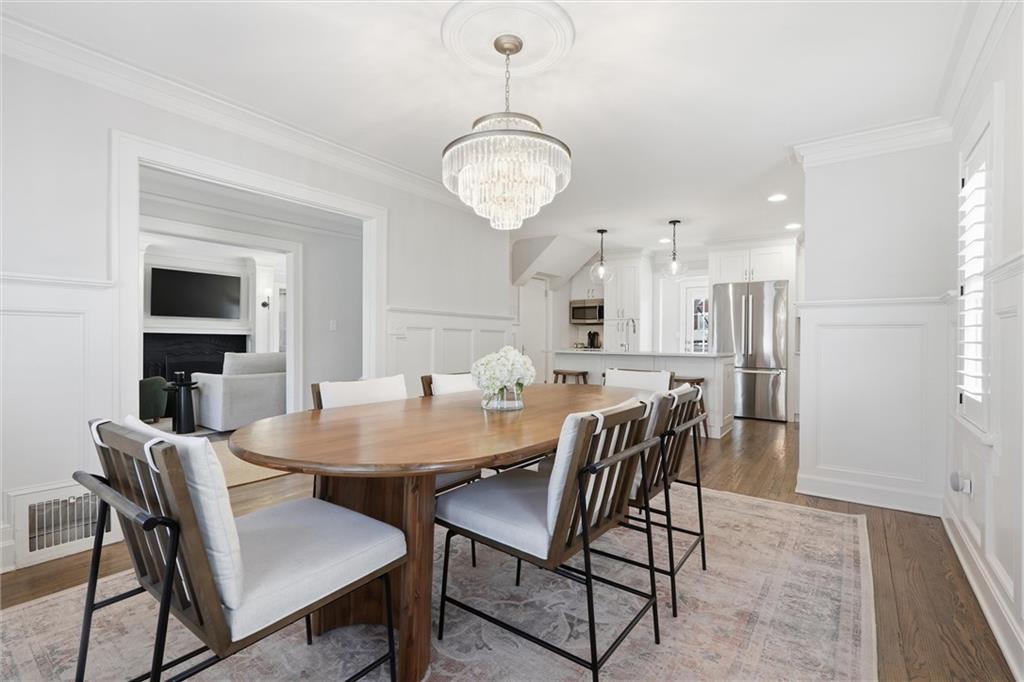 Come see the GEM of Armour HILLS! This home has been meticulously redesigned, reimagined, and REVIVED since 2021. Classic Brookside favorites include rich hardwood floors, crown moldings, crystal doorknobs & decorative wainscoting - But it doesn't stop there! The kitchen/dining area has been opened up to incorporate a chef's DREAM kitchen with a large island and open concept feel. Quartz countertops, high-end appliances, custom cabinetry and designer lighting are just a few aspects that elevate this kitchen. Zoned HVAC and Thermal replacement windows throughout! Mudroom and Half bath behind kitchen provide a rare hidden landing spot for miscellaneous items like shoes, groceries, pet supplies, etc. The formal living room is generous in size with double doors to the backyard and recently refurbished wood burning fireplace! Living room flows right into a newly redesigned bonus room that features a built-in seating area, custom display bar and plenty of additional built-in storage. Upstairs you'll find 3 bedrooms all with WALK-IN CLOSETS! Both full bathrooms have crisp, clean finishes with dual sinks, ample storage in vanities, newer tile work, hardware, lighting, etc. Primary bedroom has 2 walk-in closets, stackable laundry, and designer bathroom finishes. Finished Rec Room in basement has adjoining half bath. Backyard includes new 6ft wood privacy fence, 2 patios in back, plus 2 car garage with private driveway! This home is truly even better in person than in photos. A short stroll to Arbor Villa Park, the Trolley Trail, Brookside Shops etc. A stunning home in an incredible location...these RARELY come along!