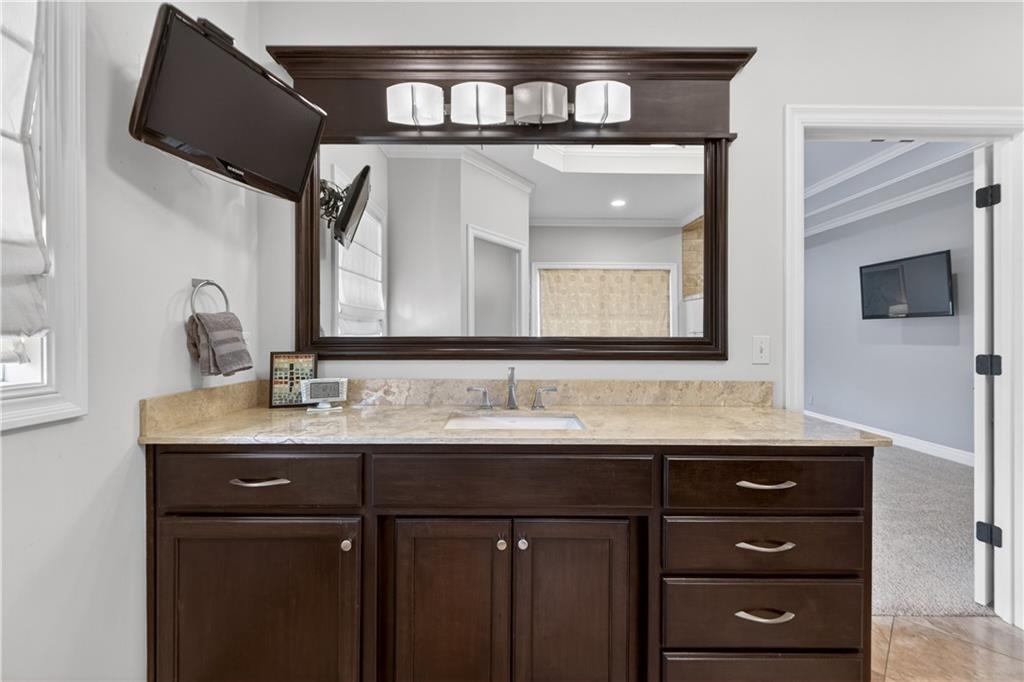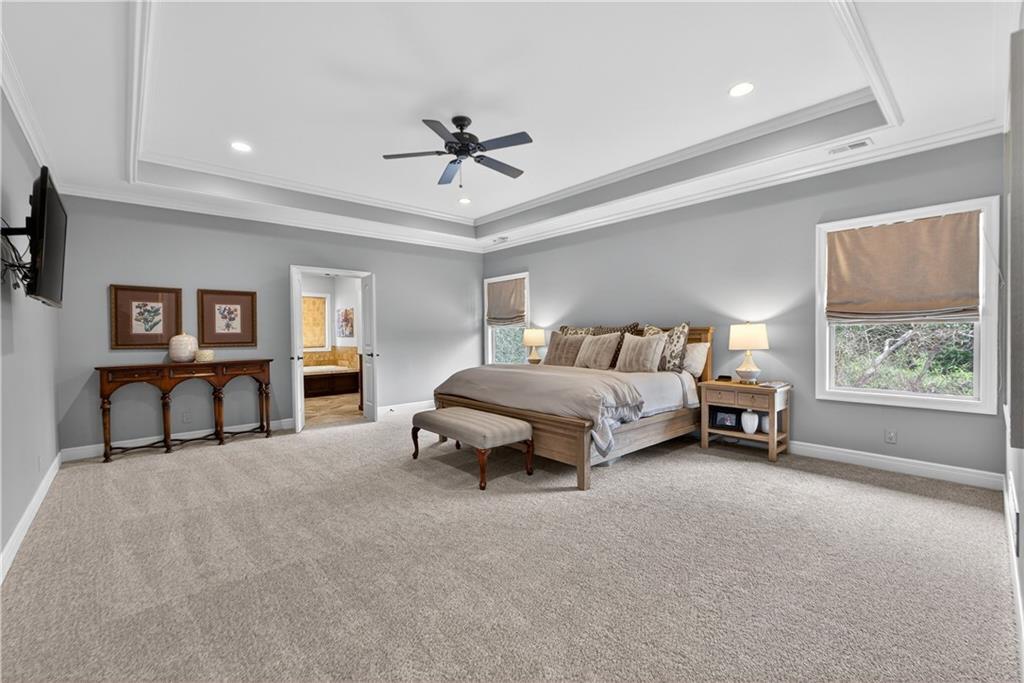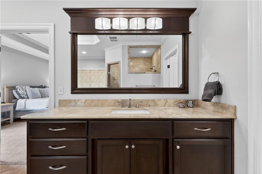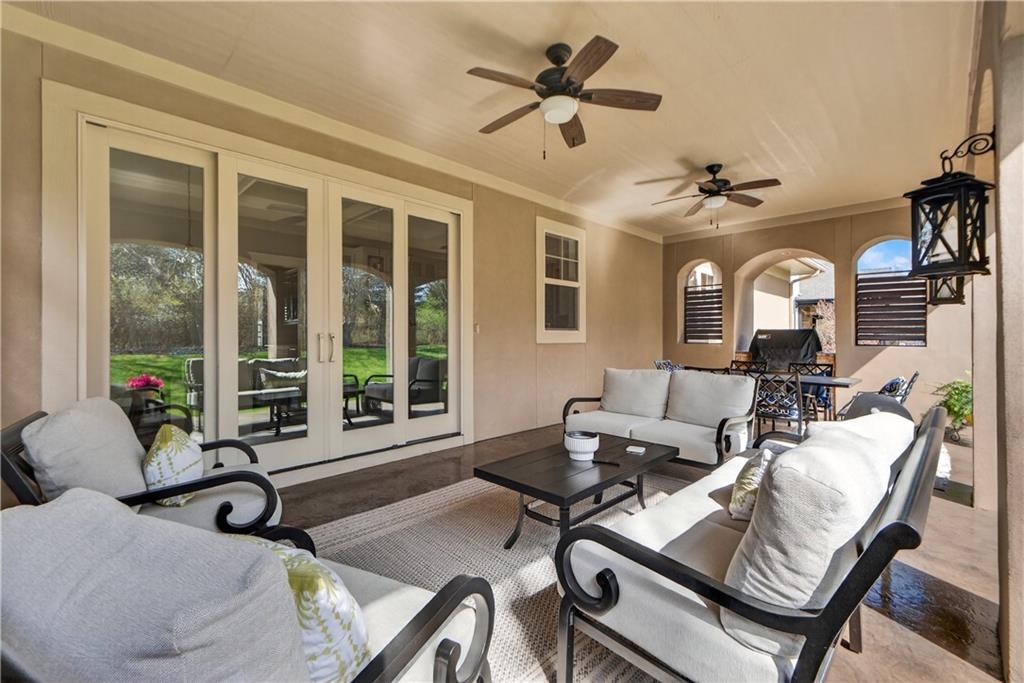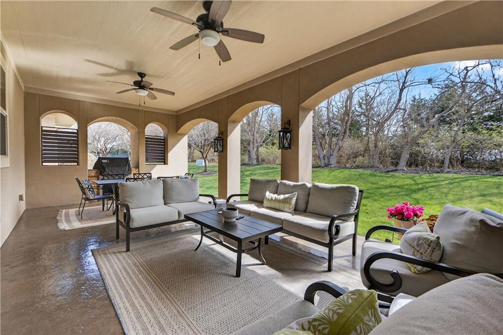 This one owner custom built home sits on an oversized private treed lot and boasts upgraded mill work and moldings, fresh new paint throughout and true hardwood floors on the entire first floor and stairs. The chef's dream kitchen has upgraded granite countertops, huge center island, double ovens, newly painted cabinets and opens up to family room with vaulted ceilings, beautiful mill work and stunning fireplace. Walk out to the covered lanai perfect for entertaining, lounging and grilling! Three car side entry garage with flat driveway is perfect for outdoor activities. The finished lower level has a fifth bedroom, fourth full bath, with rec and family room areas. Must see this home with charming front porch, 2 main floor offices and all upgraded finishes!
