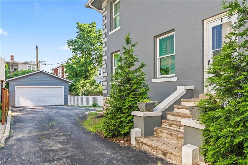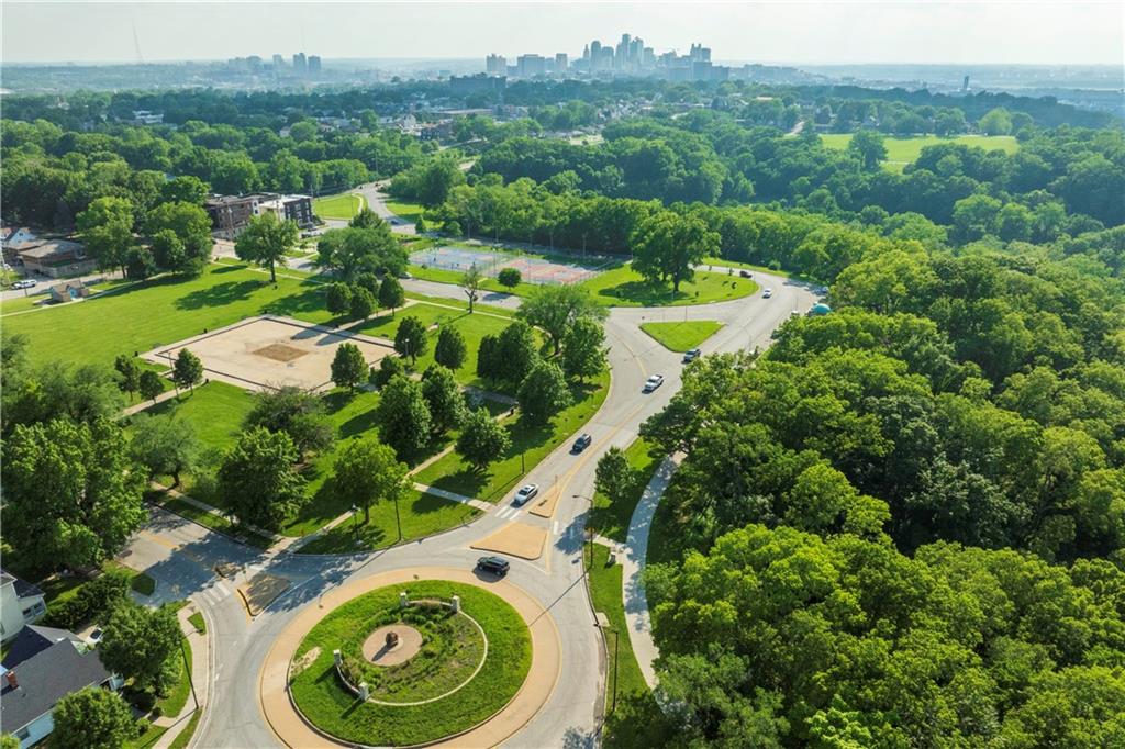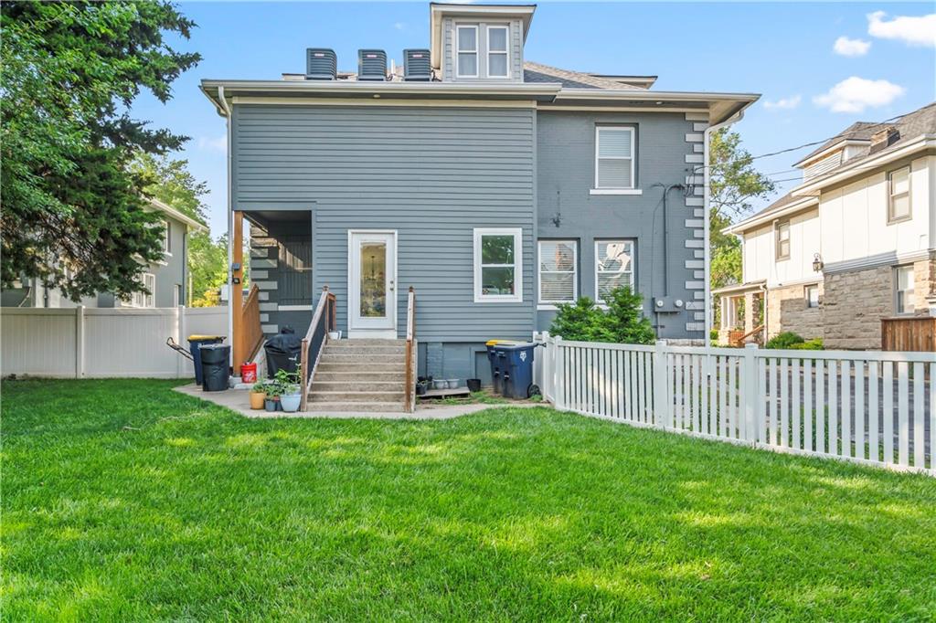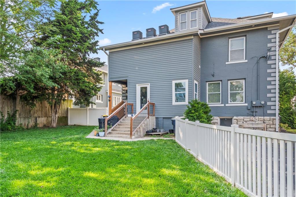 Timeless Luxury in the Scarritt Point Historic District just outside of Downtown. Experience refined living in this magnificent 1910 American Foursquare residence, gracefully situated on a picturesque street, just steps from acclaimed restaurants and vibrant entertainment. Discover sun-drenched interiors adorned with rich hardwoods, custom millwork, and premium fixtures. The grand formal entry sets an impressive tone, seamlessly connecting spacious living areas designed for both comfort and entertaining. Host unforgettable gatherings in the elegant dining parlor, featuring French doors, exquisite lighting, and a dramatic bay of oversized windows. The gourmet kitchen is a chef’s dream—thoughtfully designed with abundant cabinetry, a generous island with breakfast bar, granite countertops, and a secondary dining for casual meals. Retreat to the stately library, accented in deep hues, with a private side entrance. For ultimate convenience and privacy, the main level features a spacious guest suite—perfect for visitors or multi-generational living. A chic powder room is discreetly positioned for guests. Upstairs, the private quarters include a formal corridor, three secondary bedrooms, and a lavish primary suite with a spa-inspired bath and expansive walk-in closet with laundry hookups. Third level offers a contemporary recreation space with panoramic views and a full bath—ideal for relaxation or entertaining. Meticulously maintained, this 4,900-square-foot home features newer mechanicals, including zoned HVAC for year-round comfort. Outdoor living is equally impressive, with a fully fenced backyard, a spacious front porch perfect for morning coffee, and detached two-car garage. Located just a block away from the renowned Kansas City Museum and close to downtown amenities, this residence captures the timeless charm of this convenient and exclusive neighborhood.