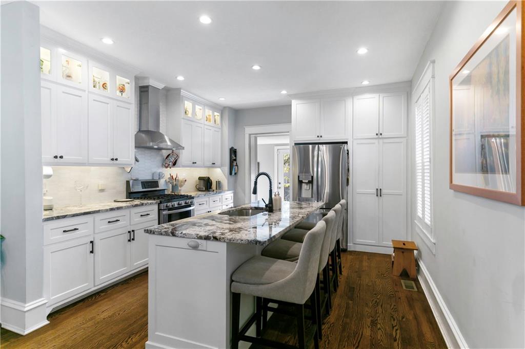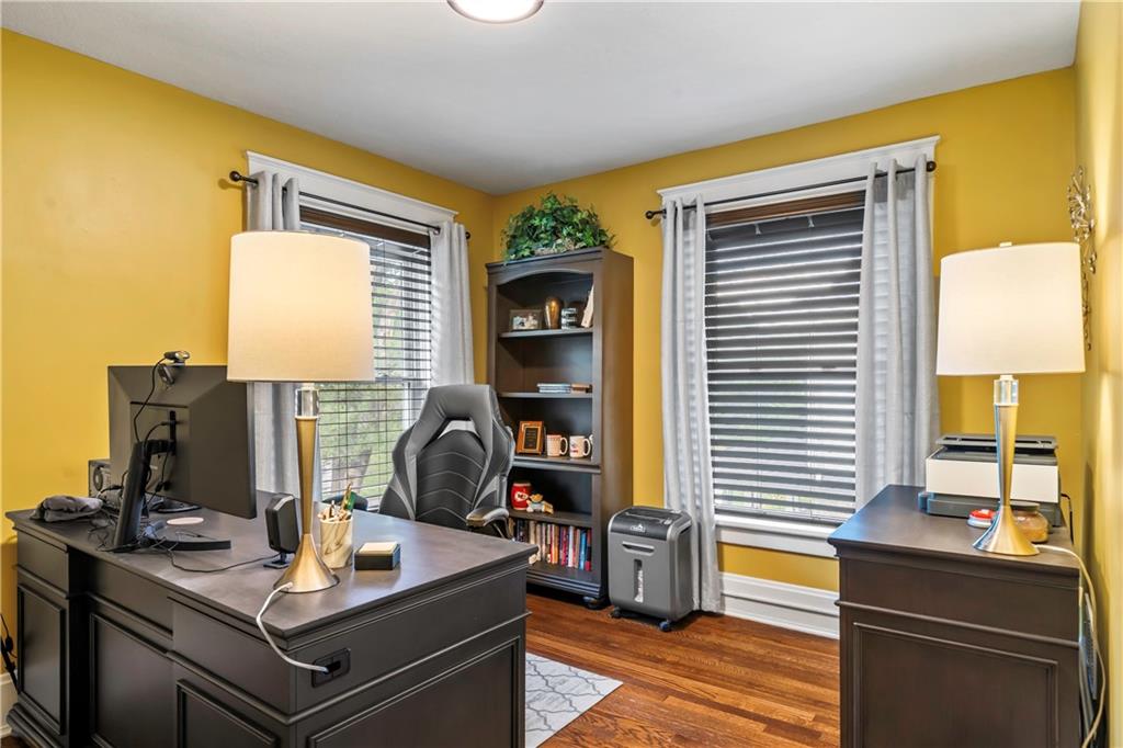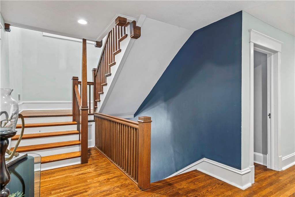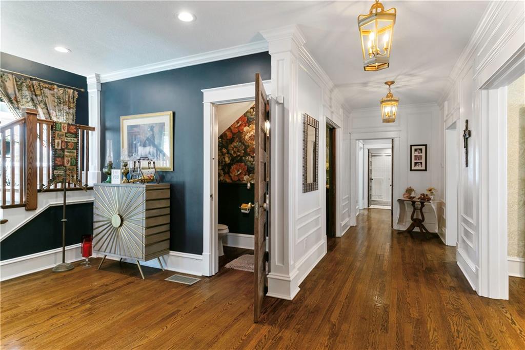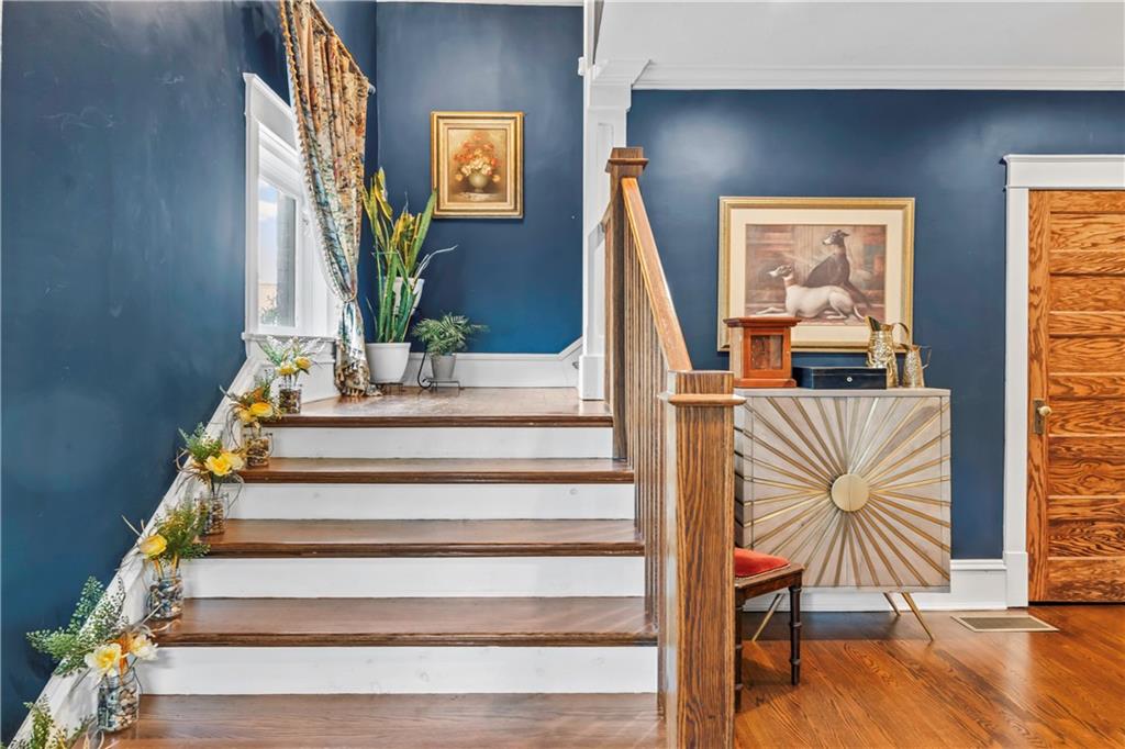 Timeless Luxury in the Scarritt Point Historic District just outside of Downtown. Experience refined living in this magnificent 1910 American Foursquare residence, gracefully situated on a picturesque street, just steps from acclaimed restaurants and vibrant entertainment. Discover sun-drenched interiors adorned with rich hardwoods, custom millwork, and premium fixtures. The grand formal entry sets an impressive tone, seamlessly connecting spacious living areas designed for both comfort and entertaining. Host unforgettable gatherings in the elegant dining parlor, featuring French doors, exquisite lighting, and a dramatic bay of oversized windows. The gourmet kitchen is a chef’s dream—thoughtfully designed with abundant cabinetry, a generous island with breakfast bar, granite countertops, and a secondary dining for casual meals. Retreat to the stately library, accented in deep hues, with a private side entrance. For ultimate convenience and privacy, the main level features a spacious guest suite—perfect for visitors or multi-generational living. A chic powder room is discreetly positioned for guests. Upstairs, the private quarters include a formal corridor, three secondary bedrooms, and a lavish primary suite with a spa-inspired bath and expansive walk-in closet with laundry hookups. Third level offers a contemporary recreation space with panoramic views and a full bath—ideal for relaxation or entertaining. Meticulously maintained, this 4,900-square-foot home features newer mechanicals, including zoned HVAC for year-round comfort. Outdoor living is equally impressive, with a fully fenced backyard, a spacious front porch perfect for morning coffee, and detached two-car garage. Located just a block away from the renowned Kansas City Museum and close to downtown amenities, this residence captures the timeless charm of this convenient and exclusive neighborhood.