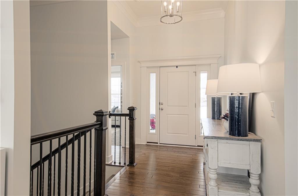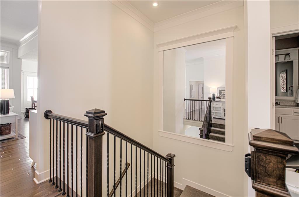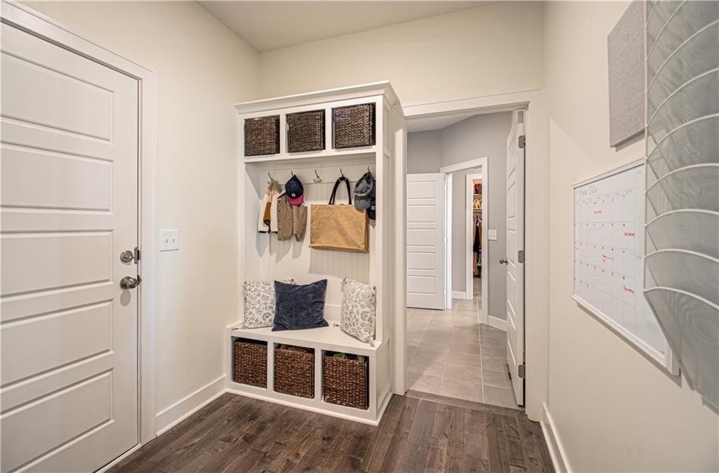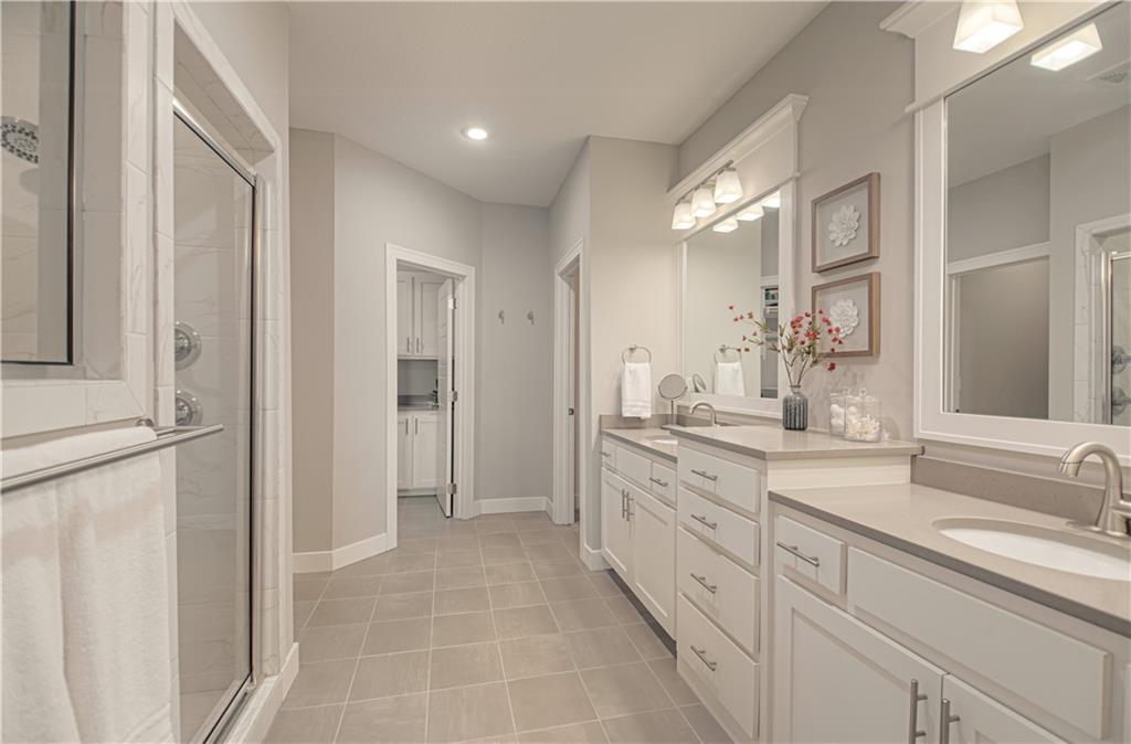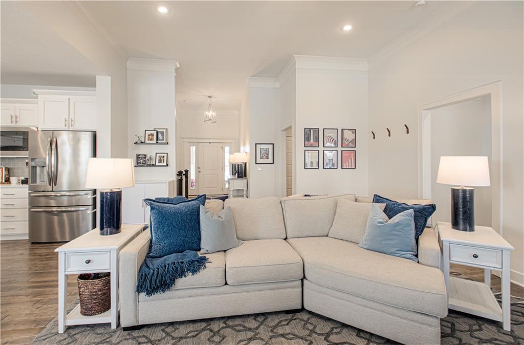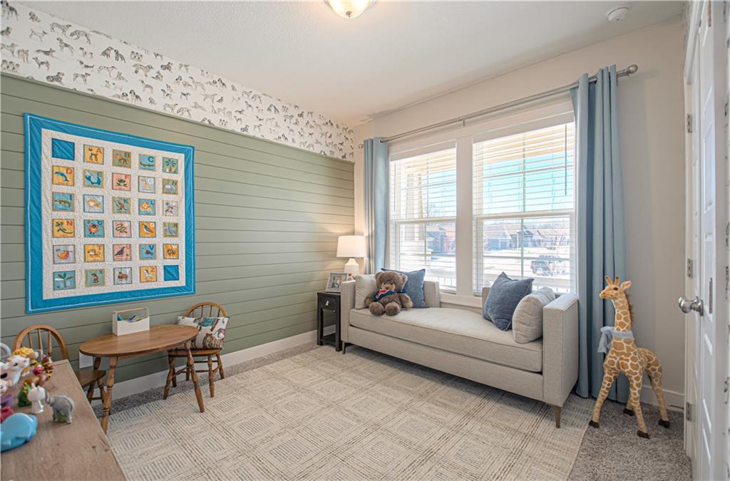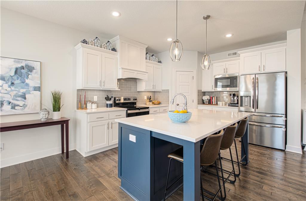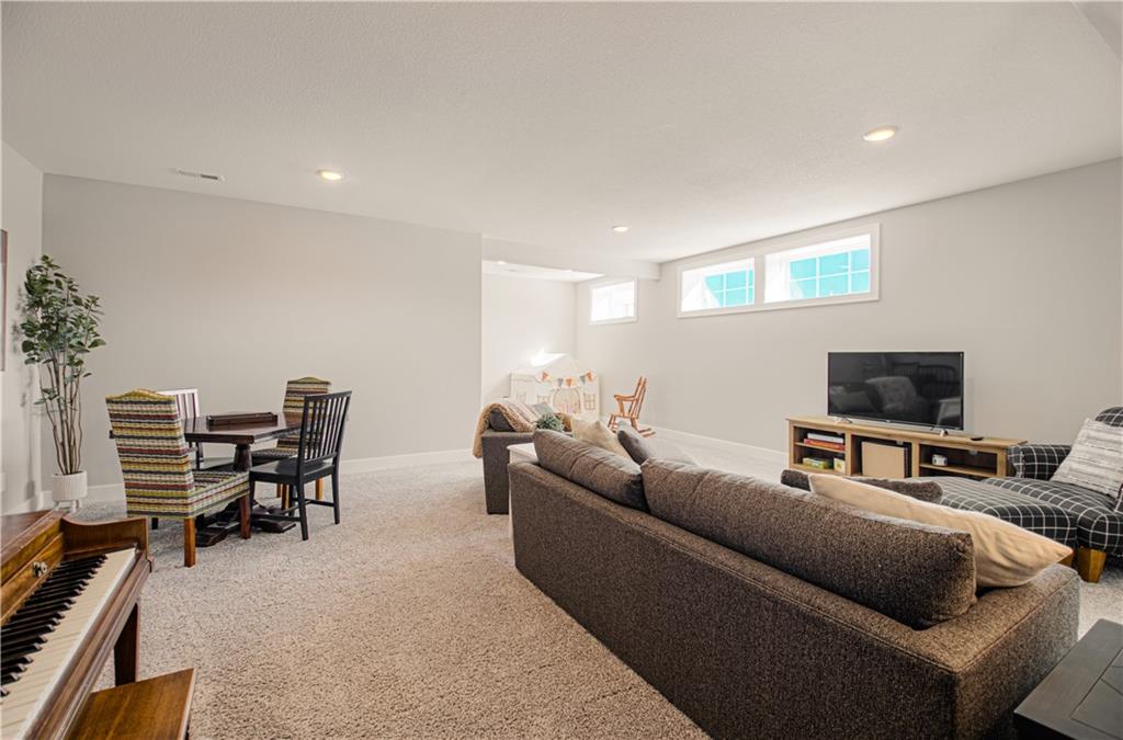 WOW! BETTER THAN NEW! Welcome to this beautifully crafted Woodland Hills APEX Reverse 1.5-Story by Prieb Homes, offering a thoughtful design & quality finishes throughout. A welcoming covered front porch sets the tone, while the north-facing covered deck provides the perfect space for year-round entertaining. Just below, enjoy the landscaped patio with a striking stone retaining wall & a fenced backyard. Inside, the open-concept plan features tall ceilings & 9' foundation walls, creating a spacious feel throughout the home. The expansive main level boasts a stunning great room featuring a stone fireplace with wood mantle & hardwood floors, flowing seamlessly into the well-appointed kitchen. Highlights include quartz countertops, a large island, a custom range hood, stainless-steel appliances & a walk-in pantry, plus an adjacent breakfast/dining area perfect for everyday living. The primary suite offers a peaceful retreat with coffered ceiling, a huge walk-in closet, dual vanities with quartz countertops & a luxurious shower with dual showerheads. A highly desirable 2nd main-level bedroom features an accent shiplap wall & access to a nearby full guest bath with a tile floor & quartz countertop. The main floor also includes a laundry room & a mud room with built-in drop zone bench & closet. The finished daylight lower level is ideal for entertaining, with abundant natural light in the large recreation room offering space for gatherings, games or hobbies. Also, 2 additional bedrooms with egress windows & walk-in closets, a full bath & a BONUS room with a HUGE walk-in closet, built-in desks with quartz countertops that works perfectly as an office or 5th non-conforming bedroom. Additional features include sprinkler, 50-gal water heater, low-E double-pane windows, tiled bath floors, main-level blinds, stunning staircase mirror, a generous unfinished LL storage room & 3 car garage. This home blends comfort, style & functionality—perfect for everyday living & entertaining.