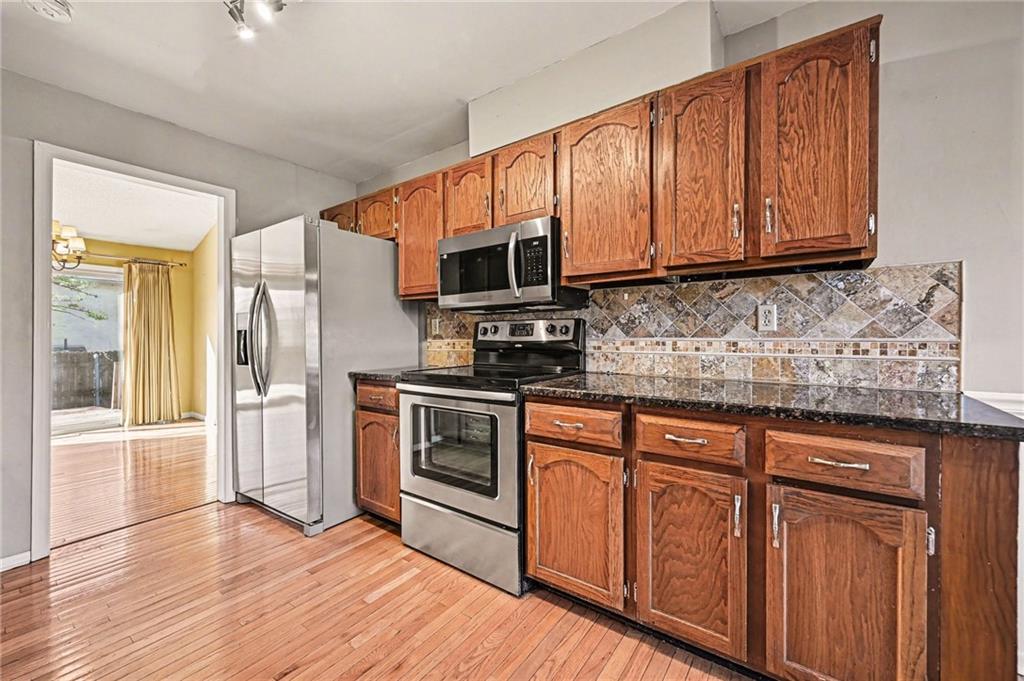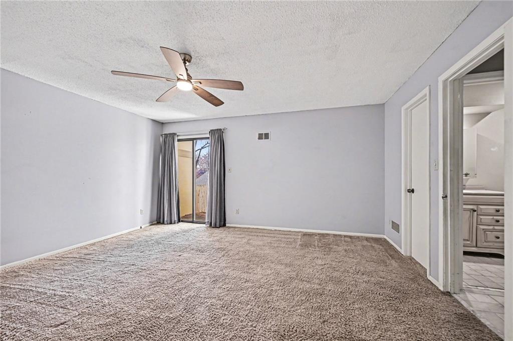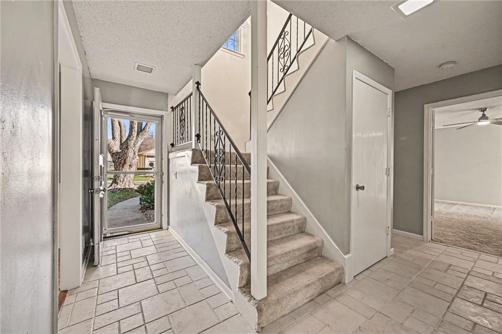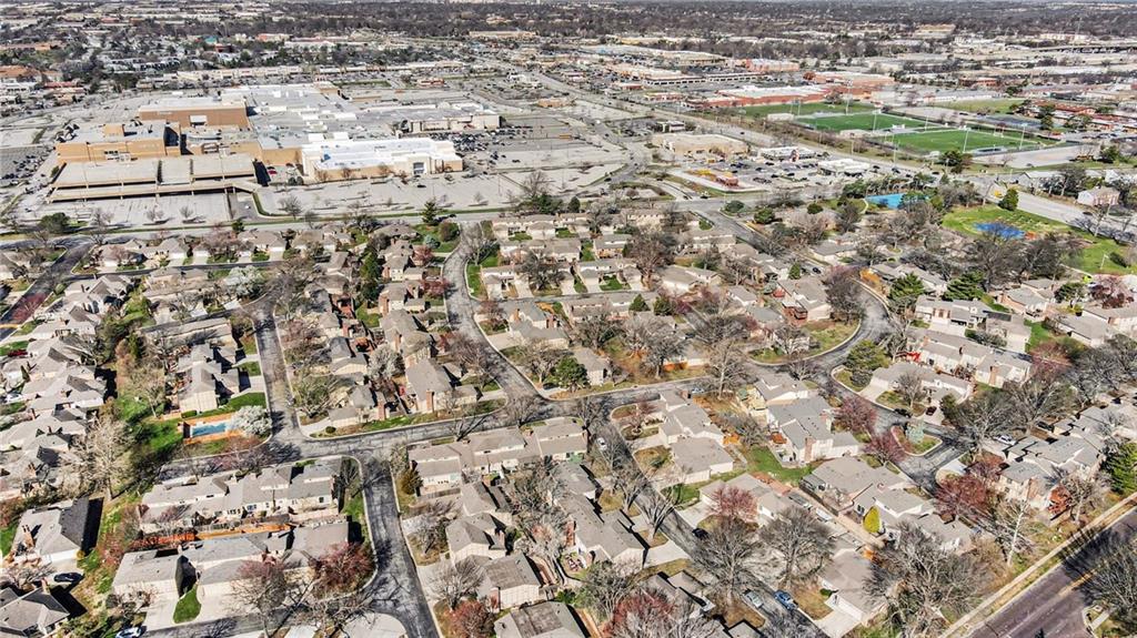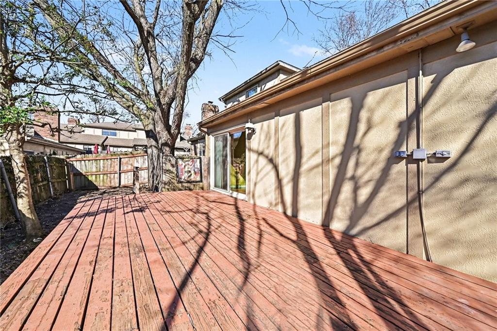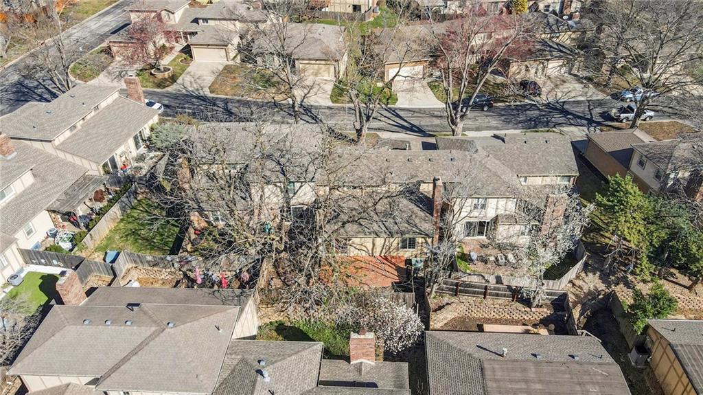 PRICE REDUCED! Exceptional opportunity for a light-filled 3 BEDROOM, 2 bath, town home ideally positioned on a secluded dead-end street—one of the most desirable placements in the community—walkable to Oak Park Mall shopping and dining. This flexible floor plan offers two potential primary suites (one on the main level and one upstairs) along with maintenance-provided living in a highly desirable central Overland Park location with community amenities including swimming pools, tennis courts, and clubhouse facilities nearby. A major recent improvement includes a BRAND NEW ROOF with impact-resistant Class 4 shingles, offering added peace of mind and potential insurance savings after recent Midwest storms. SELLER PAID HOME WARRANTY INCLUDED. Inside, the home features a light-filled great room with soaring vaulted ceilings, hardwood floors, and a striking fireplace anchoring the living space. The kitchen includes granite countertops, an eat-in dining area, ALL APPLIANCES STAY, creating a practical layout for everyday living. The main-floor primary suite includes a full bath and generous double closets, offering comfortable main-level living. Upstairs are two additional bedrooms and another full bath, including a bedroom with a walk-in closet, providing flexibility for a second primary suite or office Outdoor living is easy with a large private deck and little yard to maintain. Enjoy a low-maintenance lifestyle with HOA services including lawn care and snow removal. The daylight bsmnt is partially finished and offers great potential for additional living space, recreation room, home office, or future 4th bedroom. Lovingly owned for 25 years, the home is move in ready while offering buyers the chance to update over time. Sold as-is by the trust and priced to reflect condition, offering compelling value and opportunity to build equity in a prime Overland Park location. Homes with this combination of privacy, walkability, and value rarely become available