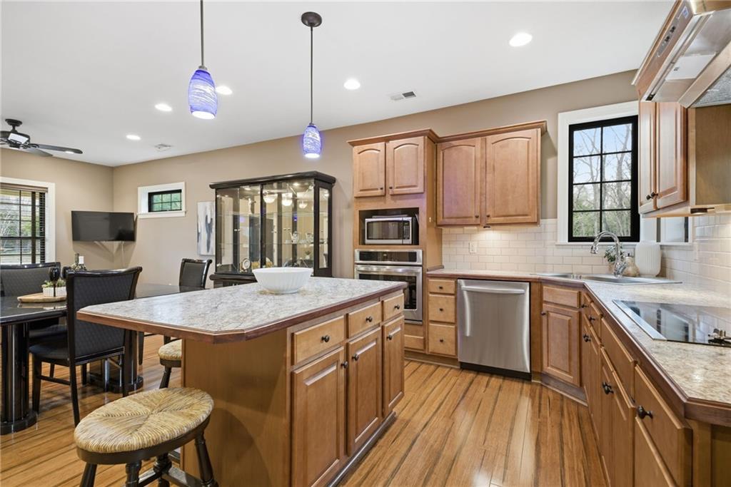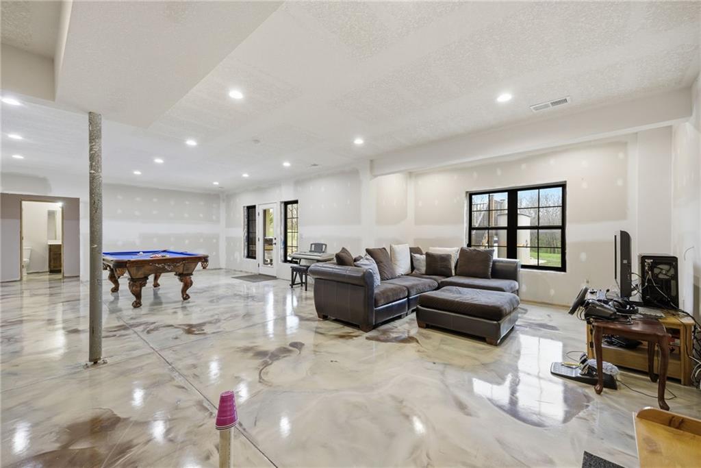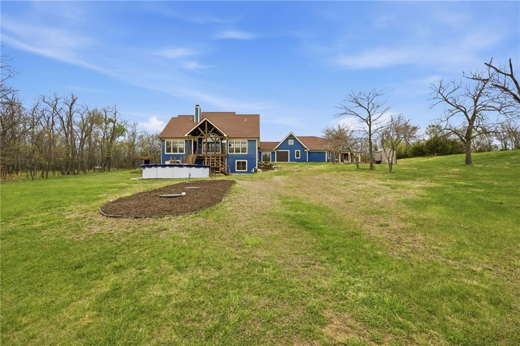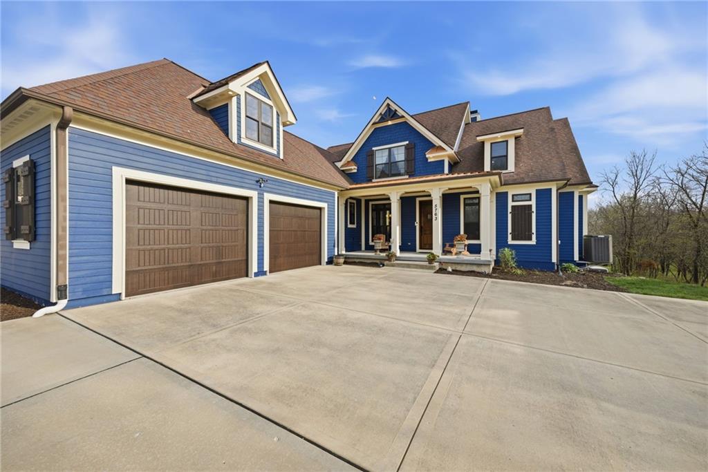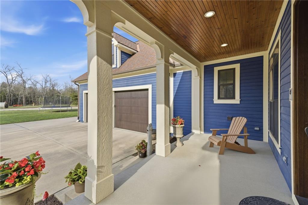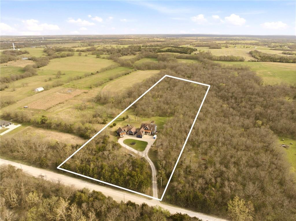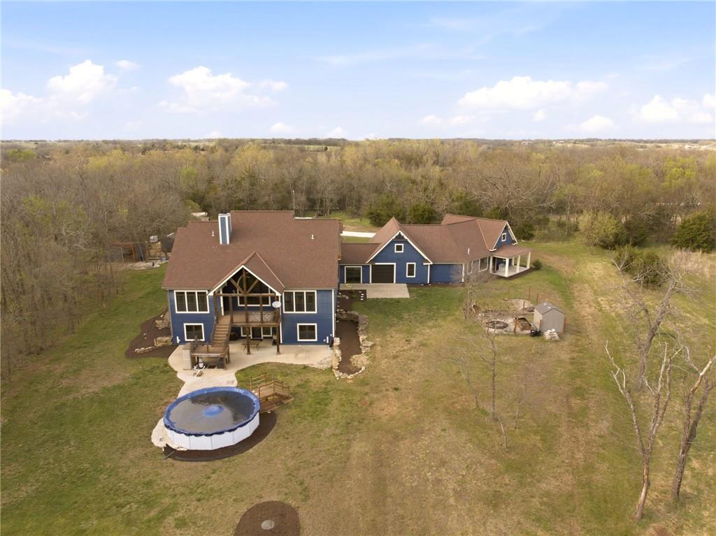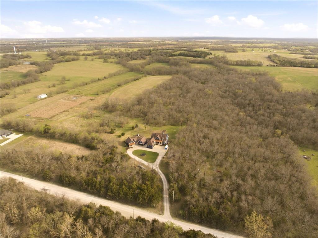 Tucked away on nearly 6 wooded acres (5.62±), this custom modern Craftsman estate offers a rare blend of privacy, craftsmanship, & luxury living just minutes from Johnson County in Northern Miami County. A tree-lined drive winds through mature timber to the circular drive & welcoming covered front porch. Inside, stunning honed HDWD floors flow through the main living areas. The foyer opens to a dining RM & a spectacular great RM featuring a vaulted ceiling, stone FP flanked by built-ins, & a dramatic floor-to-ceiling arched window framing sweeping forest views. The great RM adjoins the custom kitchen & BKFST area w/walkout access to a covered deck. The kitchen is designed for serious cooking w/granite counters, a large island, SS appliances including an Electrolux refrigerator/freezer, built-in oven, convection micro, 6-burner gas cooktop w/commercial hood, lazy-Susan corner cabinets, central vacuum w/convenient crumb drawer, & abundant storage. The main-LVL owner’s suite features honed HDWD floors & a spa-inspired bath w/glass shower, claw-foot soaking tub, & walk-in closet. A private office w/a built-in desk & cabinetry, full bath, & laundry RM w/sink complete the main LVL. Upstairs offers 2 expansive BRs w/walk-in closets & a full bath. The semi-finished walkout LL includes stained epoxy flooring, family & rec RMs opening to the patio & pool, plus a 4th BR/exercise RM & full bath. A breezeway connects the home to a private guest cottage w/bamboo flooring, full kitchen w/pantry, living area, BR, bath, laundry, its own garage, & patio overlooking the forest. Additional highlights include zoned HVAC, stand-by whole house generator, security system, water softener & purifier, Z-Wave ready for home automation (you provide computer), indoor/outdoor surround sound -- 6 Polk speakers in kitchen, breakfast, deck & patio, cell booster, & an enclosed goat yard w/outbuildings. Secluded acreage, scenic views, & refined finishes create a truly exceptional retreat.