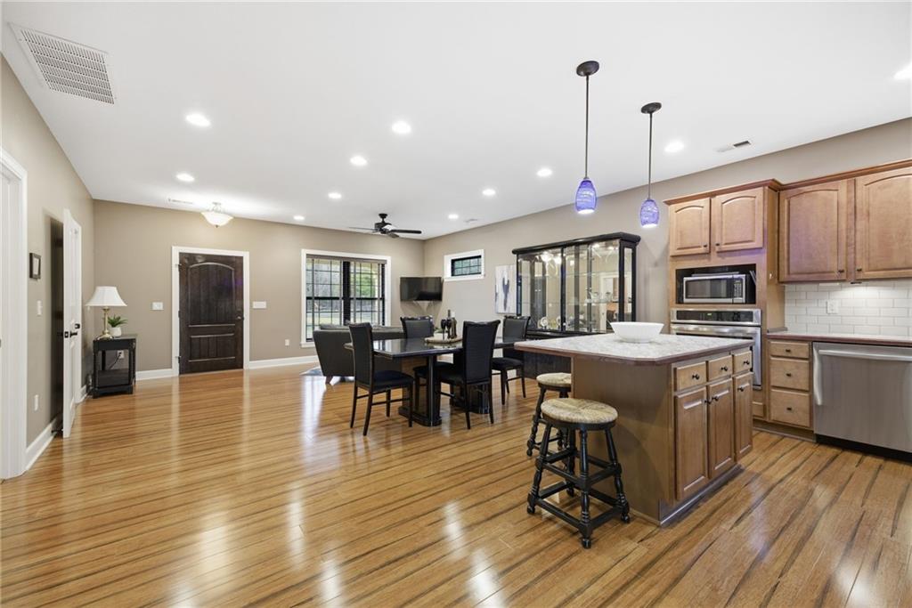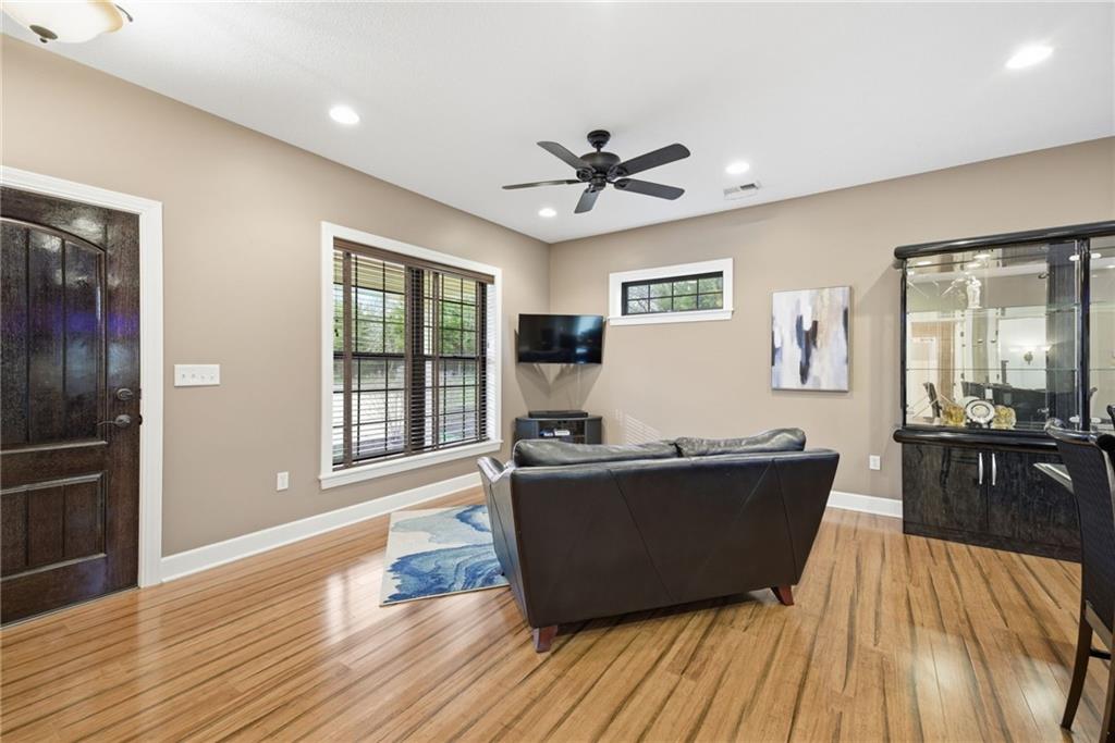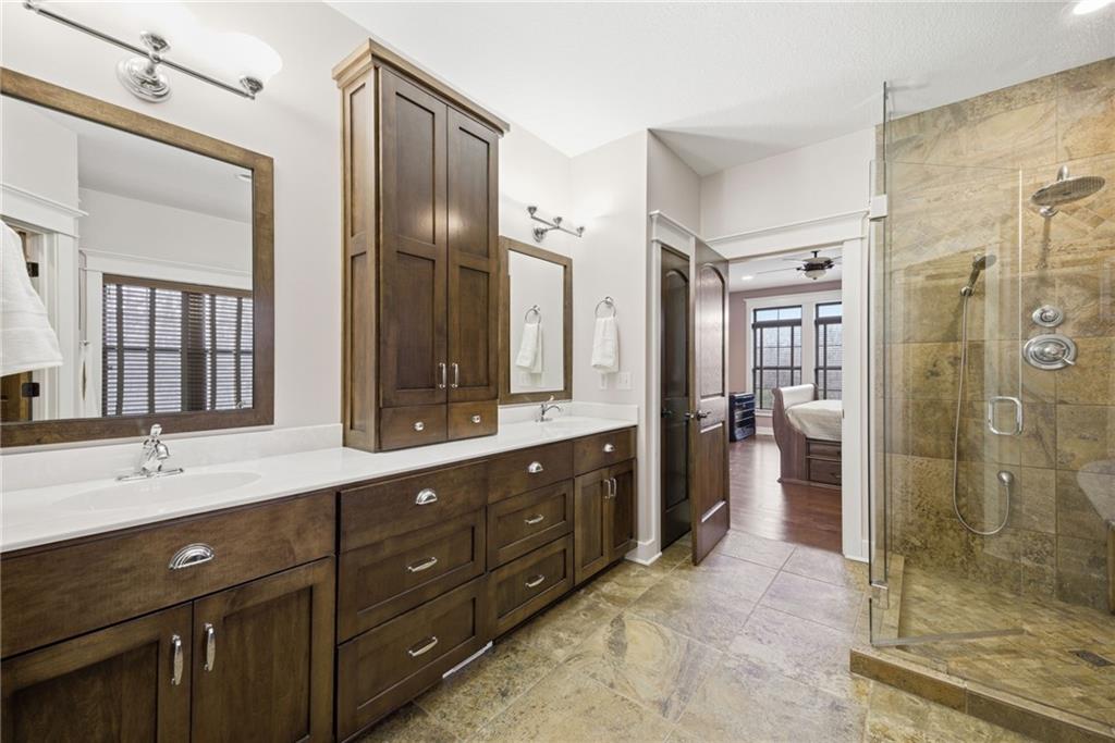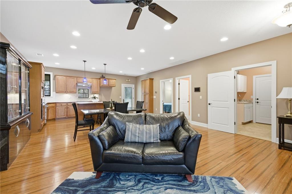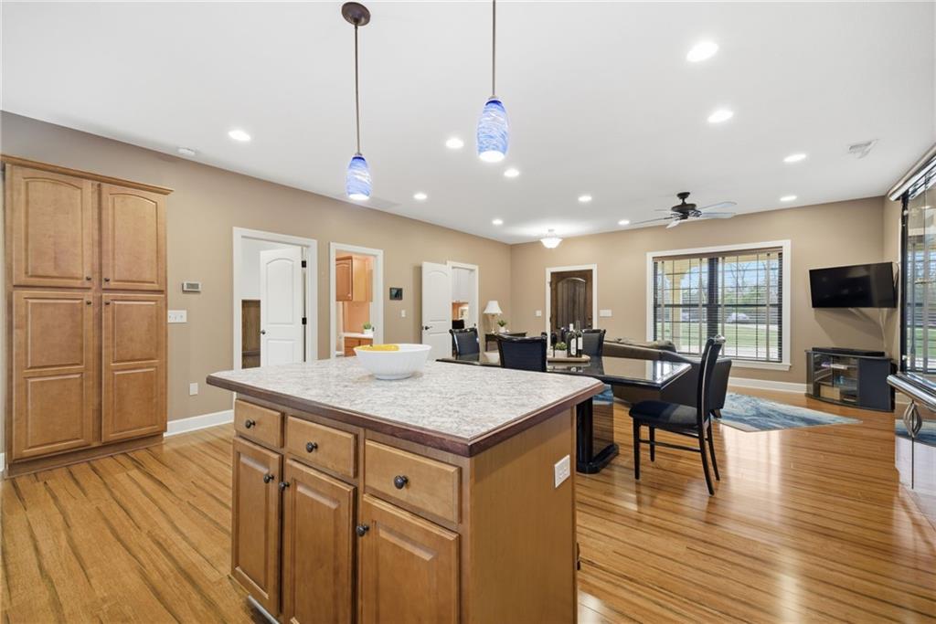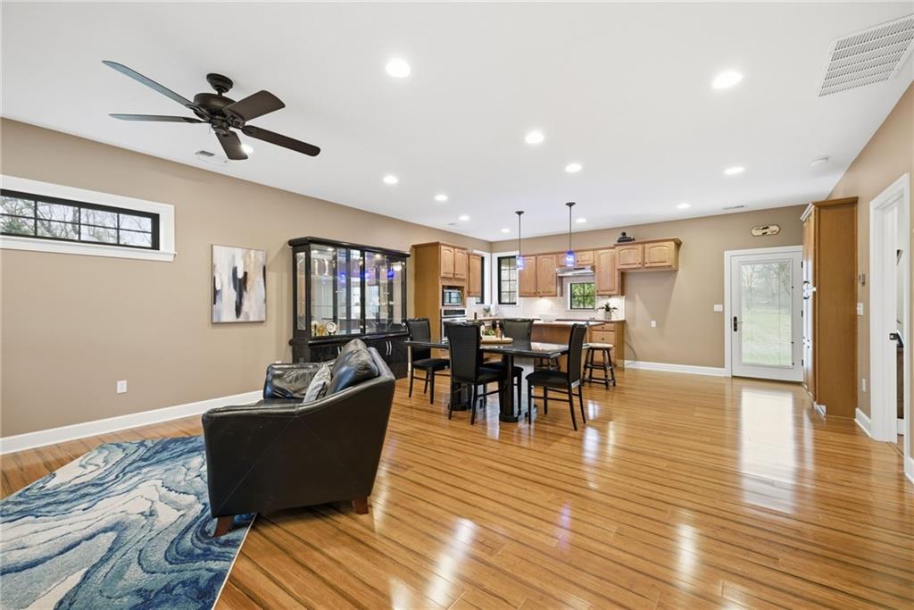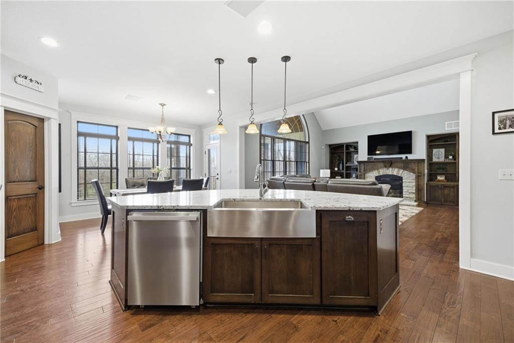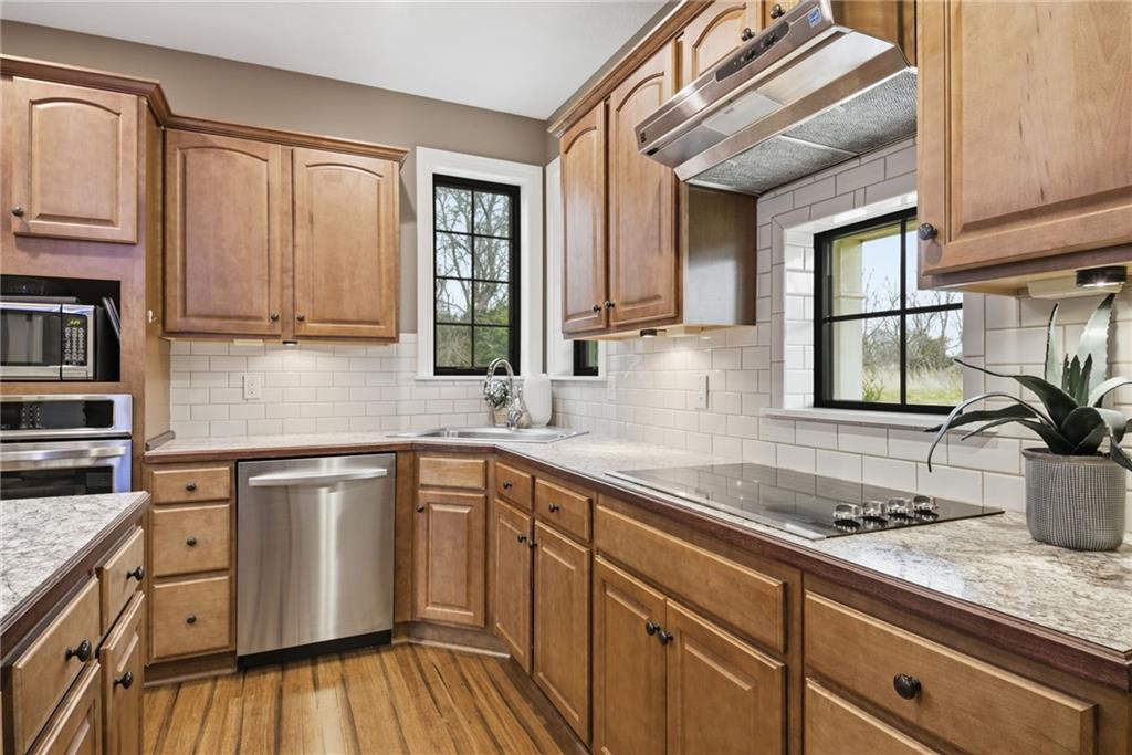 Tucked away on nearly 6 wooded acres (5.62±), this custom modern Craftsman estate offers a rare blend of privacy, craftsmanship, & luxury living just minutes from Johnson County in Northern Miami County. A tree-lined drive winds through mature timber to the circular drive & welcoming covered front porch. Inside, stunning honed HDWD floors flow through the main living areas. The foyer opens to a dining RM & a spectacular great RM featuring a vaulted ceiling, stone FP flanked by built-ins, & a dramatic floor-to-ceiling arched window framing sweeping forest views. The great RM adjoins the custom kitchen & BKFST area w/walkout access to a covered deck. The kitchen is designed for serious cooking w/granite counters, a large island, SS appliances including an Electrolux refrigerator/freezer, built-in oven, convection micro, 6-burner gas cooktop w/commercial hood, lazy-Susan corner cabinets, central vacuum w/convenient crumb drawer, & abundant storage. The main-LVL owner’s suite features honed HDWD floors & a spa-inspired bath w/glass shower, claw-foot soaking tub, & walk-in closet. A private office w/a built-in desk & cabinetry, full bath, & laundry RM w/sink complete the main LVL. Upstairs offers 2 expansive BRs w/walk-in closets & a full bath. The semi-finished walkout LL includes stained epoxy flooring, family & rec RMs opening to the patio & pool, plus a 4th BR/exercise RM & full bath. A breezeway connects the home to a private guest cottage w/bamboo flooring, full kitchen w/pantry, living area, BR, bath, laundry, its own garage, & patio overlooking the forest. Additional highlights include zoned HVAC, stand-by whole house generator, security system, water softener & purifier, Z-Wave ready for home automation (you provide computer), indoor/outdoor surround sound -- 6 Polk speakers in kitchen, breakfast, deck & patio, cell booster, & an enclosed goat yard w/outbuildings. Secluded acreage, scenic views, & refined finishes create a truly exceptional retreat.