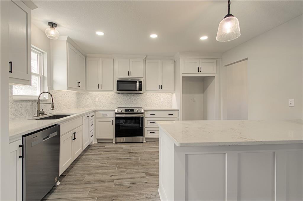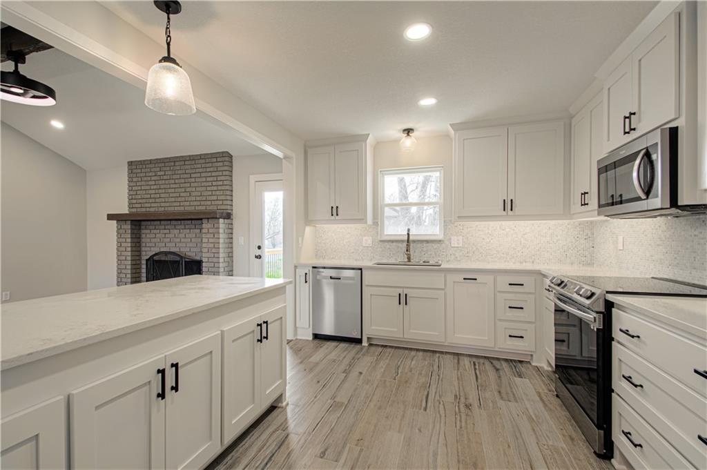 Move-in Ready! Welcome home to this updated Raised Ranch located in Unincorporated Platte County! This 3 bedroom home boasts Many updates that includes Fresh Paint inside and out, new deco flooring thru-out the home and new carpet in the bedrooms. With a brand new kitchen that includes gorgeous new custom cabinets and counter-tops with stylish backsplash and lighting to really give the space a modern look. Additional mentions include Vaulted ceilings that gives a very spacious main floor and a feature brick fireplace in the family room with a large traditional dining space that offers plenty of room for entertaining and family time! With two Brand new full bathrooms on the main including a private Master bath. The main floor is a stunner! Walk out to your brand new oversized back deck to enjoy your back yard which hosts a nice space for relaxing or a play area! Down to the lower level is a new finished Rec Room , A Second Brick fireplace , Laundry space and additional new half bath. With a Side entry & oversized 2 car garage , this home sits on an extra large corner lot. All electrical has been updated . This home offers a lot of space, style , updates and location! Located in The Park Hill School District and Unincorporated Platte County. Set up your showing today!