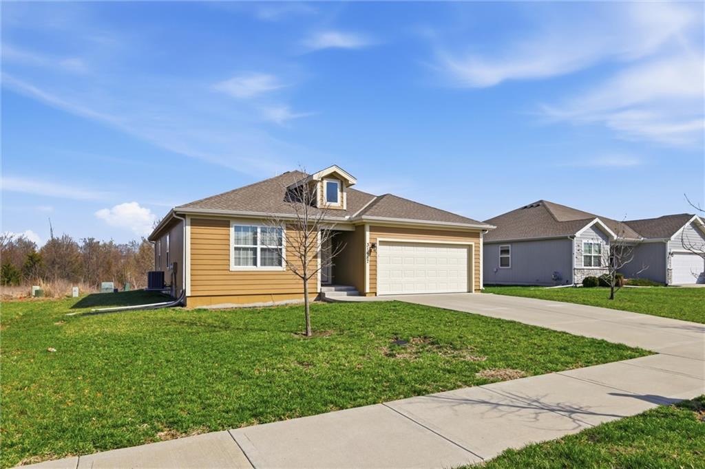 Built in 2018, this contemporary ranch-style residence is designed for the modern family, featuring an efficient and inviting floor plan that spans approximately 1,510 square feet of living space. From the moment you pull into the attached two-car garage, the home's meticulous maintenance and curb appeal in the St. John’s Highlands neighborhood make a lasting first impression. The interior of the home is bathed in natural light, highlighting a neutral and soothing color palette that complements any décor style. The heart of the home is a spacious, open-concept kitchen and living area, perfect for busy weekday mornings or relaxed weekend gatherings. The kitchen is a chef’s delight, equipped with elegant wooden cabinetry, ample counter space for meal prep, and a suite of modern stainless steel appliances, including a dishwasher, microwave, and refrigerator. The seamless transition from the kitchen to the dining and living areas ensures that the cook is always part of the conversation.With three well-appointed bedrooms and two full bathrooms, there is plenty of room for everyone to find their own corner of comfort. The primary suite serves as a private retreat, complete with a generous closet and an ensuite bathroom featuring dual sinks and a classic bath/shower combination. The additional two bedrooms are versatile, making them ideal for children, guests, or a dedicated home office. For those needing extra storage or a future recreation space, the large basement provides a blank canvas to expand your living area to suit your family's unique needs.Stepping outside, the 0.18-acre lot offers a manageable yet spacious backyard, providing an open space for children to play, pets to roam, or for hosting summer barbecues under the Kansas sky. Situated in a community known for its family-friendly atmosphere and access to highly-rated Gardner schools, this home provides the stability and convenience families crave.