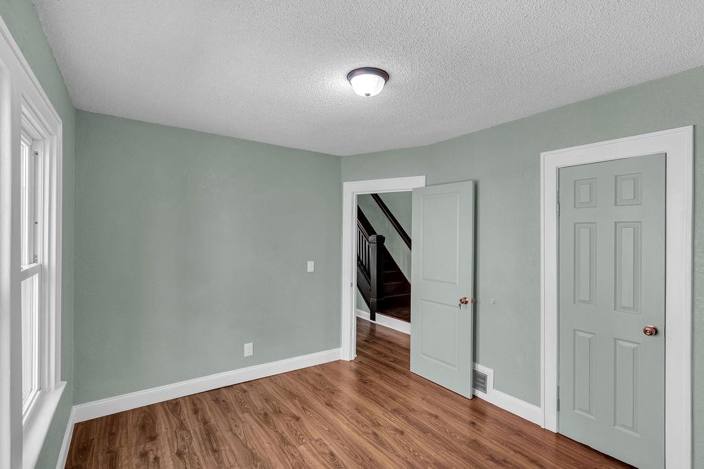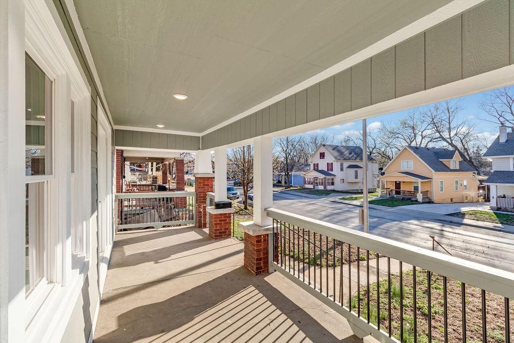 Fully renovated craftsman bungalow with charming curb appeal and thoughtful updates throughout! The covered front porch, gray lap siding, brick columns, and stone foundation give this home a classic look with fresh finishes. Step inside to find LVP flooring, dark crown molding, and recessed lighting throughout the main living areas. The living room features a brick fireplace flanked by built-in bookshelves. The updated kitchen offers white cabinetry, stone-look countertops, an exposed brick backsplash, and a breakfast bar that opens to the dining area. The bathroom has been refreshed with a tub/shower combo, glass slider door, and black hardware accents. The unfinished basement provides excellent storage or future finishing potential, with new plumbing already in place. Don't miss this move-in ready home with character and updates you won't find at this price point!
