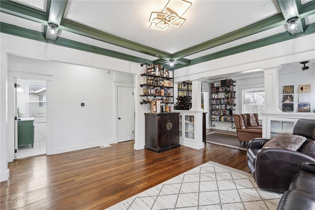 Welcome to this thoughtfully updated Kansas City home that combines charm and functionality. From the moment you arrive, you’ll notice the care and attention that has gone into maintaining and enhancing this property. Step inside to find gleaming hardwood floors, beautiful wood detailing and bright living spaces with high ceilings that create an open and comfortable feel throughout the home. The layout flows naturally between the living, dining, and kitchen areas, making it ideal for everyday living as well as entertaining. The kitchen has been upgraded with a rewired hood vent and a newly added water line to the refrigerator for added convenience. This home also features large closets and well-sized bedrooms, providing plenty of storage and flexible space for a variety of living needs. The garage has been fully insulated, finished with drywall and paint, and had a 240 Volt Outlet installed perfect for those with an electric car. Additional improvements include installed GFI outlets, a new dryer vent, two bathroom vents, repaired A/C and furnace systems, and added vents and returns upstairs to improve airflow throughout the home. Additional updates that add value and peace of mind, include replaced gutters, fascia repairs, attic construction improvements, premium attic insulation with baffle vents, and concrete that has been repaired or newly added. Location is another standout feature of this home. Situated just three blocks from a park, community center, music venue, and the zoo, there are plenty of opportunities nearby for recreation and entertainment. Don't miss out!