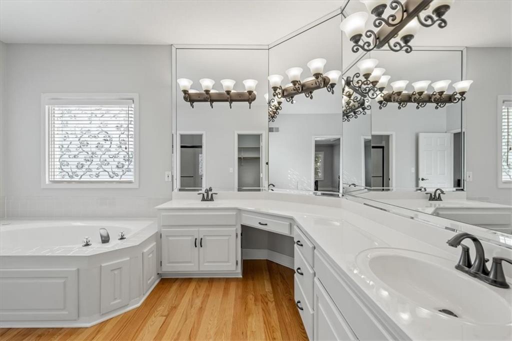 Meticulously maintained Don Julian built home situated in the sought-after Lakewood community on a cul-de-sac lot! Gleaming hardwoods, wall of windows and soaring ceilings highlight the great room with gas fireplace. The updated kitchen features painted cabinets, glass tile backsplash and Quartz counters. The hearth room walks out to the new composite deck overlooking the patio and level backyard—perfect for relaxing, grilling and entertaining! The spacious primary suite offers hardwood floors, recessed ceiling, walk-in closet, and private bath with double vanities, whirlpool tub, and separate shower. A second bedroom, 2nd full bath, formal dining and laundry room complete the main level. The second floor includes two generously sized bedrooms, both with walk-in closets and a full bath with luxury vinyl tile flooring. The finished walkout lower level provides a spacious family room and rec area and is stubbed for a fourth bathroom, plus ample storage and a brand-new furnace. Enjoy incredible neighborhood amenities including pools, swim teams, tennis/pickleball courts, playgrounds, walking trails, and lake access. Fantastic location close to shopping, dining, highways, and top-rated Blue Springs schools.