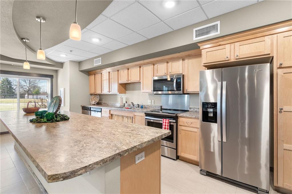 Welcome to this rare Northland 62+ senior community, The Village Cooperative of the Northland, offering secure, maintenance-free living in a beautifully maintained building. If you enjoy an active lifestyle without the hassle of lawn care or exterior maintenance, this is the perfect place to call home. This one-owner, beautifully upgraded 2-bedroom, 2-bath unit features a bright, open floor plan connecting the kitchen, dining, and living areas—ideal for comfortable living and entertaining. The spacious kitchen includes 42" height cabinetry, granite countertops, walk-in pantry/storage/laundry room just off the kitchen, and a large island. All upgraded appliances remain. The primary suite offers a walk-in closet and ensuite with 36" tall double vanity and walk-in shower. The second bedroom has convenient access to a full bath with tub/shower combo. Conveniently located on the first floor with 9' ceilings, the unit offers north and west views from the living room and covered balcony, added secure patio gate for direct access from parking lot for your family and friends. Relax while enjoying peaceful views with frequent sightings of deer, turkey, ducks, and birds. Residents may also select a raised garden bed on the backside of the building for growing summer vegetables. Building amenities include a community gathering room, private entertainment room, library, exercise room, activity room, pergola-covered patio with grill, pickleball court, indoor car wash, heated secure parking with grocery carts, trash chutes on each floor, recycling in the garage, indoor mailboxes, and additional gathering spaces. This pet-friendly community includes a part-time on-site manager and maintenance staff. Extra storage rooms are available for $45/month, and a guest suite can be reserved for visiting family and friends for a $50 donation. Enjoy secure, carefree senior living in a highly desirable Northland community. Schedule your private showing today—you won't be disappointed.