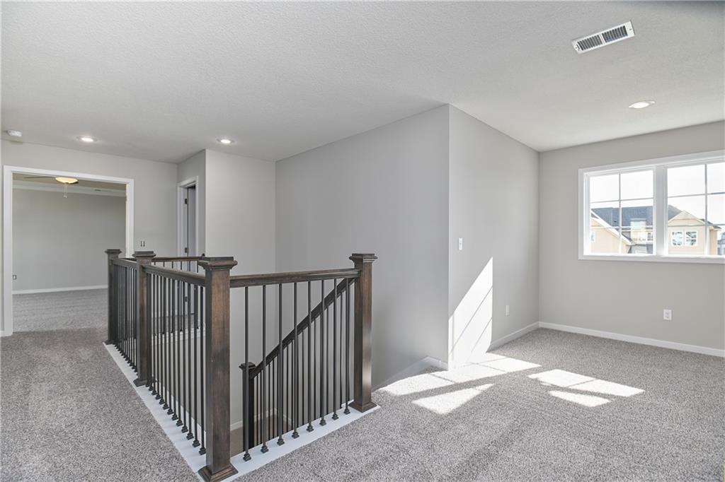 This updated version of the beloved original Levi plan offers expanded square footage and premium upgrades throughout. The open-concept main floor features a spacious kitchen and breakfast area, a larger granite center island with ample seating, and upgraded granite countertops in the kitchen. Kitchen offers soft closet doors and drawers. Enjoy versatile living with a main floor flex room—perfect for a home office or 5th bedroom—plus a mud room with boot bench and entry closet. Upstairs, the expanded master suite boasts a separate sitting area, larger walk-in closet for 2 different sections, and an upgraded primary bath with a freestanding tub. The laundry room has been enhanced with additional workspace, and the open loft with window provides extra living space. Located within walking distance to Lake Olathe, this home also offers access to neighborhood amenities including trails, a pool, and playground. Don’t miss your chance to own this upgraded and spacious home in a prime location!