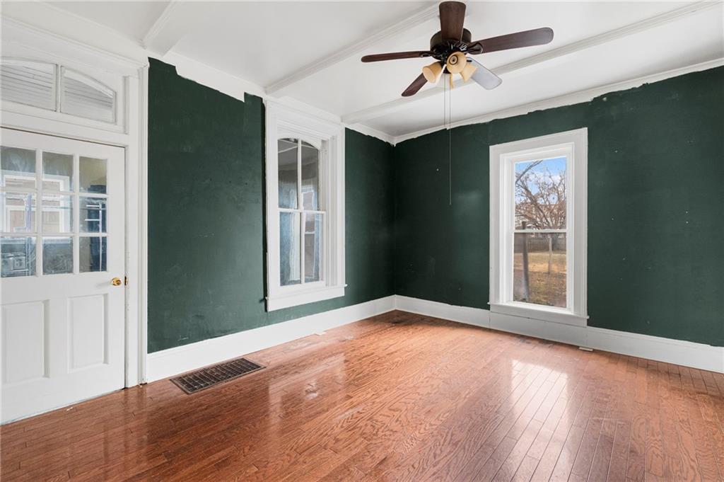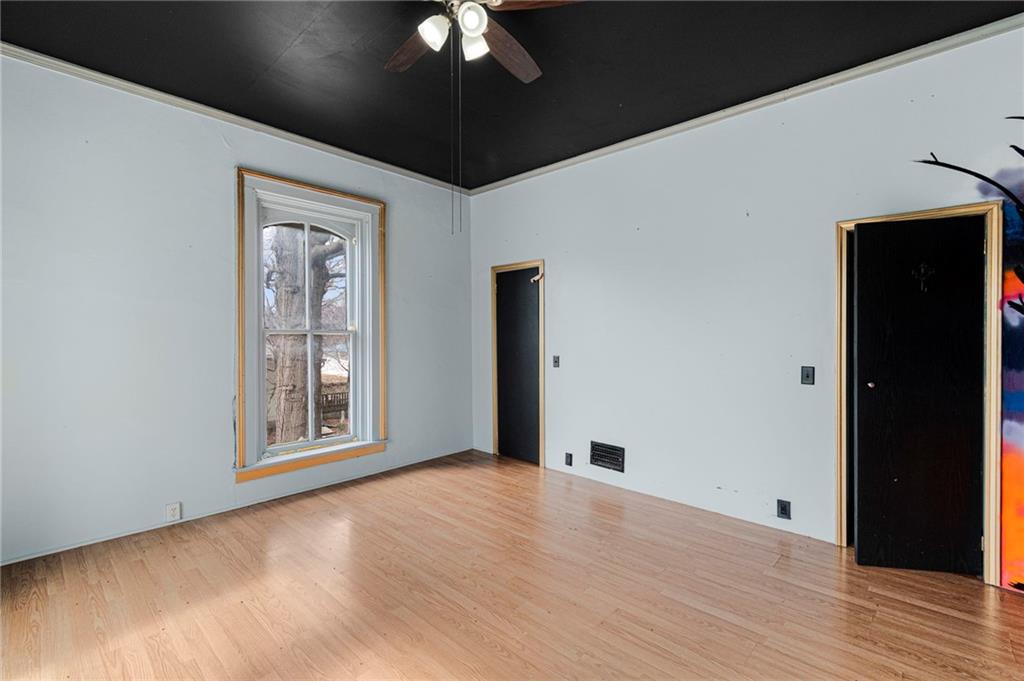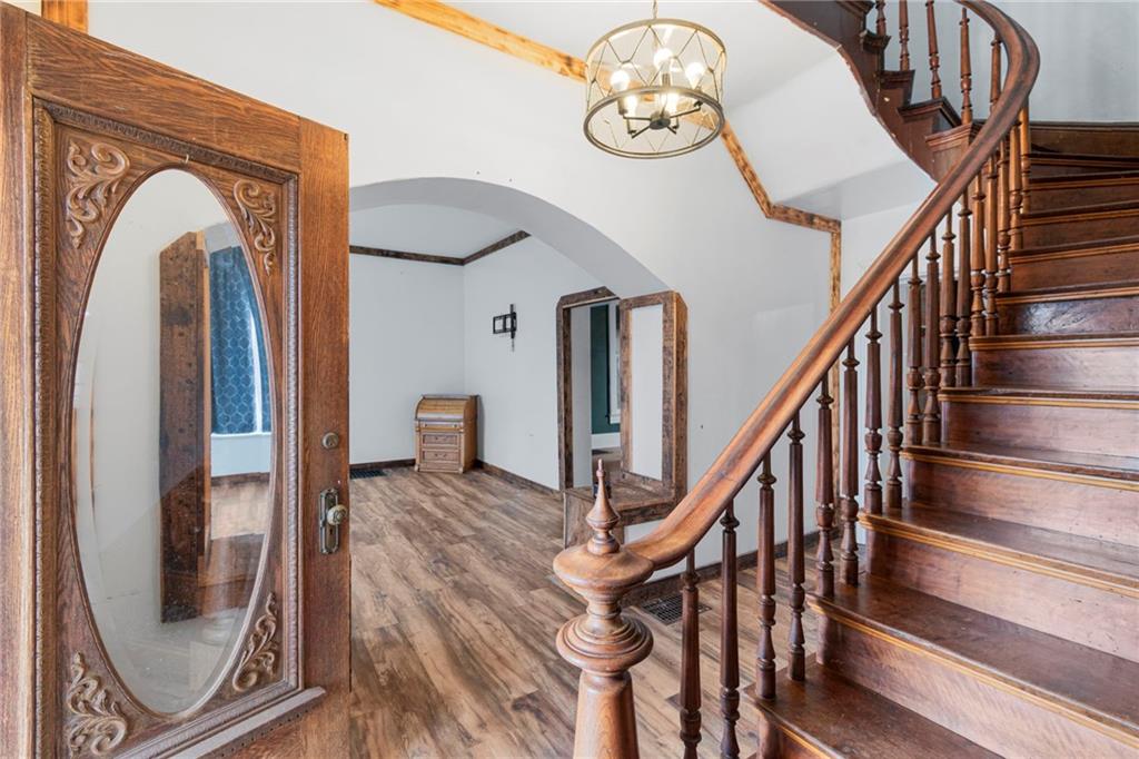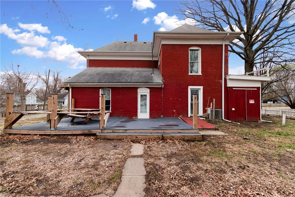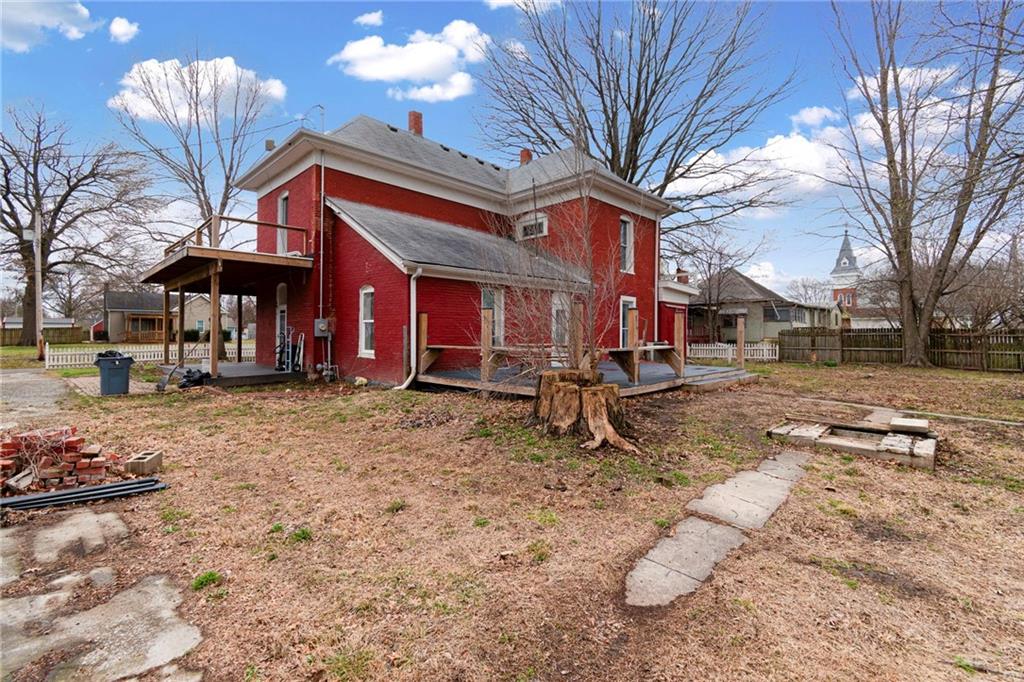 CHARMING HISTORIC HOME FULL OF CHARACTER! Classic residence showcases the craftsmanship of a bygone era and now offers a wonderful opportunity to update and make it your own. Inviting covered wraparound front porch and balcony! Inside, soaring 10-foot ceilings and a stunning hand-carved staircase create a warm and welcoming first impression. Main level features multiple living spaces ideal for everyday living and entertaining, along with a convenient main-floor laundry. Upstairs find three spacious bedrooms and a full bath, plus access to a spacious balcony overlooking the wraparound porch—an ideal spot to relax. Large backyard includes a privacy fence and deck providing endless opportunities for time outdoors. Built with impressive two-foot-thick solid brick walls, this home offers timeless character and solid construction. Bring your vision and enjoy the charm and history this special home has to offer--WELCOME HOME!