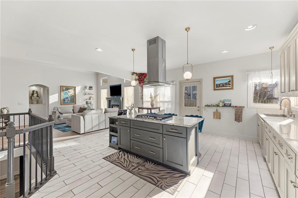 Wonderful ranch in Park Hill School district and all hard surface floors except steps. Walk into open and spacious living and kitchen area accommodating anything you can imagine for entertaining or holiday fun! Kitchen has large island complete with gas cooktop and and seating area perfect for conversation while doing food prep. Three bedrooms and 2.1 baths on the main level for one level living. AND, there's more! Lower level has huge recreation/family room + 2 HUGE walk-in closets for storage + bedroom with egress currently currently used for workout and another larger finished area with stained concrete floor perfect to move the workout...office...playroom...whatever you imagine!. So much house with a great layout, and easy access to anything you might need including the airport. DON'T MISS the new roof and tankless water heater!