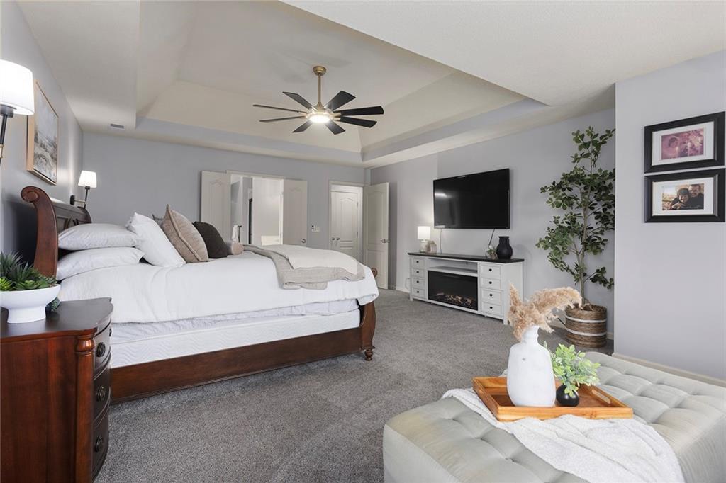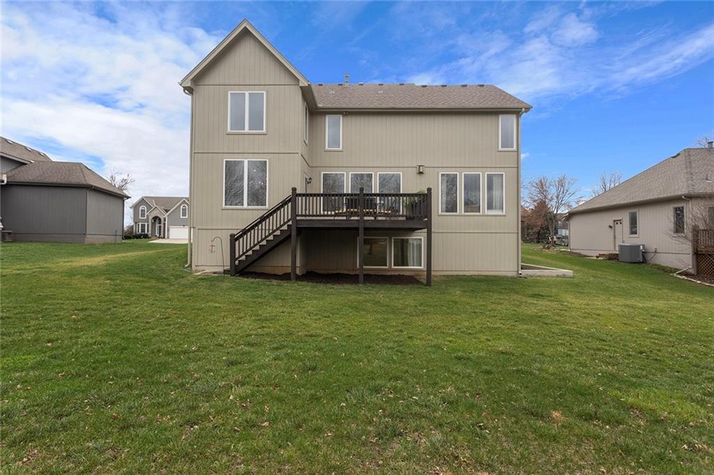 Welcome to this beautifully updated home in the sought-after Prairie Highlands golf course community! Located at 26032 W 150th St in Olathe, this move-in ready home features fresh interior paint, brand new carpet upstairs with high traffic on stairs, updated light fixtures, and all new faucets and shower fixtures throughout. Major updates include a newer roof and newer AC for added peace of mind. The spacious layout of over 4200sqft includes a cozy hearth room and finished basement, both wired for surround sound—perfect for entertaining or movie nights. Step outside to enjoy the freshly stained deck, ideal for relaxing or hosting guests. The large primary suite offers a private retreat with new tile in the bathroom, a jacuzzi tub, new shower doors, and a huge walk-in closet. Located in the desirable Prairie Highlands golf course community, residents enjoy access to the neighborhood golf course and clubhouse restaurant—perfect for grabbing a meal or meeting friends close to home. Move-in ready with stylish updates throughout—this one is a must see!