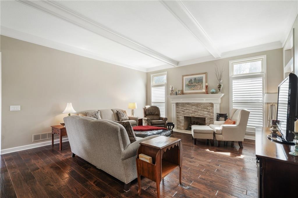 Located in sought-after Briarwood across from Tomahawk Elementary, this beautifully updated 1.5-story home blends timeless design with thoughtful updates, including a new furnace (4/2/26) and meticulous care from original owners. Wood floors and plantation shutters add warmth and natural light throughout. The updated kitchen features granite countertops, off-white cabinetry, and a cozy hearth room—perfect for everyday living. Appliances stay, including Bosch dishwasher, Jenn-Air induction cooktop, new GE refrigerator, washer, and dryer, all staying with home. Main level offers formal dining, a welcoming family room with fireplace, and a spacious primary suite with remodeled spa-like bath featuring quartz countertops, zero-entry shower, soaking tub, and accessible design. Upstairs includes three bedrooms (two with walk-in closets; one ideal for office). Enjoy a Carrier high-efficiency system and a full unfinished basement ready for storage or future finish. Prime location, exceptional care, and move-in ready—this Briarwood gem is a rare find. Offers due Sunday, April 12th at 5 PM and will be presented all at one time. Decision will be made Monday morning Sellers prefer mid to late May closing.