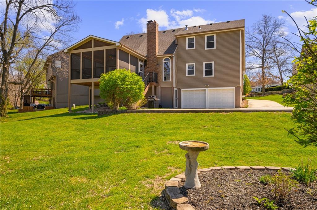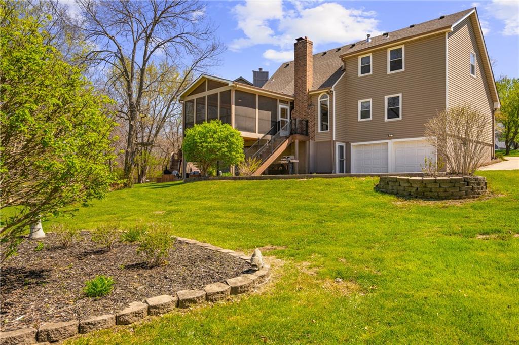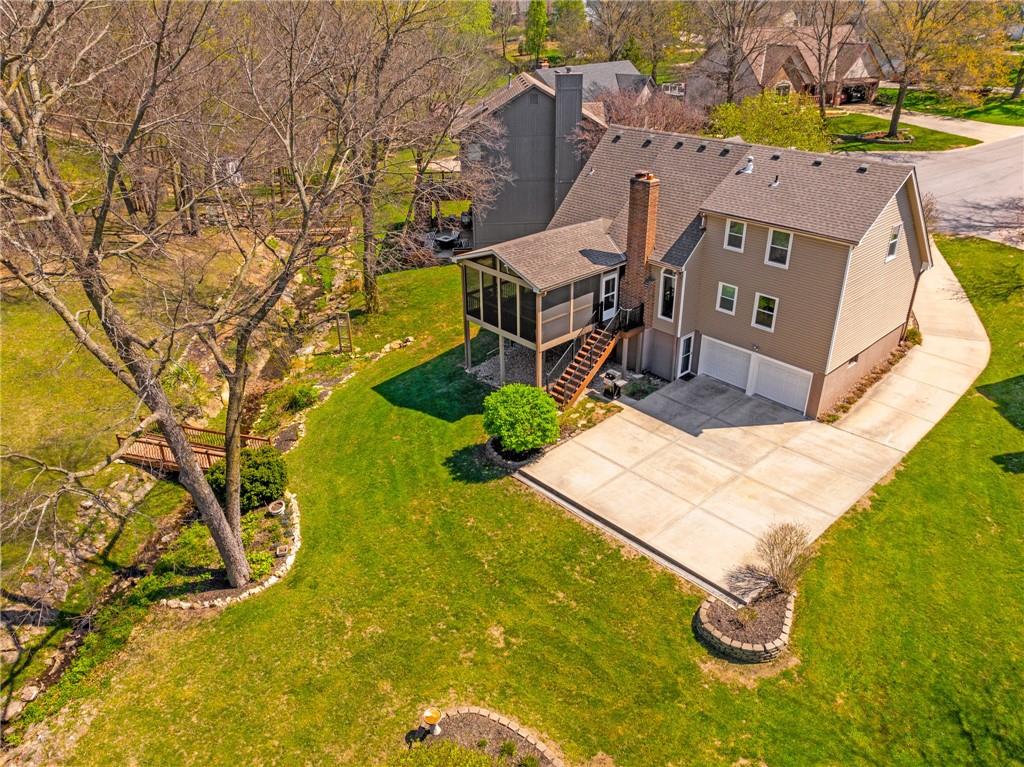 What if your backyard fet like a private getaway every single day? Step out back and you will understand... this one just hits different. Welcome home to this beautifully maintained and move in ready 1.5 story home in Blue Springs, perfectly situated on nearly an acre of picturesque land. Backing to lush green space with a peaceful creek and charming walking bridge, this property offers a rare blend of privacy, nature, and everyday convenience. Step inside to find an updated kitchen featuring abundant cabinetry and countertop space, ideal for both daily living and entertaining. The home has been exceptionally cared for and offers a functional layout with spacious living areas and a walkout basement that adds even more flexibility and room to grow. Enjoy the outdoors like never before with a brand new screened in 3 season porch complete with maintenance free Trex decking, creating the perfect space to relax and take in the scenic backyard views. The expansive lot provides plenty of room to play, entertain, or simply unwind, and the large driveway offers space for additional parking or even a basketball court. Ext4erior features Maintenance free vinyl siding. Major updates have already been taken care of for peace of mind, including a brand new roof and brand new furnace. Located in the award winning Blue Springs School District, this home checks all the boxes with space, updates, setting, and lifestyle. This is one you will not want to miss.