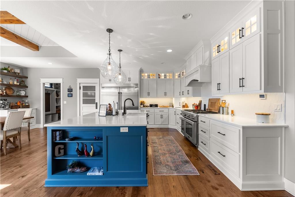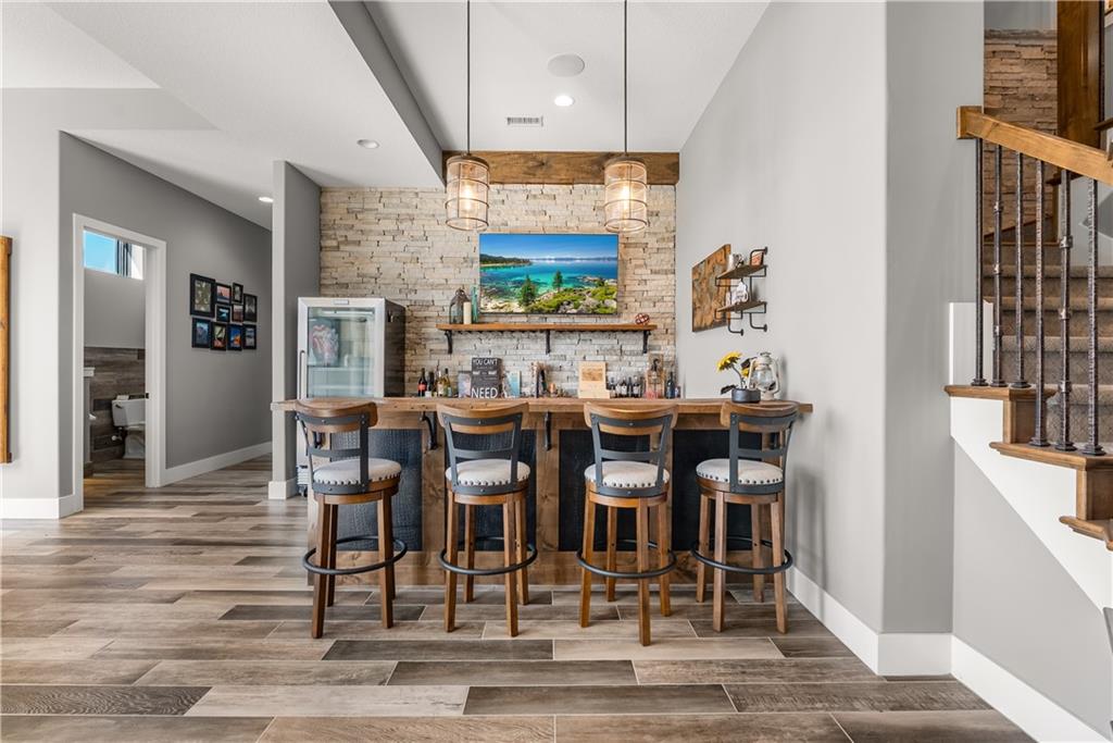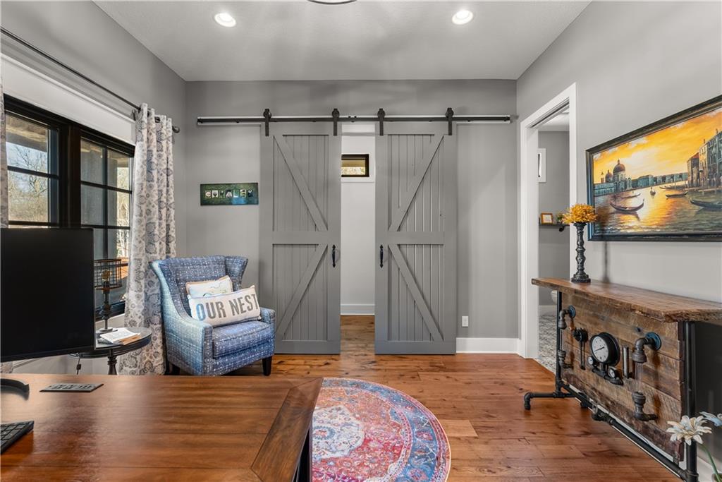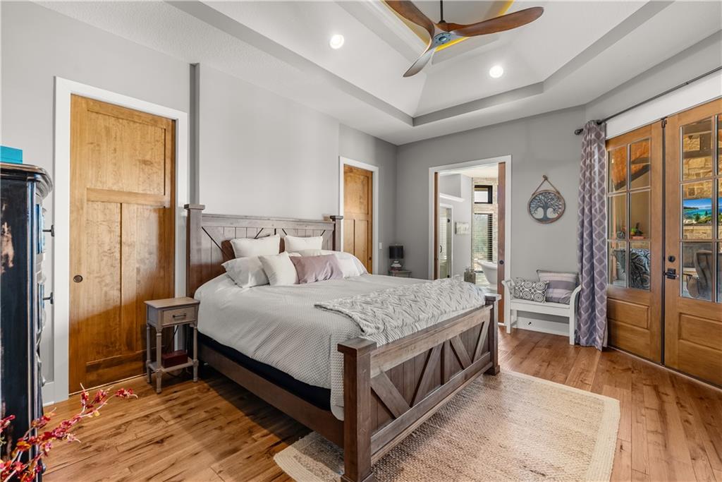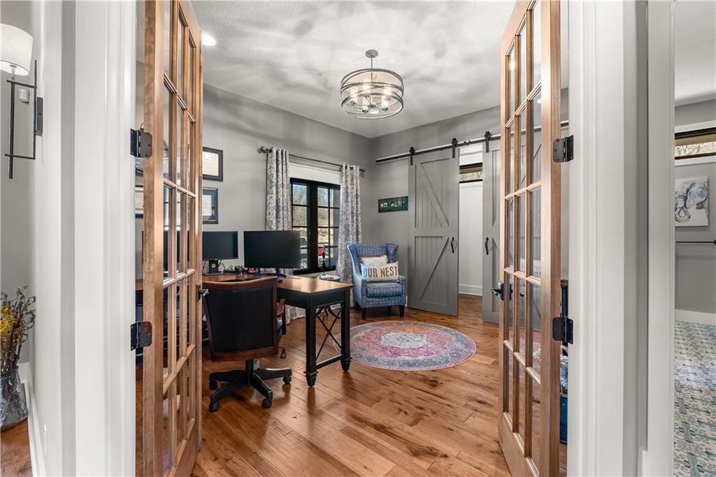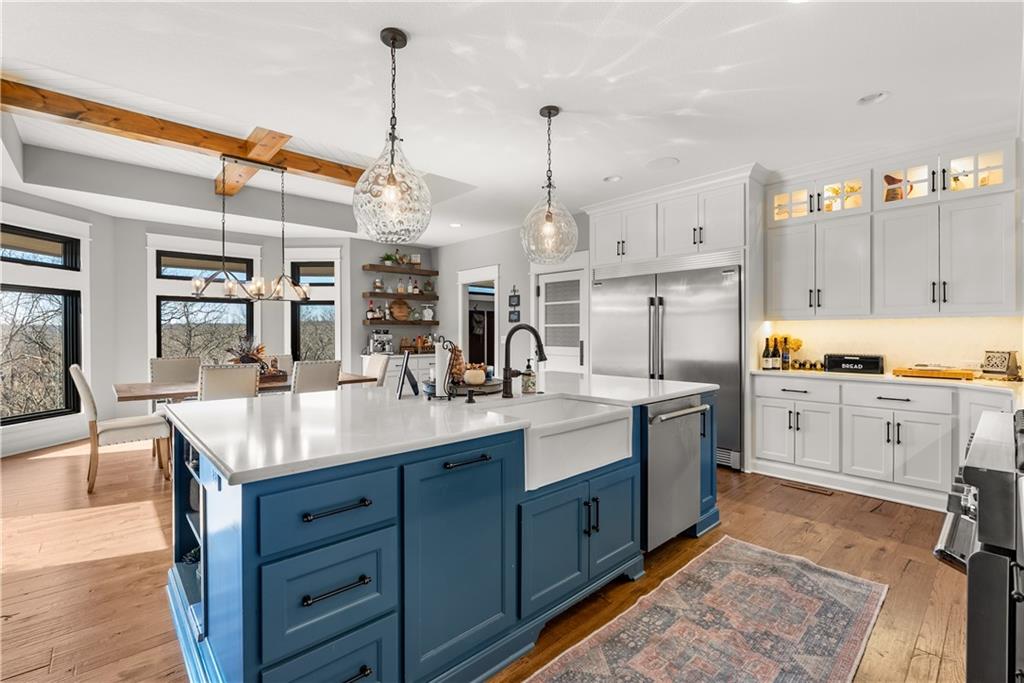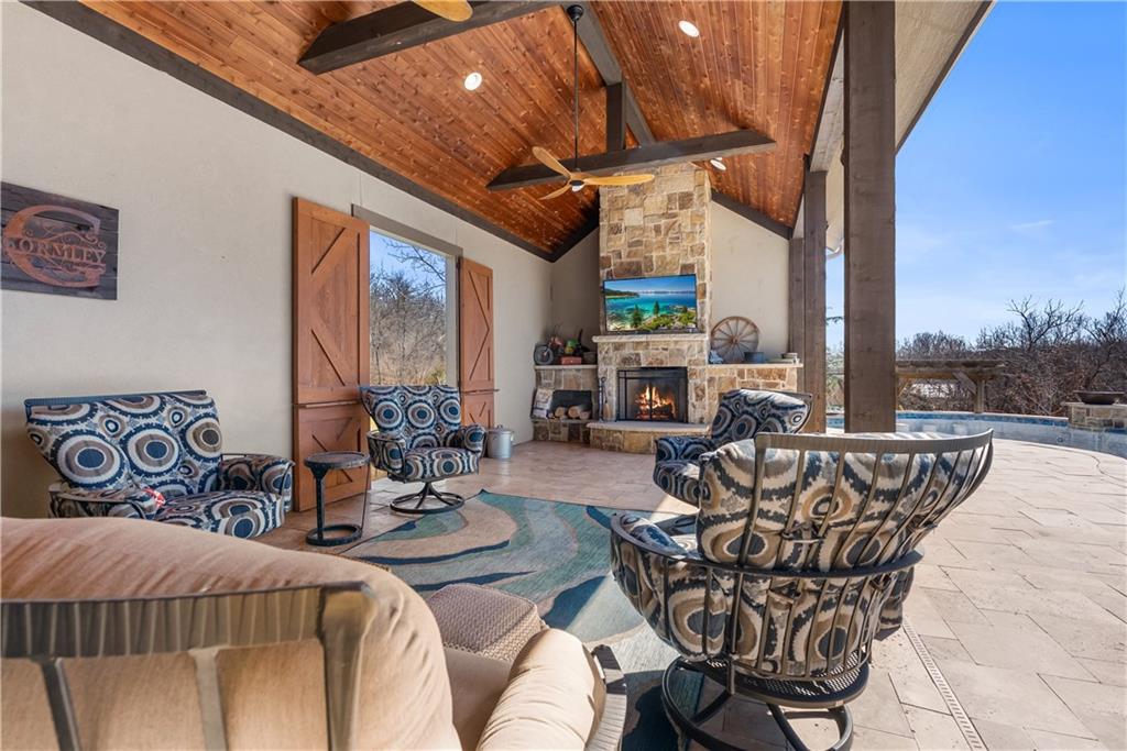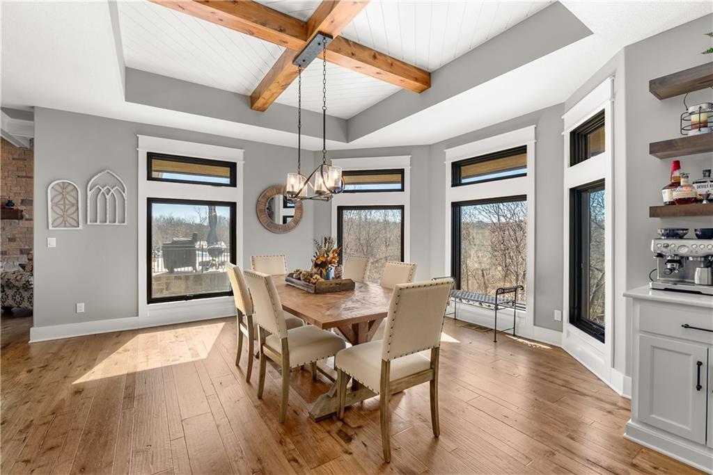 Dreams truly come alive in this one-of-a-kind custom Reverse 1.5 Story estate nestled on 9+ breathtaking acres in unincorporated Jackson County within the Lee’s Summit School District. This private retreat offers unmatched craftsmanship, panoramic treetop views & resort-level amenities that cannot be replicated. A grand front porch w/stone accents & custom doors welcomes you into a stunning interior featuring soaring 12-foot ceilings on both levels & architectural detail throughout. The main level showcases a dramatic living area w/west-facing views and a chef’s kitchen designed for everyday luxury and entertaining—complete with oversized island, custom shelving, walk-in pantry, double refrigerator/freezer combo, & oversized gas range. Light filled dining space, coffee bar-perfect for morning routines. The primary suite is a private sanctuary w/direct access to the covered patio for seamless indoor/outdoor living. The spa inspired bath features dual vanities,deep soaker tub, walk-in shower, & a generous walk-in closet w/custom built-ins. A main-level den (or 2nd bdrm) & convenient laundry complete the layout. The finished lower level is an entertainer’s dream featuring an oversized golf simulator & projector ,full wet bar, media/rec space, pool table area, exercise room w/sauna, & 2 additional bedroom suites each w/private baths & walk-in closets. A suspended garage provides rare lower-level 4th garage access—ideal for workshop, car collection, or storage. And then…This resort-caliber setting rivals luxury destinations. The vaulted covered patio w/stone FP creates year-round ambiance. Step outside to a spectacular infinity-edge pool with swim-up bar, tanning ledge, outdoor kitchen, & unobstructed treetop views offering 100% privacy. Entertain in your custom silo bar, practice on the putting green, unwind beside three cascading rock waterfalls surrounded by professional landscaping & custom exterior lighting. A signature property offering an unmatched lifestyle.