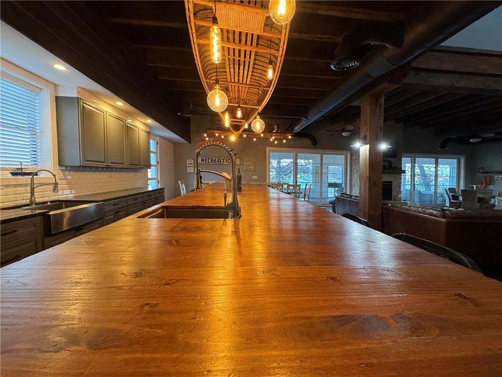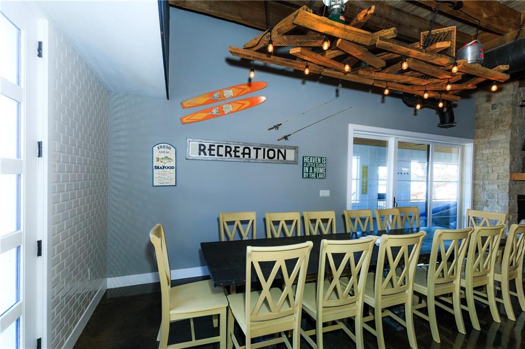 Show-stopping waterfront retreat on 8mm w/spectacular lake views! Impressive work of craftsmanship features reclaimed wood + shipyard beams, custom lighting, & heated floors. This stately, open-concept creates a tranquil feel of rustic sophistication - completely furnished. Striking architectural impact, designed for resort-style living or high-end short term rental earning $2k per night (proven $150k+ yearly), this sprawling estate is built to please a crowd. Gourmet chef’s kitchen boasts state-of-the-art commercial-grade stainless steel appliances w/ impressive 17-ft custom island. Sleeping 25+, this iconic estate offers 6 unique king bedrms, each w/full spa-style baths, incl 2 primary suites w/sitting areas + covered decks. Addl Bunkhouse sleeps 11. Epic game room incl professional-grade pool table & shuffleboard for endless fun. Outdoors, enjoy a massive screened-in patio w/ locker-room-style bathroom - quick outdoor access for swimmers & boaters. Above 2-car garage/workshop - luxury 2-bdrm apartment + loft bed- sleeps 6, perfect for rental. Metal Roof. Deep water, 2-bay concrete cruiser dock + 2PWC lifts. Unparalleled waterfront sanctuary that defines upscale vacation living.