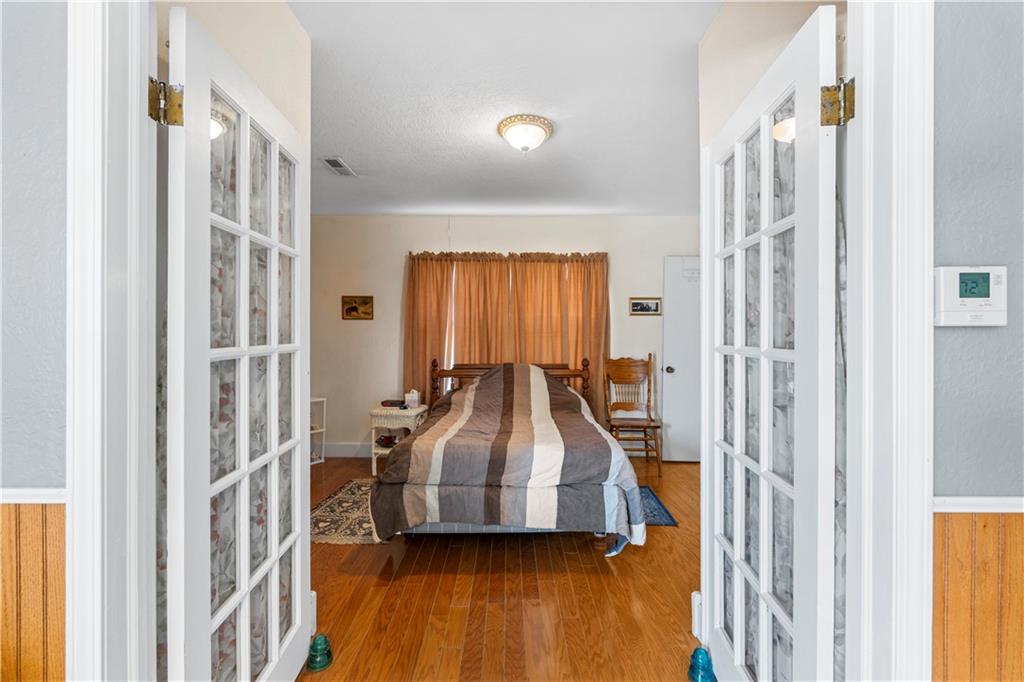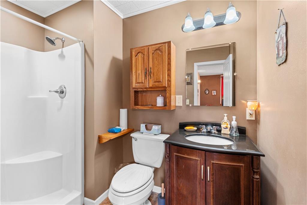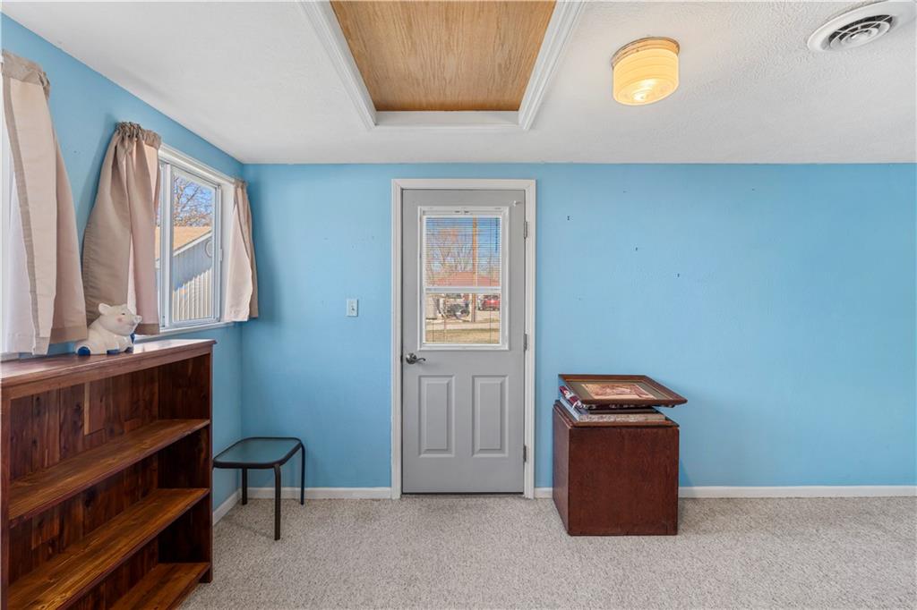 This 2 bedroom, 2 bathroom bungalow offers approximately 1,300 square feet of living space with a practical layout and flexible room options. Wood appearance flooring runs through much of the home while vinyl windows allow natural light to fill the main living areas. The formal dining room sits at the heart of the home and serves as a welcoming space for gatherings and everyday meals. The living room flows easily into the dining area, creating a natural connection between the main living spaces. The kitchen provides ample cabinet storage, generous counter space, and a convenient breakfast bar. A main level laundry area located just off the kitchen adds everyday convenience. Both bedrooms are generously sized, including a primary bedroom with a private bathroom featuring a walk-in shower. The second bathroom is accessible from the second bedroom and is also conveniently located for guest use. An additional room offers flexible space that could serve as a home office, hobby room, or extra storage. The layout also provides the option to create a third bedroom if desired, with the current living room easily transitioning into bedroom space while the formal dining room could serve as the main living area and the spacious kitchen accommodate an eat-in dining setup. Outside, the property features a covered front porch, an attached garage with rear entry access, and a detached shed for additional storage. Rear alley access provides convenient garage entry while on-street parking is available at the front of the home. Located in Rich Hill, Missouri, this bungalow offers flexible living space and approximately 1,300 square feet of living area.