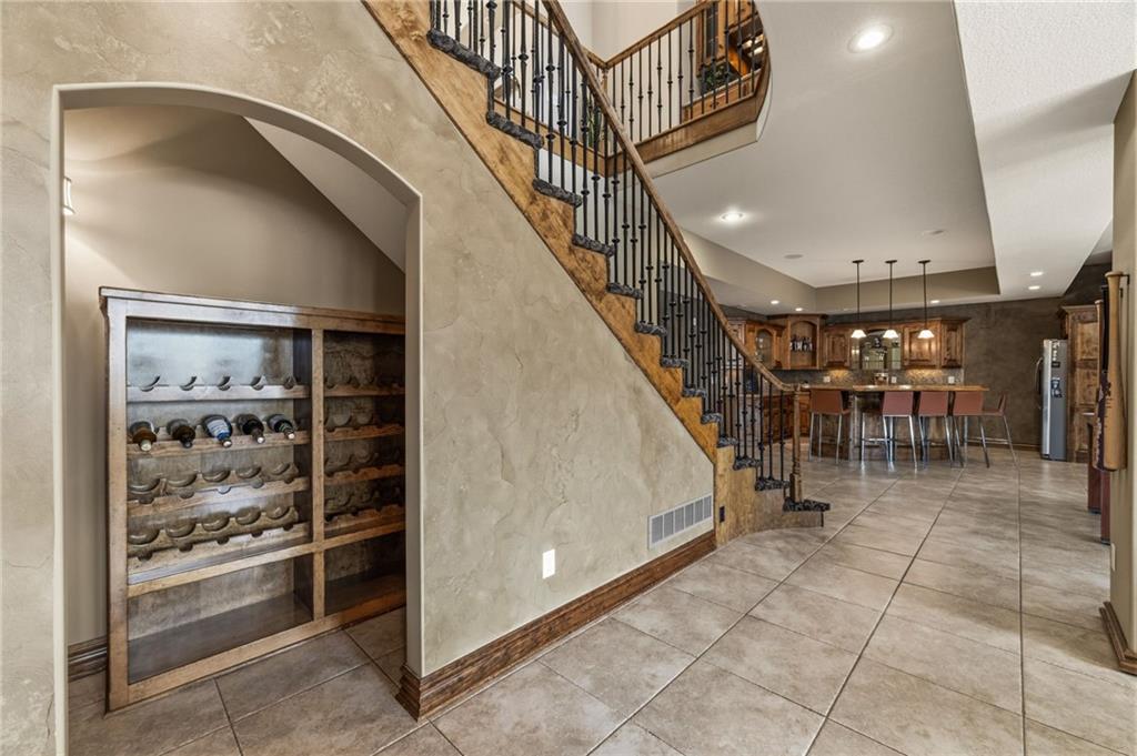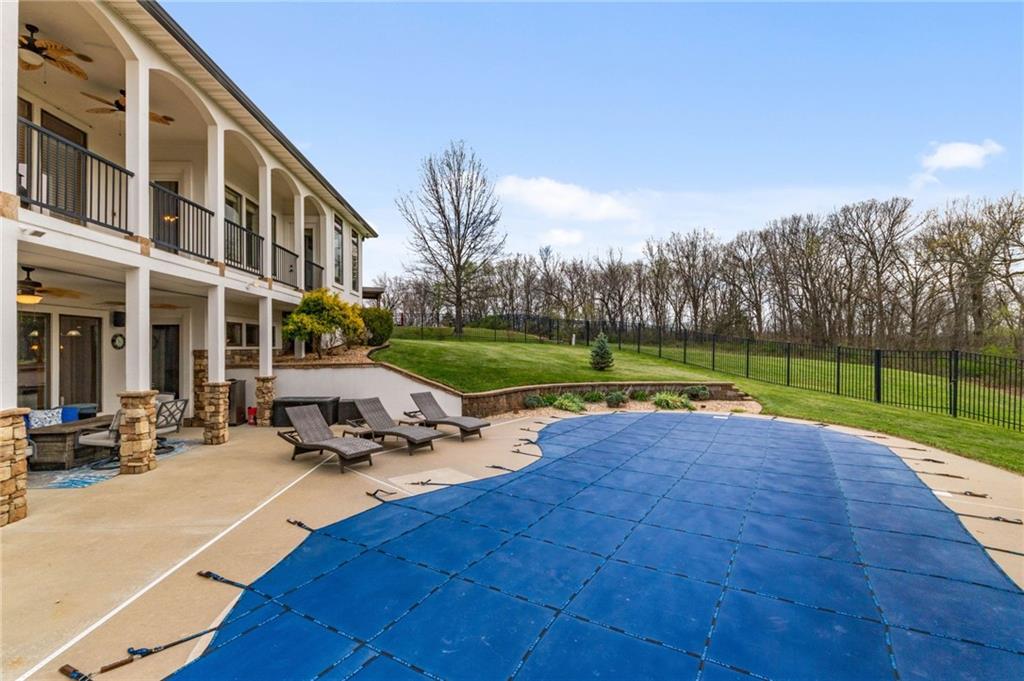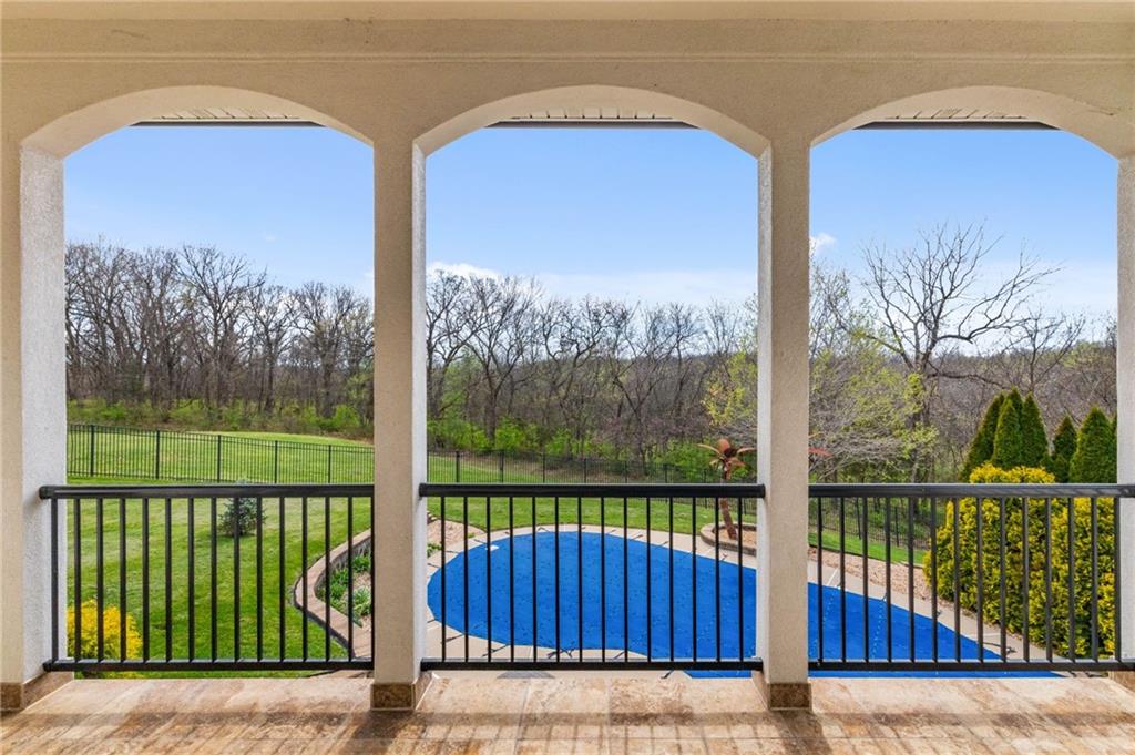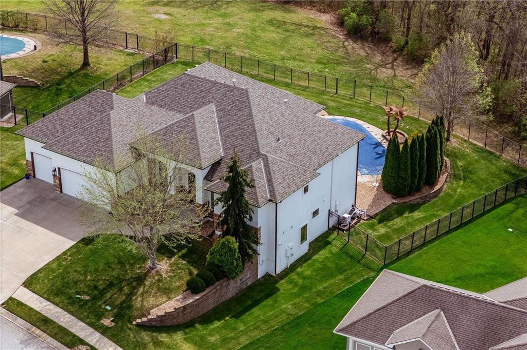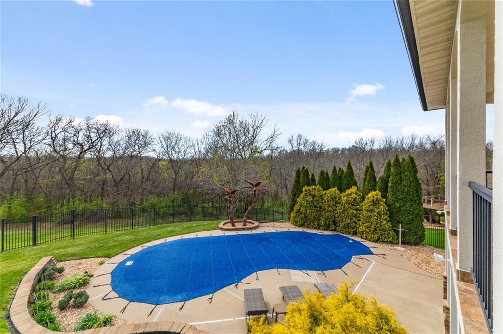 From the moment you approach, this stunning reverse 1.5-story masterpiece commands attention. Grand steel double doors open to over 5,000 square feet of meticulously designed living space, where every detail has been crafted for those who expect nothing but the best.Entertain in style on the main level, where an open-concept layout flows effortlessly from a formal dining room and private office to a breathtaking great room anchored by a gas fireplace. Walls of windows frame your backyard oasis, blurring the line between indoor elegance and outdoor paradise. The chef's kitchen is nothing short of spectacular — featuring stainless steel appliances, a double built-in oven, a 5-burner gas cooktop, expansive granite countertops, a oversized island, and a walk-in pantry. Whether you're hosting an intimate dinner or a grand celebration, this kitchen delivers. Your private retreat awaits in the luxurious main-level master suite, overlooking the sparkling saltwater pool and endless forest beyond. The spa-inspired en suite boasts double vanities, granite countertops, custom cabinetry, a soaking tub, oversized tile shower, and a private water closet. The massive walk-in closet — complete with a center jewelry island — is a statement all its own. The basement is an entertainer's crown jewel. Descend the showstopping central staircase to a world-class entertainment level featuring a full bar, a dedicated theater room with projector and surround sound, a wine room, and a bonus room ideal for a private gym. Step outside into your personal paradise. The backyard is an absolute showstopper — a resort-style saltwater pool, hot tub, and lush professional landscaping, all backed by a wall of pristine, private forest. No rear neighbors. Just nature, serenity, and the sounds of wildlife. Additional highlights include a four-seasons sunroom, Oversized three car garage and fenced in yard. This is not just a home — it's an experience. Schedule your private showing today.
