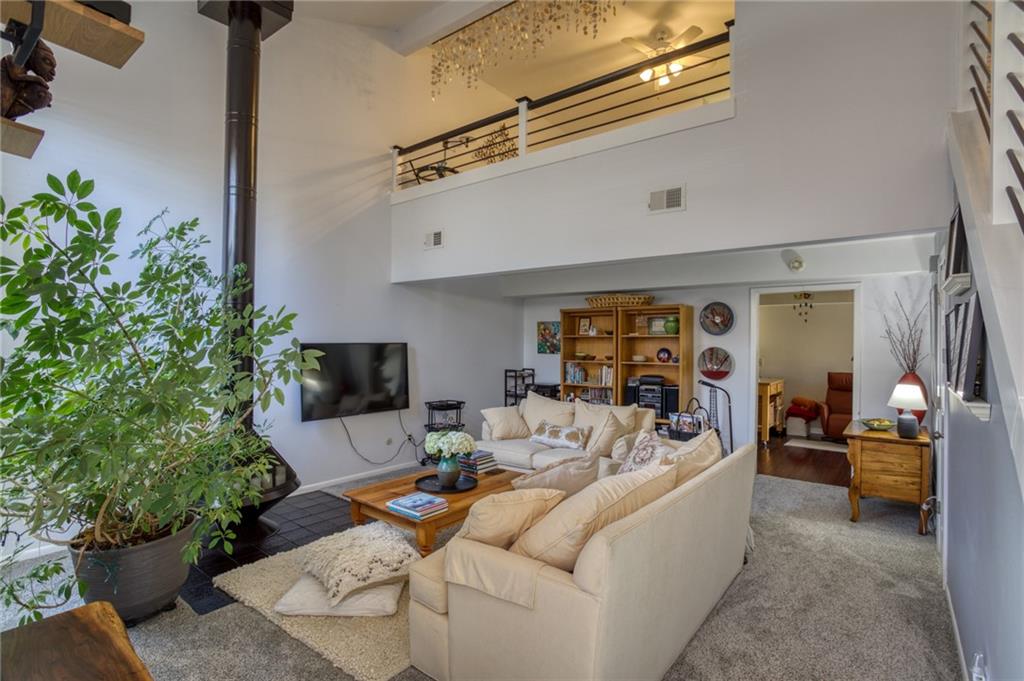 Conveniently located well maintained townhouse with a spacious kitchen, dramatic vaulted ceilings, private patio and a rare two car attached garage. Low HOA dues which includes a pool