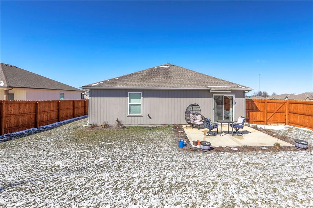 HOME BACK ON MARKET, BUYER CANCELLED DUE TO PERSONAL REASONS- HOME SOLD DAY ONE ON MARKET, HAD GREAT INSPECTIONS, AND IS NOW AVAILABLE AGAIN FOR A NEW BUYER TO SCOOP UP! Welcome home to easy, modern living in this nearly new, 3-year-old home! This beautifully maintained property offers true one-level living with an open, functional layout designed for comfort and convenience. Located in a fantastic neighborhood within the highly sought-after Blue Springs School District, this home sits in an unbeatable location directly across from the neighborhood park and not far from the walking trail—perfect for morning walks, playtime, or simply enjoying the outdoors. Step outside to a fully fenced backyard with a 6-foot wood privacy fence, providing the ideal space for relaxing, entertaining, or letting pets play freely. With its newer construction, great setting, and move-in ready condition, this home offers the perfect blend of low-maintenance living and neighborhood charm. Don’t miss your chance to own a newer home in such a desirable location!