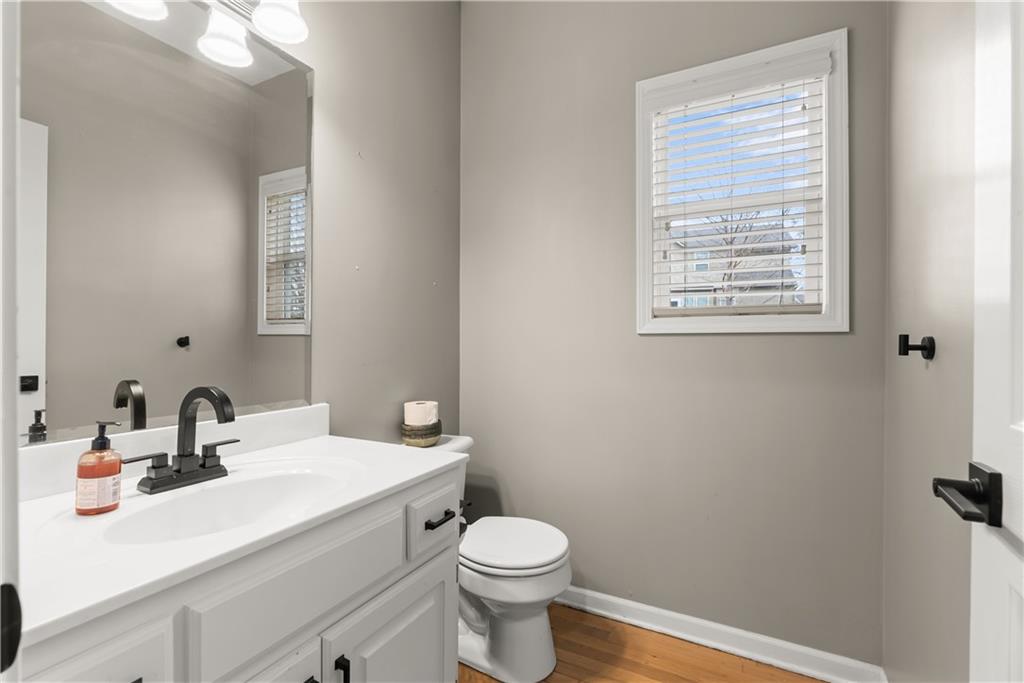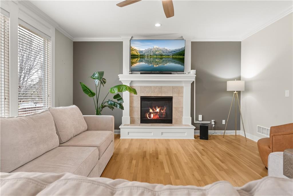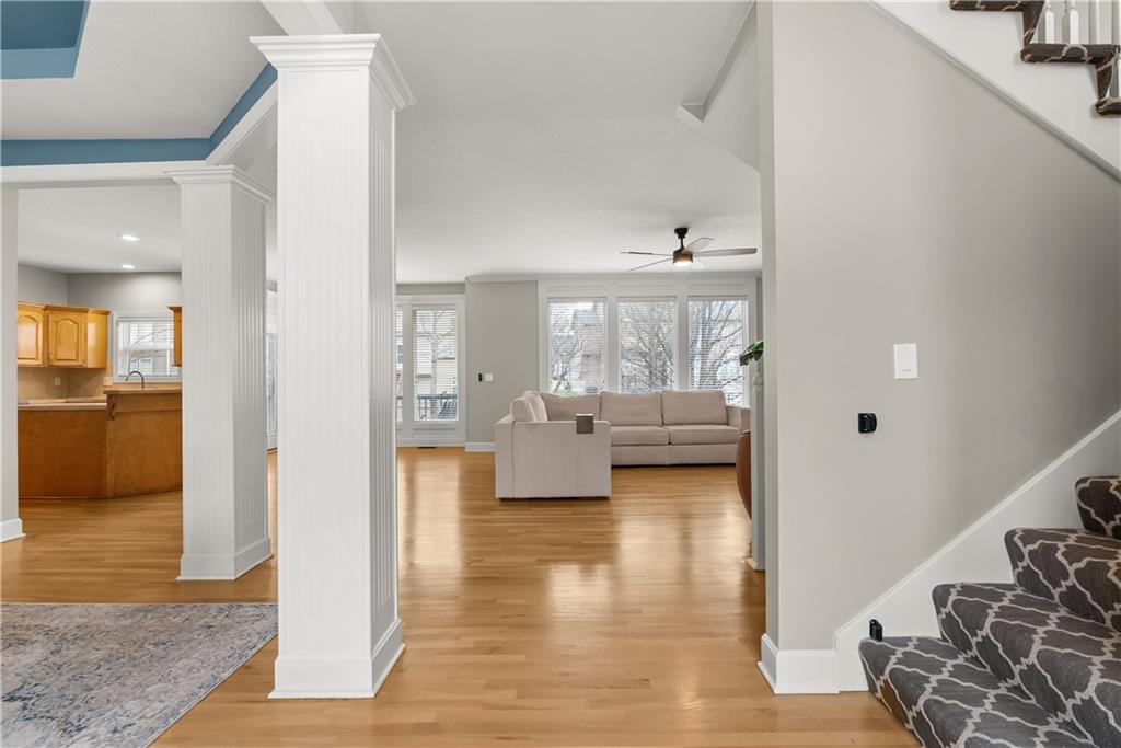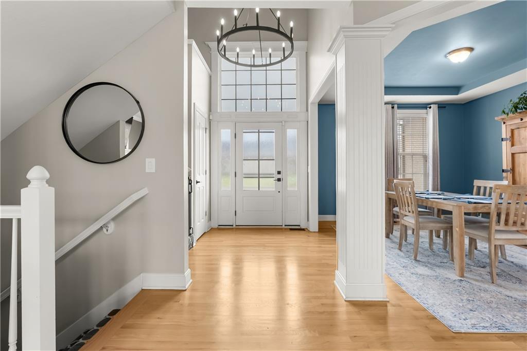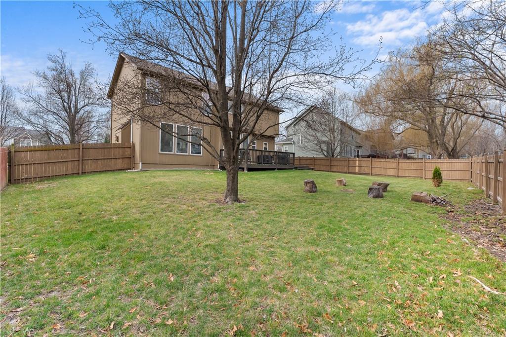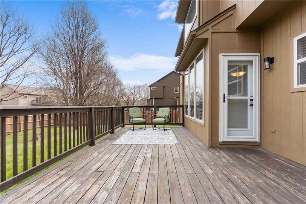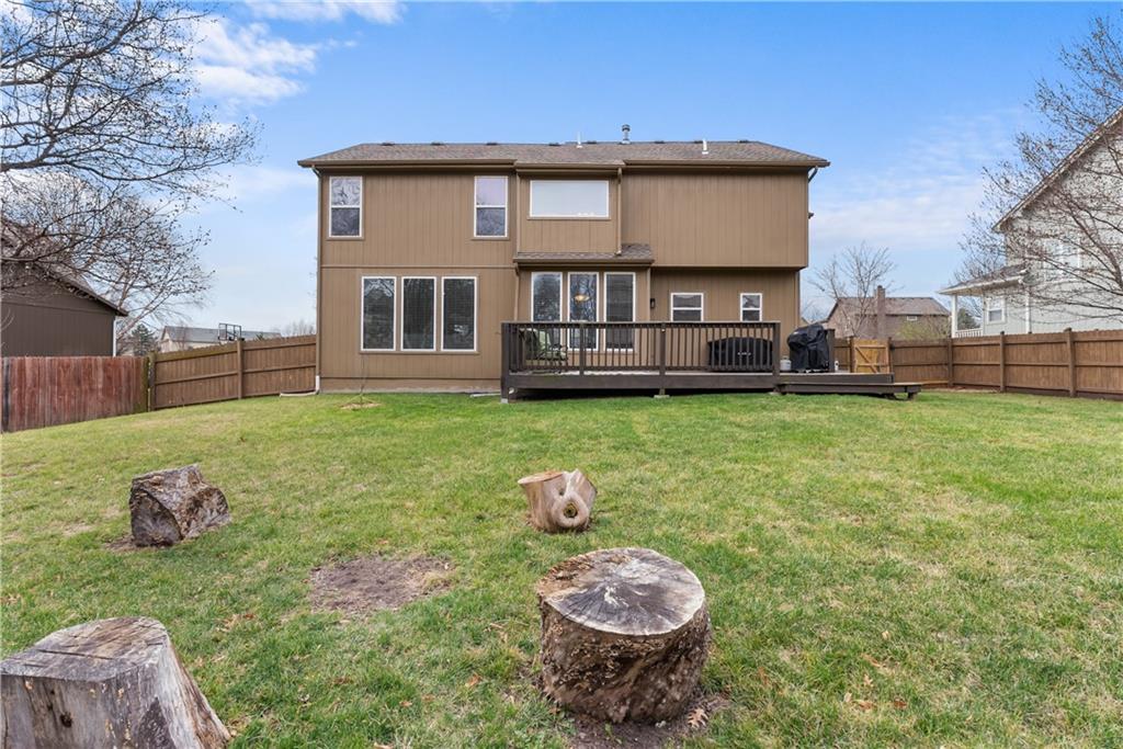 Beautiful two-story home with many updates. The main floor now has all wood floors that have been recently refinished. This open floor plan has a great room with lots of windows and a fireplace. The eat in kitchen has an island and pantry. There is also a formal dining room for extra space. The entry has a newer front door and updated entry light fixture. Decorative accent wall by on the stair case. Also a half bath on the main level. The second story features all four bedrooms and a convenient laundry room. The spacious primary bedroom has a walk-in closet and attached bath featuring a double vanity, separate shower, and tub. The basement has an egress window, sump pump and radon mitigation. The backyard is partially fenced and includes a large deck, perfect for outdoor enjoyment. The furnace unit is approximately one year old.