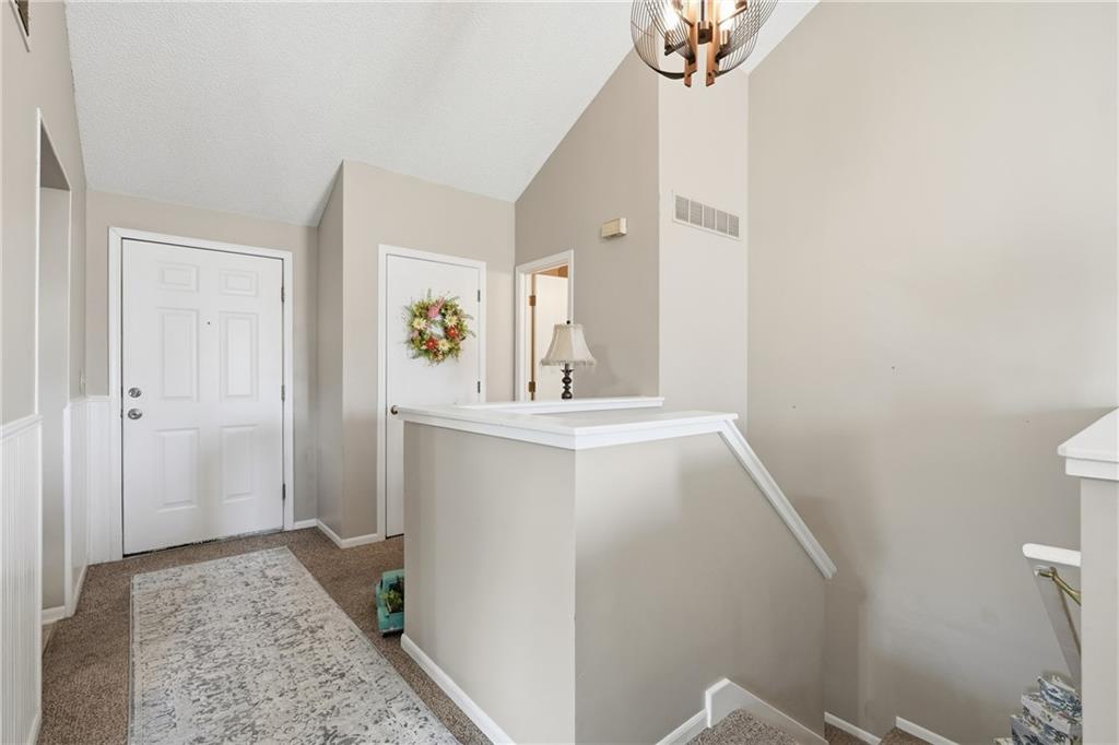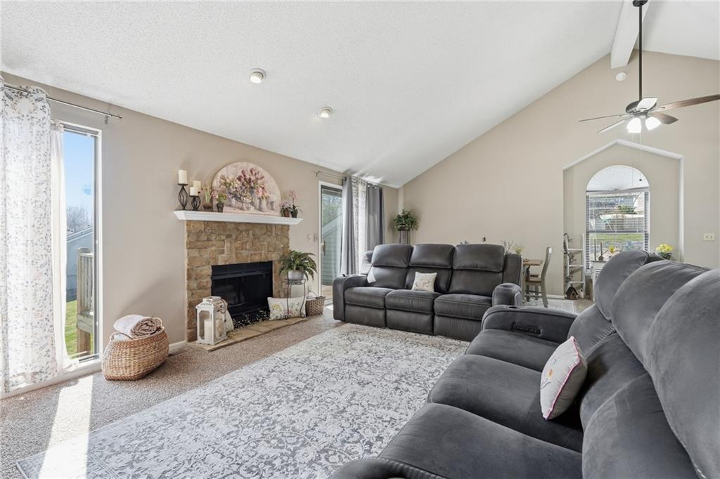 Enjoy convenient, low-maintenance living in this incredibly well-maintained end-unit townhome located in the highly desirable Twin Lakes community. Perfectly situated to enjoy everything Gladstone has to offer, this home combines comfort, style, and a peaceful natural setting. Step inside to a bright and welcoming upper level featuring vaulted ceilings and abundant natural light—an added benefit of the end-unit location. The open kitchen flows seamlessly into the living and dining areas, creating a versatile space that’s perfect for everyday living or hosting friends and family. Step outside onto the upper deck overlooking beautiful greenspace, where you can relax and watch deer grazing and squirrels playing just beyond your backyard. The walk-out lower level offers an additional patio with the same serene view, providing another peaceful spot to unwind. The home features two spacious bedrooms and a shared full bath, offering comfortable living with a functional layout. Living in Twin Lakes also means enjoying access to the community’s charming fishing lake, adding to the relaxing lifestyle this neighborhood provides. The HOA makes life even easier by covering lawn care, snow removal, and trash service—giving you true lock-and-leave convenience. Recent updates by the seller include several new windows, new Pella storm doors with built in blinds, a new garage door opener, and additional electrical outlets for added convenience and functionality. If you're looking for easy, comfortable living with scenic nature views and great community amenities, this townhome is ready to welcome you home!