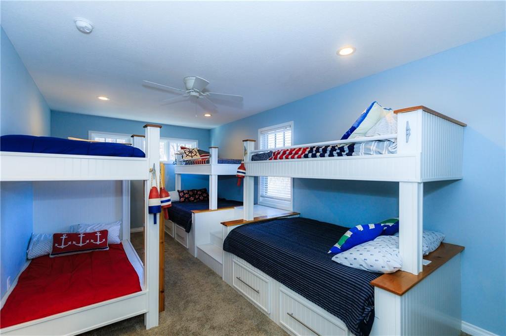 A resort-inspired custom-built lakefront retreat w/ spectacular views on the 8mm, offering upscale design & proven short-term rental appeal. Fully furnished - just bring your friends, family & suitcases and let the vacation begin! This open-concept sleeps 20 & showcases vaulted ceilings in a grand hearth room, highlighted by dramatic windows framing the water. A well-appointed kitchen features stainless steel appliances, custom cabinetry, granite countertops & breakfast bar + additional dining area to feed a crowd. 6 spacious bedrooms include 2 lakeside, private king suites w/ spa-style full baths, & a playful 10-person bunk room. Outside, enjoy a thoughtfully-designed lakeside shower house, spacious screened-in patio, fire pit, barbecue grills, & a fully functional tiki bar with water & electric. Situated in a wide, deep-water cove perfect for swimming, fishing & water sports, the property also includes a two-slip dock w/ tri-toon lift, 2 PWC platform & swim deck. Ideally located by land & water just minutes from dining, entertainment, & local attractions, this exceptional home delivers luxury craftsmanship, lifestyle, & strong rental opportunity in one remarkable property. Proven STR at $1000 per day. The house next door is also for sale by the same owner - feel free to tour both - 32951 Green Hills Rd.