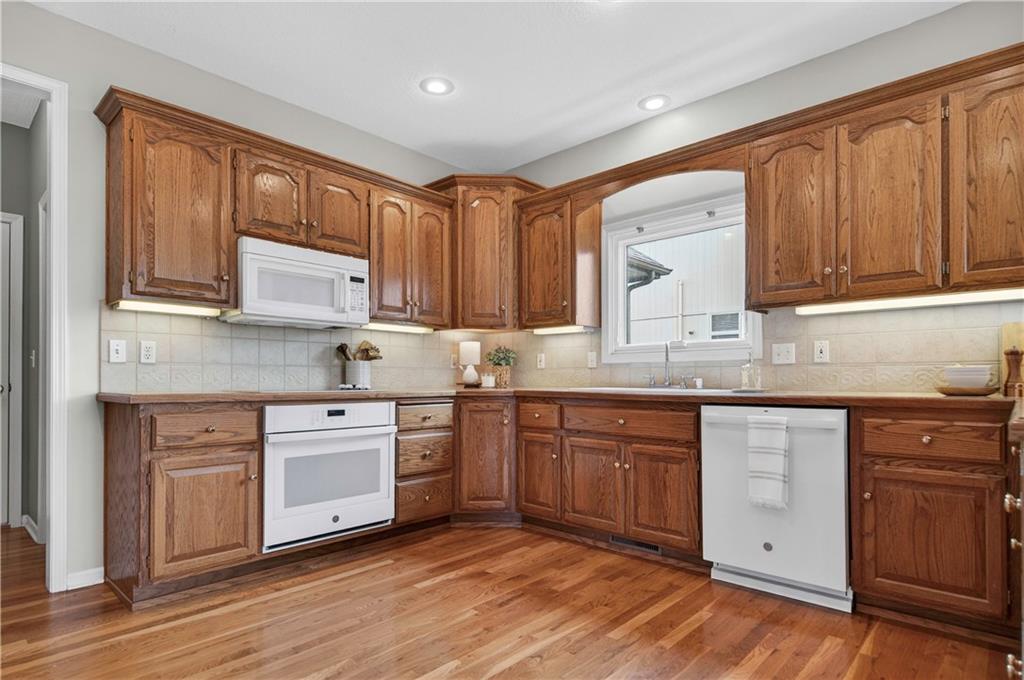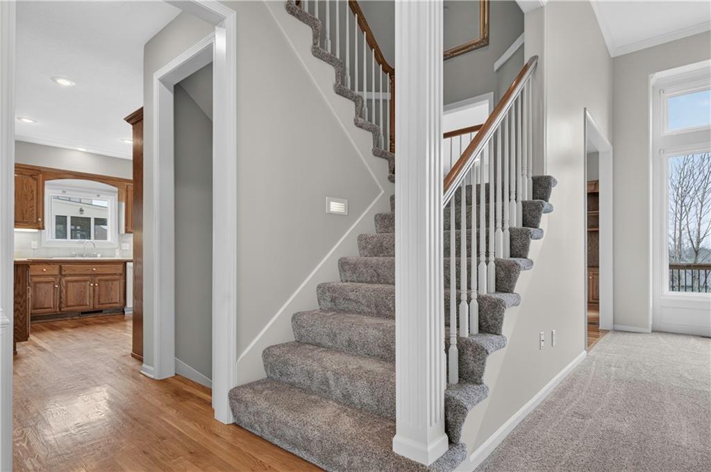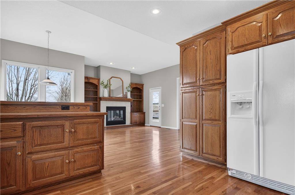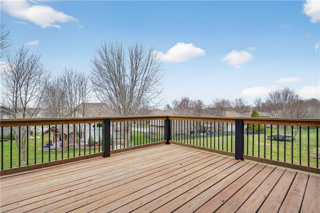 Welcome to this beautifully maintained 1.5-story home in Fairways subdivision, offering over 3,400 sqft of well-designed living space in a truly prime location. Situated in the Liberty Public School District with quick access to highways, shopping, everyday conveniences, and approximately 15 minutes from both downtown Kansas City and KCI Airport. Proudly owned by just one owner, this home has been thoughtfully cared for and updated over the years. The main level features a functional layout, including a formal dining room and a grand living room with floor-to-ceiling windows and soaring ceilings. The kitchen is designed for everyday living, complete with a breakfast nook and a cozy hearth room with fireplace. Step outside to the newer deck to enjoy quiet evenings outdoors. The main level primary suite offers comfort and convenience with a large walk-in closet and private ensuite bath, along with main level laundry. Upstairs, you’ll find two generously sized bedrooms connected by a Jack-and-Jill bathroom, both with walk-in closets. A third upstairs bedroom is set slightly apart, offering its own ensuite bath and walk-in closet—ideal for guests or added privacy. The finished walkout basement expands your living space with a non-conforming 5th bedroom, full bathroom, wet bar with island. There’s also a large storage area with exterior access. Additional highlights include a 3-car garage, level yard, and beautiful built-in shelving throughout the home. Major updates have already been taken care of for you, including NEW interior paint, roof and dishwasher new in 2025, new carpet and AC unit in 2023, and deck and exterior paint completed in 2020. Living in Fairways means enjoying a welcoming community with a neighborhood pool, green spaces, play area, and charming street lighting that creates a warm, inviting atmosphere. This home offers a versatile floor plan, generous space for entertaining, and the opportunity to make it your own for years to come.