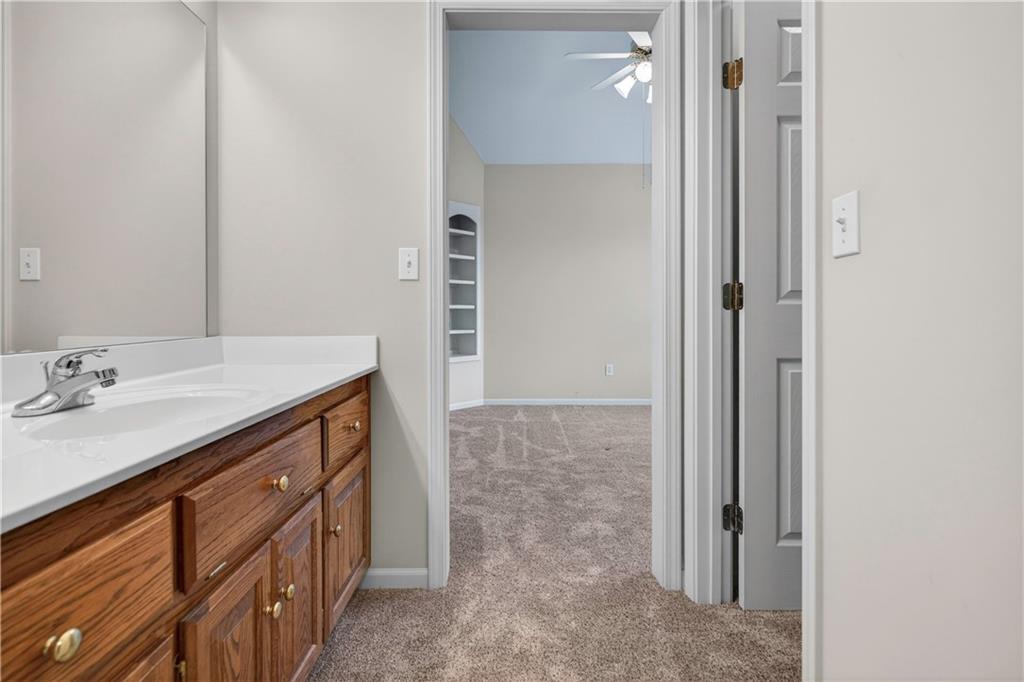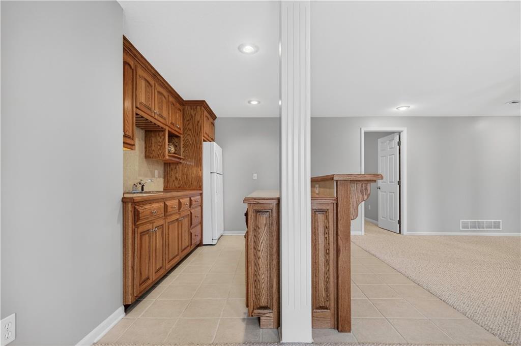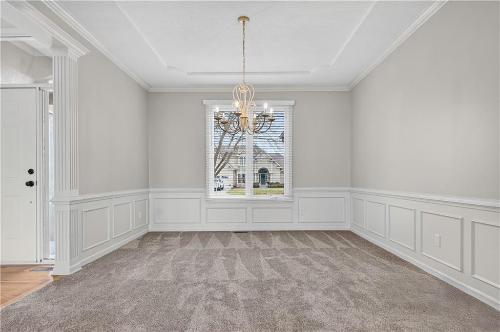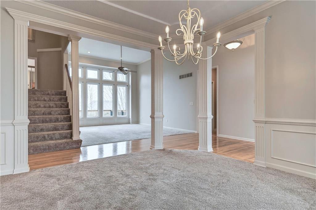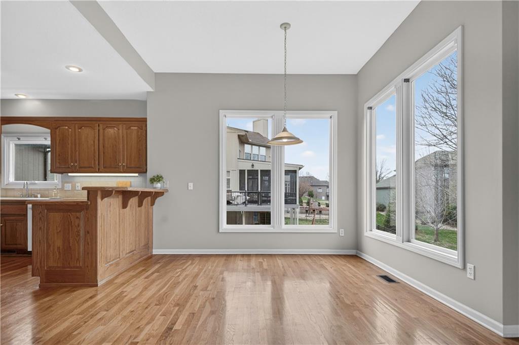 Welcome to this beautifully maintained 1.5-story home in Fairways subdivision, offering over 3,400 sqft of well-designed living space in a truly prime location. Situated in the Liberty Public School District with quick access to highways, shopping, everyday conveniences, and approximately 15 minutes from both downtown Kansas City and KCI Airport. Proudly owned by just one owner, this home has been thoughtfully cared for and updated over the years. The main level features a functional layout, including a formal dining room and a grand living room with floor-to-ceiling windows and soaring ceilings. The kitchen is designed for everyday living, complete with a breakfast nook and a cozy hearth room with fireplace. Step outside to the newer deck to enjoy quiet evenings outdoors. The main level primary suite offers comfort and convenience with a large walk-in closet and private ensuite bath, along with main level laundry. Upstairs, you’ll find two generously sized bedrooms connected by a Jack-and-Jill bathroom, both with walk-in closets. A third upstairs bedroom is set slightly apart, offering its own ensuite bath and walk-in closet—ideal for guests or added privacy. The finished walkout basement expands your living space with a non-conforming 5th bedroom, full bathroom, wet bar with island. There’s also a large storage area with exterior access. Additional highlights include a 3-car garage, level yard, and beautiful built-in shelving throughout the home. Major updates have already been taken care of for you, including NEW interior paint, roof and dishwasher new in 2025, new carpet and AC unit in 2023, and deck and exterior paint completed in 2020. Living in Fairways means enjoying a welcoming community with a neighborhood pool, green spaces, play area, and charming street lighting that creates a warm, inviting atmosphere. This home offers a versatile floor plan, generous space for entertaining, and the opportunity to make it your own for years to come.