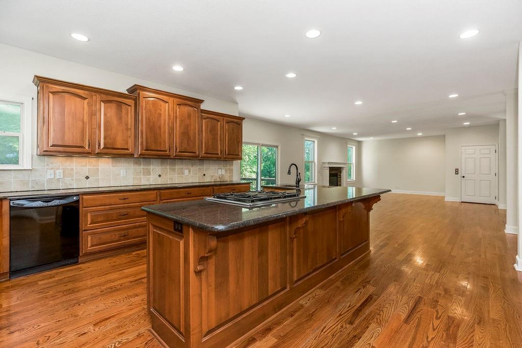 Discover this stunning, custom-built home—one of the largest in the subdivision—designed with thoughtful details and unmatched functionality. Featuring a private elevator servicing all floors, low-entry access points, and full wheelchair accessibility, this home offers effortless living with no stairs required. The main level boasts rich hardwood flooring throughout, a formal dining room, a spacious living room with a cozy fireplace, and a chef’s kitchen complete with abundant built-ins, a large island with prep sink, gas stove, under-the-floor ventilation, and granite countertops. Upstairs, retreat to the luxurious master suite with a spa-like bathroom offering a walk-in shower, soaking tub, and a generous walk-in closet, plus the convenience of laundry on the same level. Three additional bedrooms, each with access to full bathrooms, ensure ample space and privacy. The lower level is perfect for entertaining or extended stays with a large family room, 5th bedroom, 4th full bathroom, and a wet bar/humidor/safe room equipped with an industrial air filtration system. Additional highlights include an in-ground sprinkler system, whole-house water purification, and upgraded finishes throughout. Recent updates feature a new HVAC system, new roof, and fresh paint. Enjoy your mornings on the deck overlooking the private, tree-lined backyard. Located within walking distance of Lansing High School and just 15 minutes from both Ft. Leavenworth and the Legends in Kansas City. Neighborhood amenities include a swimming pool and play area, making this home as practical as it is beautiful.