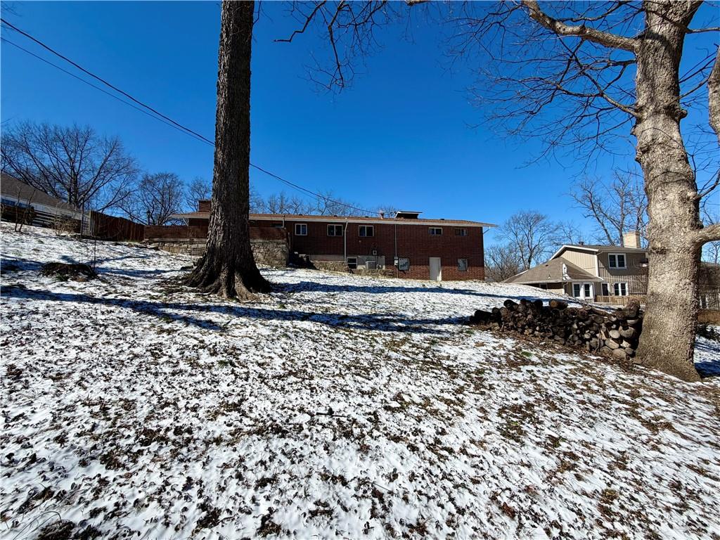This completely brick home has over 3,000 sqft of space and a great location just minutes from Legends/Shopping, easy access to Major highways and other amenities. The big ticket items are all newer Roof 2023, HVAC 2020, Newer Vinyl Windows, low maintenance brick exterior. The inside has huge potential for you to put your stamp on. Upon entry you will find a room to the right that can be used for a private office or living room, The kitchen has great space and can use your personalization. The family room is enormous with a floor to ceiling fireplace. In addtion there is a large main level laundry room, 3 bedrooms with the primary having an on suite bath and a center hall bath for the other bedrooms. There are 3 more rooms 2 non-conforming rooms with closets and a full bath in the basement. These can be used for additional bedrooms, fitness room, office and more. Then there is the enormous 27 x 23 lower level rec room with fireplace. All of this and a large .34 acre lot this property gives you lots of potential make it your own.